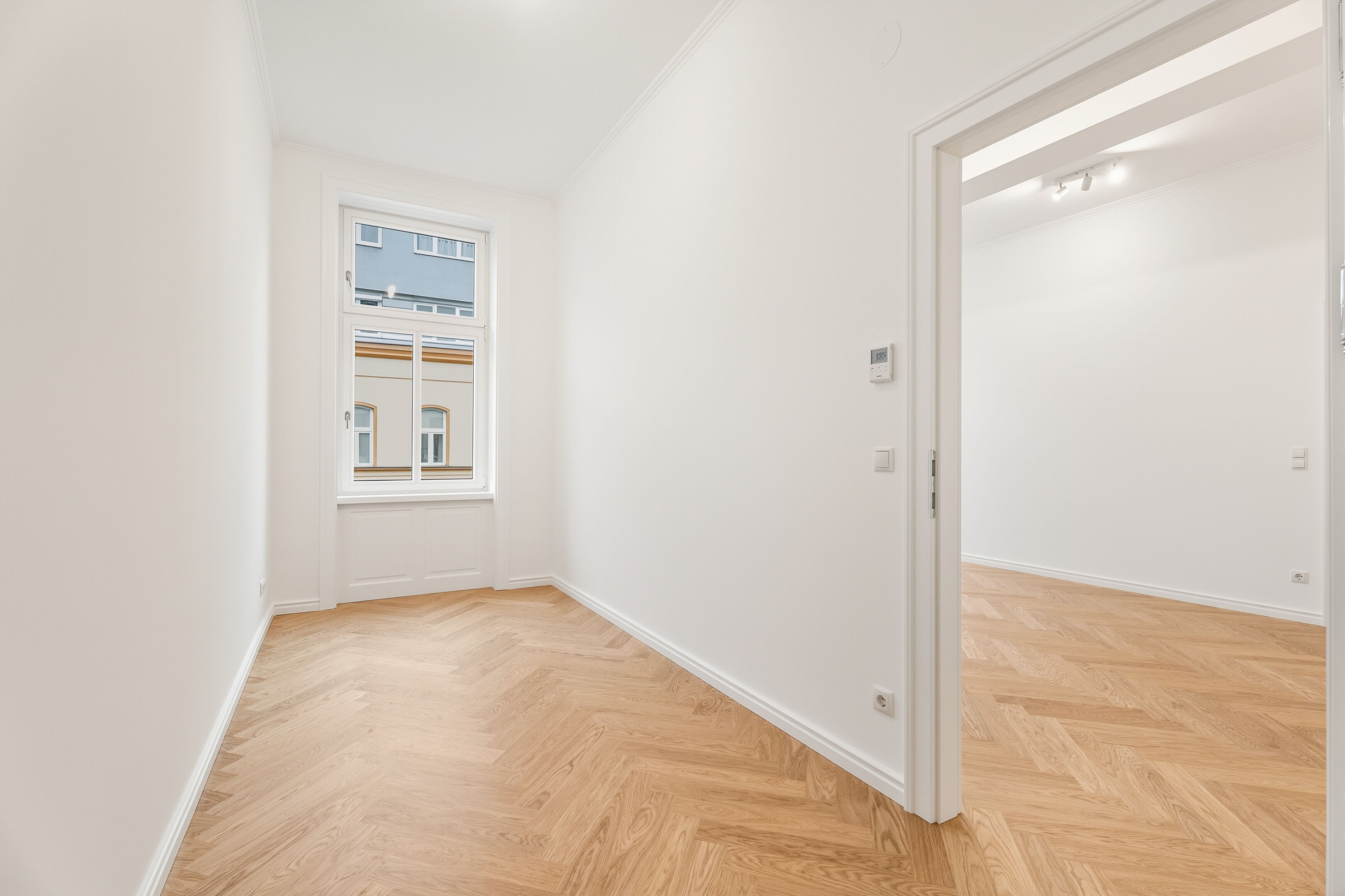 The flat is located on the 3rd floor of Burggasse 119 in Vienna's 7th district, a lively and popular neighbourhood. The neighbourhood is characterised by a high pedestrian frequency, numerous shops, cafés and restaurants, which ensures high visibility. The underground stations U3 "Zieglergasse" and U6 "Gumpendorfer Straße" are just a few minutes' walk away and offer excellent public transport connections.