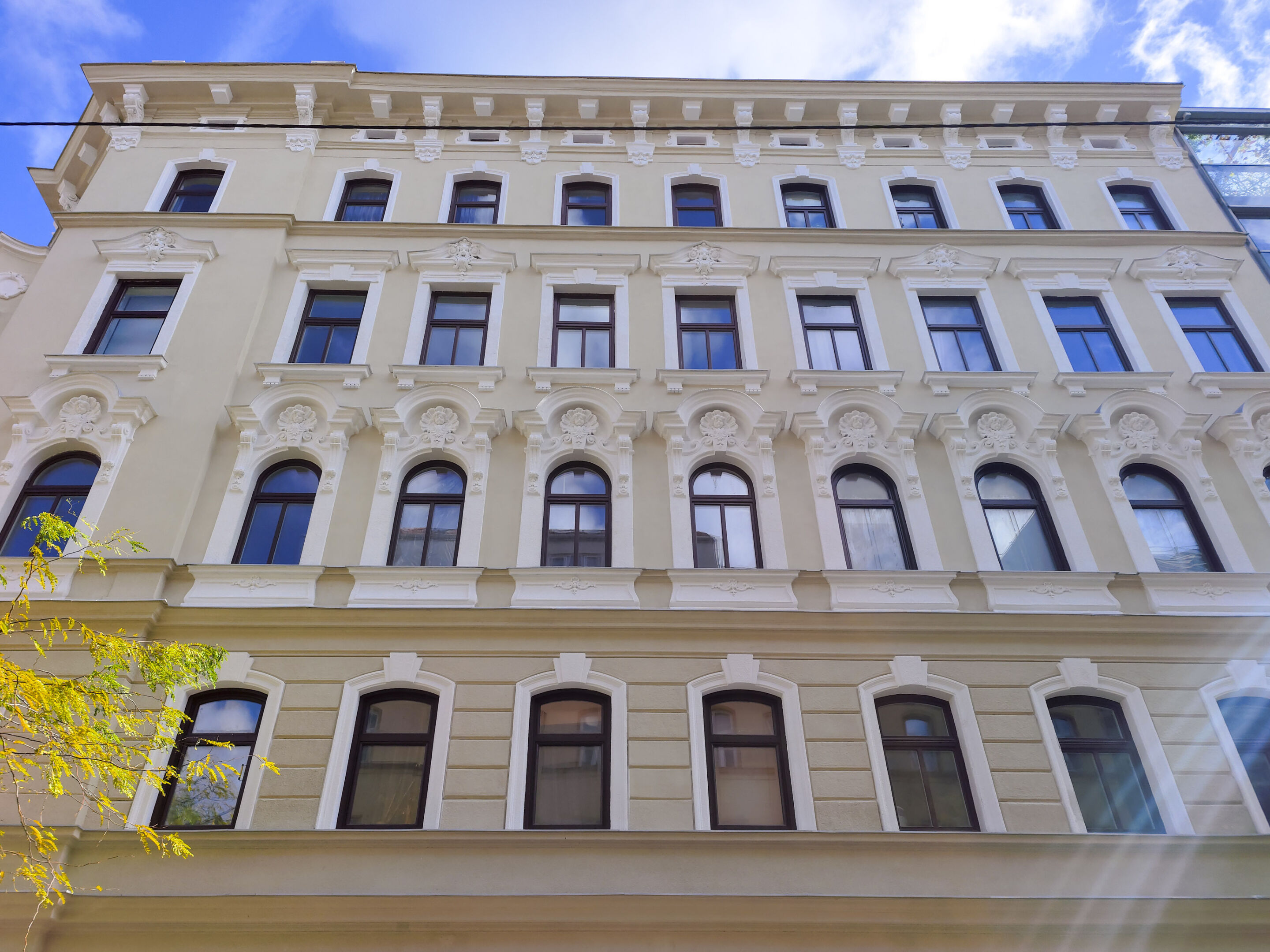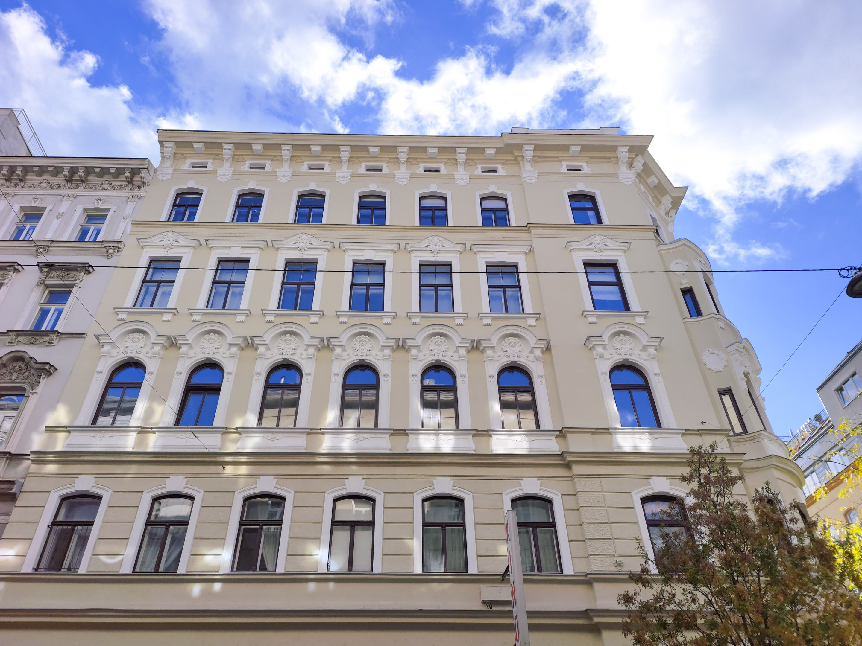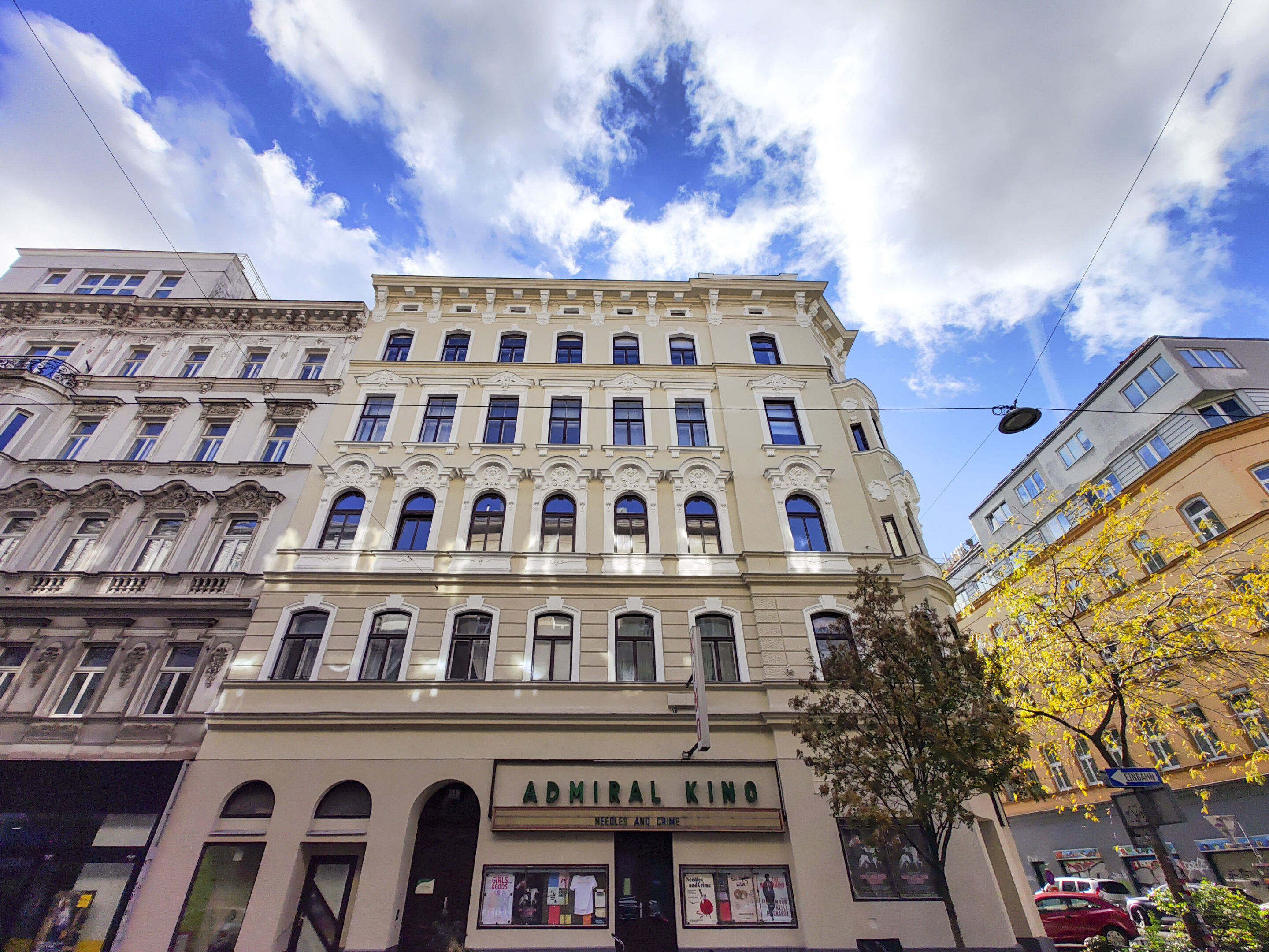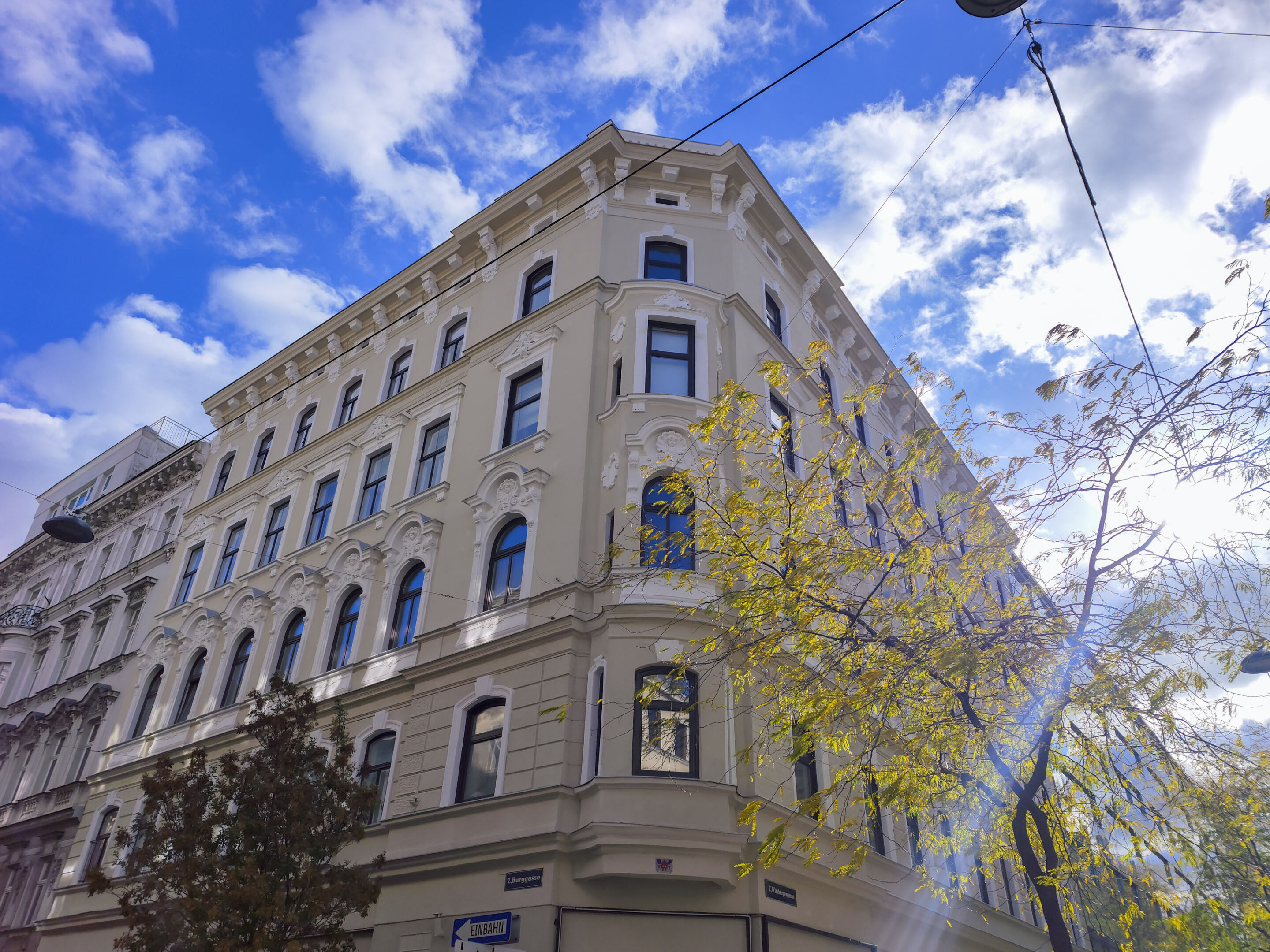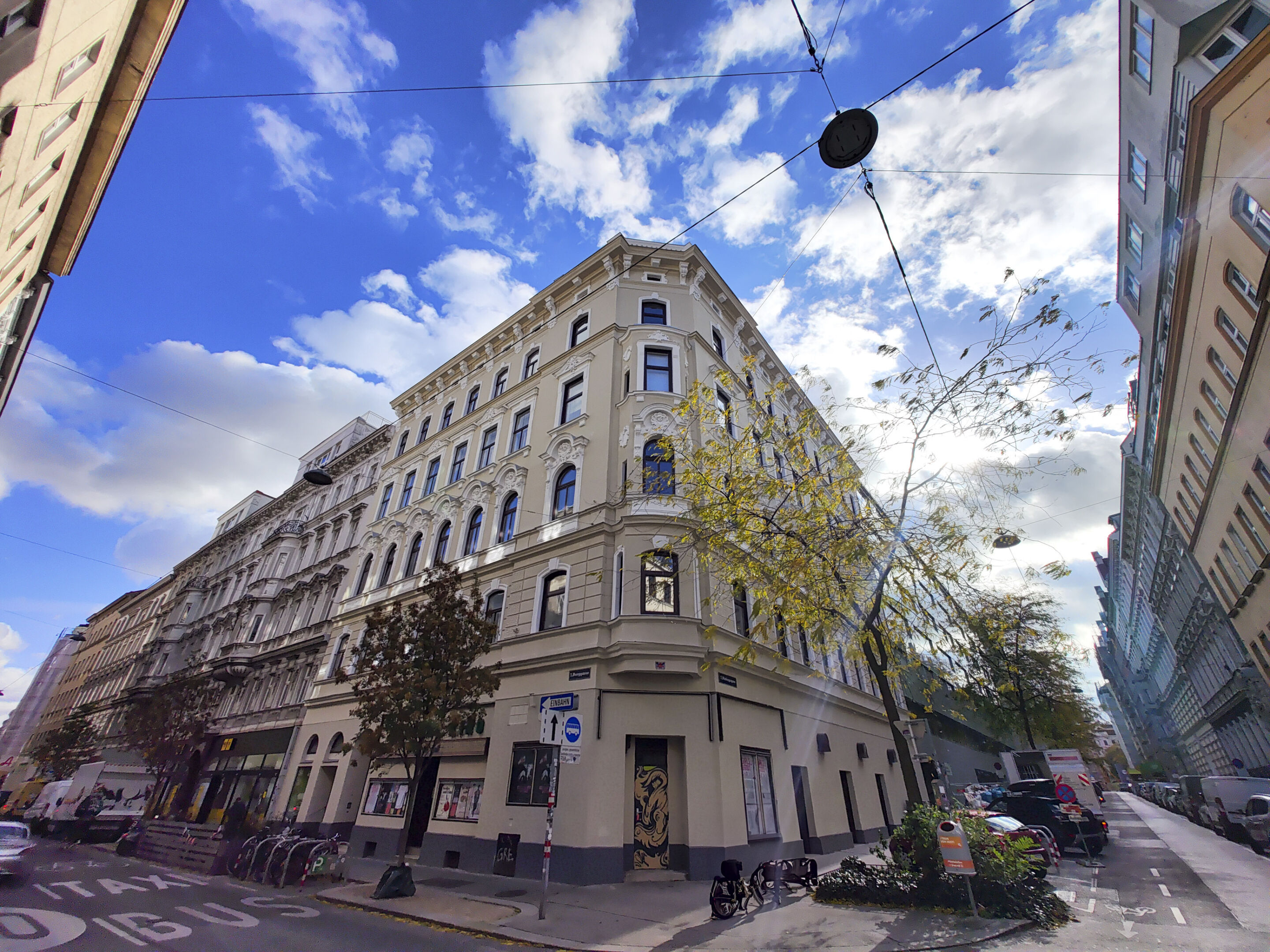 The apartment block at Burggasse 119, on the corner of Wimbergergasse, is located in the western part of Vienna's 7th district of Neubau, close to the border with the 15th district. The location is characterised by its urban structure, excellent transport connections and proximity to Burggasse-Stadthalle (U6), the popular 8th district and the popular Mariahilfer Straße. The Schottenfeld neighbourhood is known for its Gründerzeit architecture and mixed residential and commercial use.