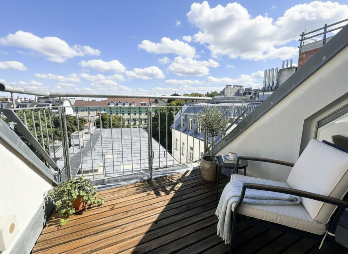 Dream view! Urban living - 1.5-room jewel in the 7th district with huge roof terrace