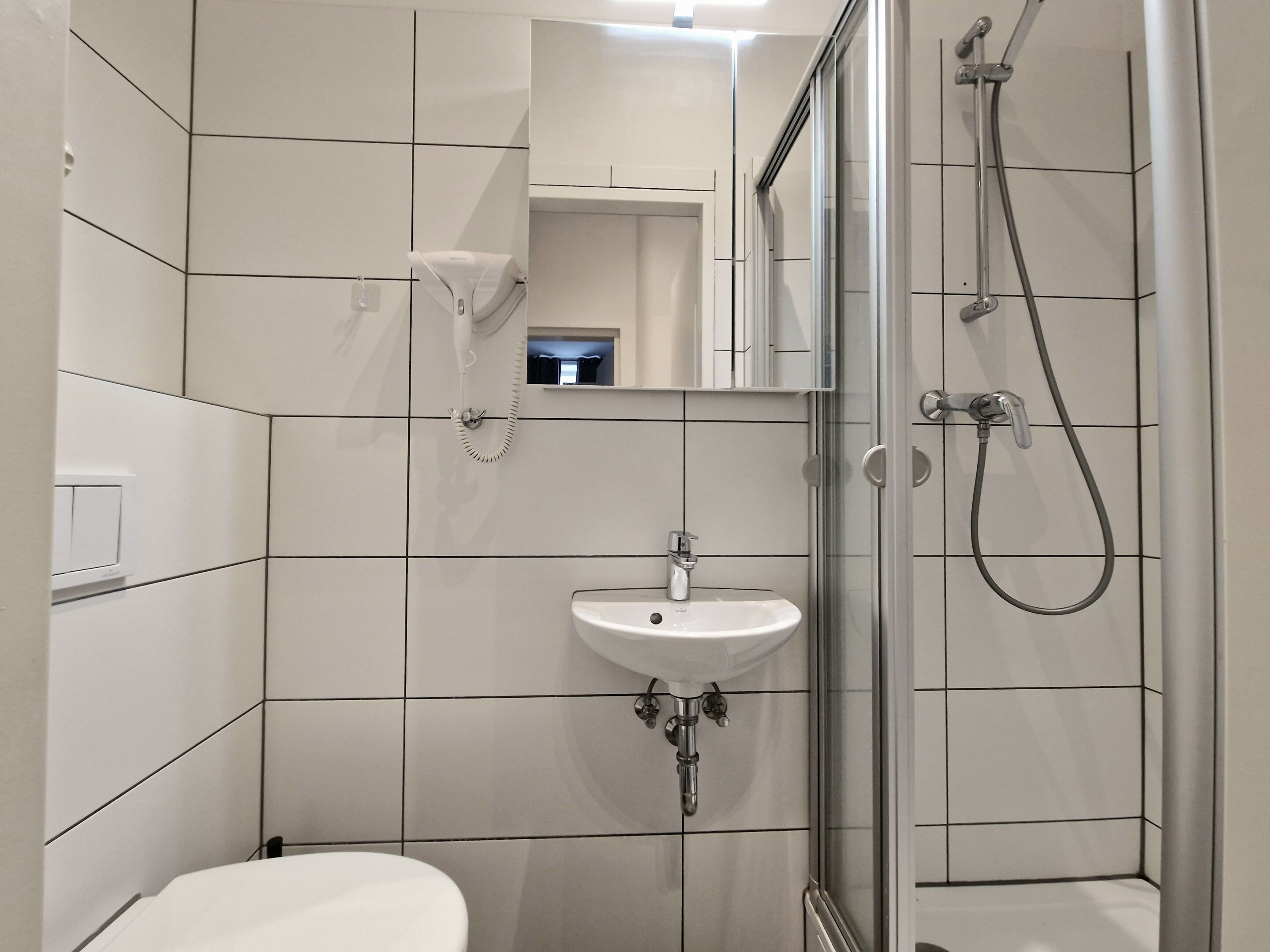The entrance hall with integrated kitchen offers plenty of storage space and leads into the bright living room and bedroom, which conveys an inviting feeling of living thanks to its pleasant ceiling height and old building charm. The bathroom is equipped with a shower and WC.