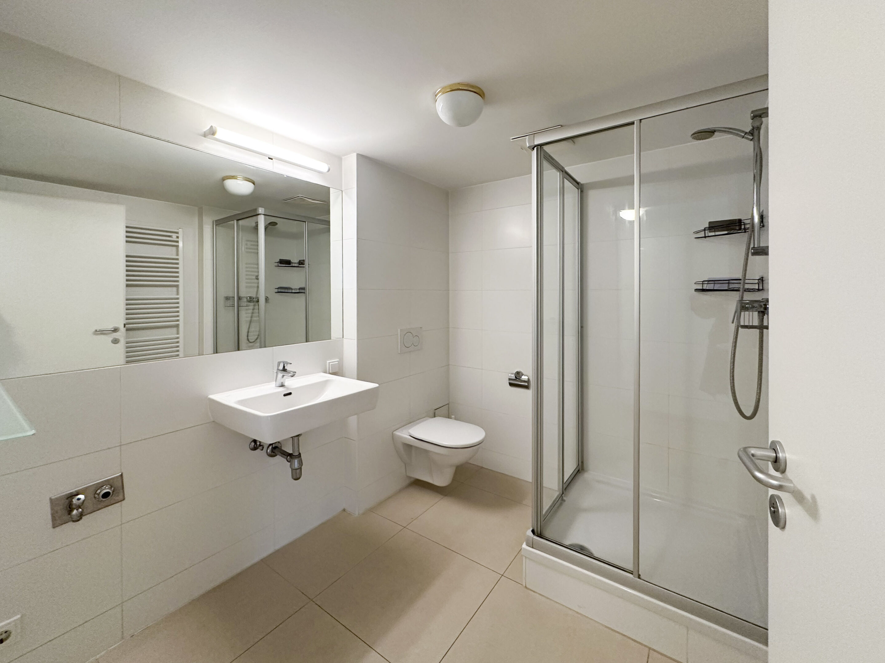 The bathroom impresses with clear elegance, a modern shower, WC and washing machine connection make it not only functional, but also a place where you can start the day fresh or end the evening relaxed.
