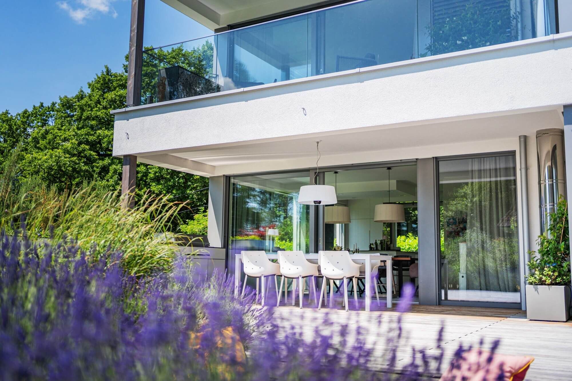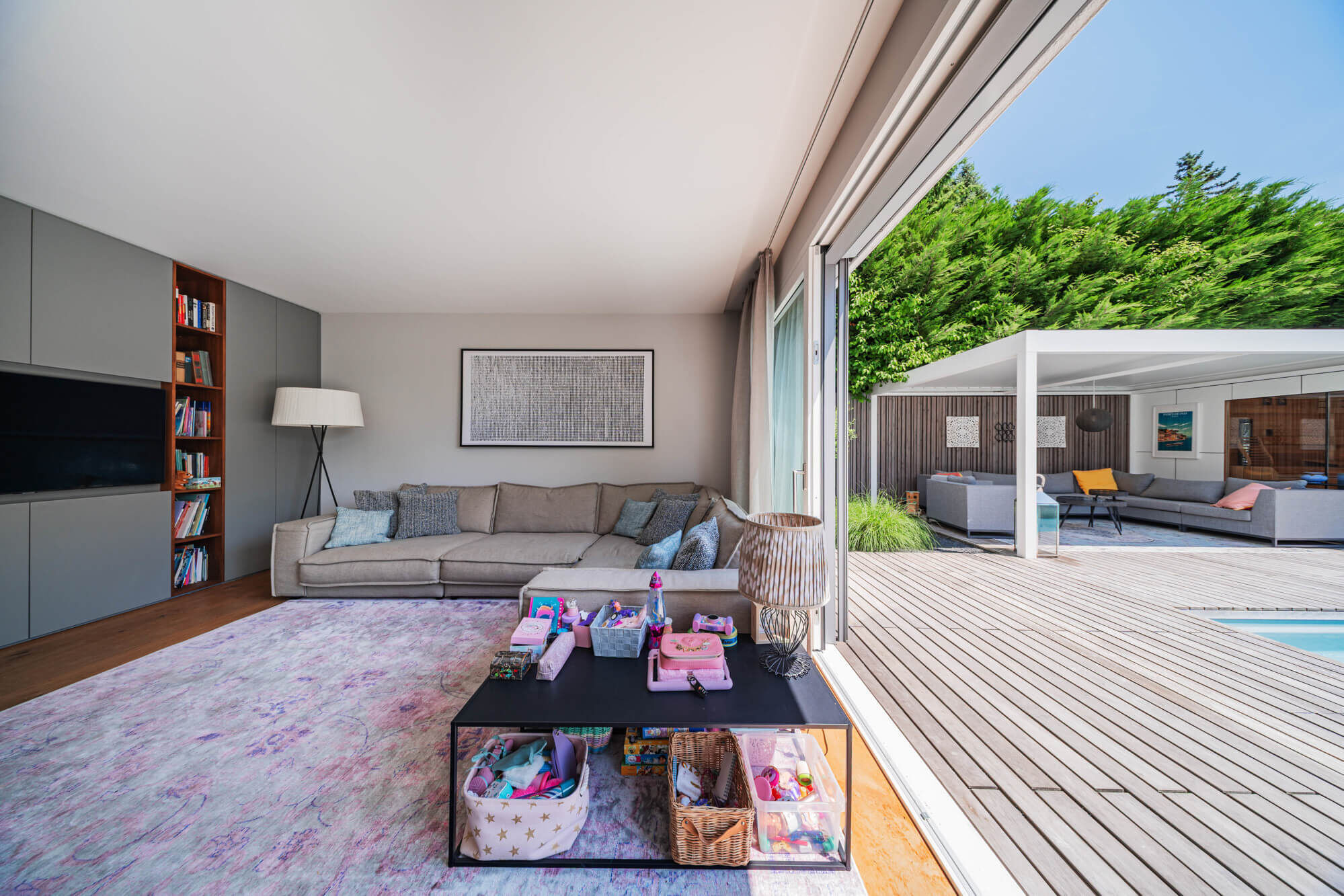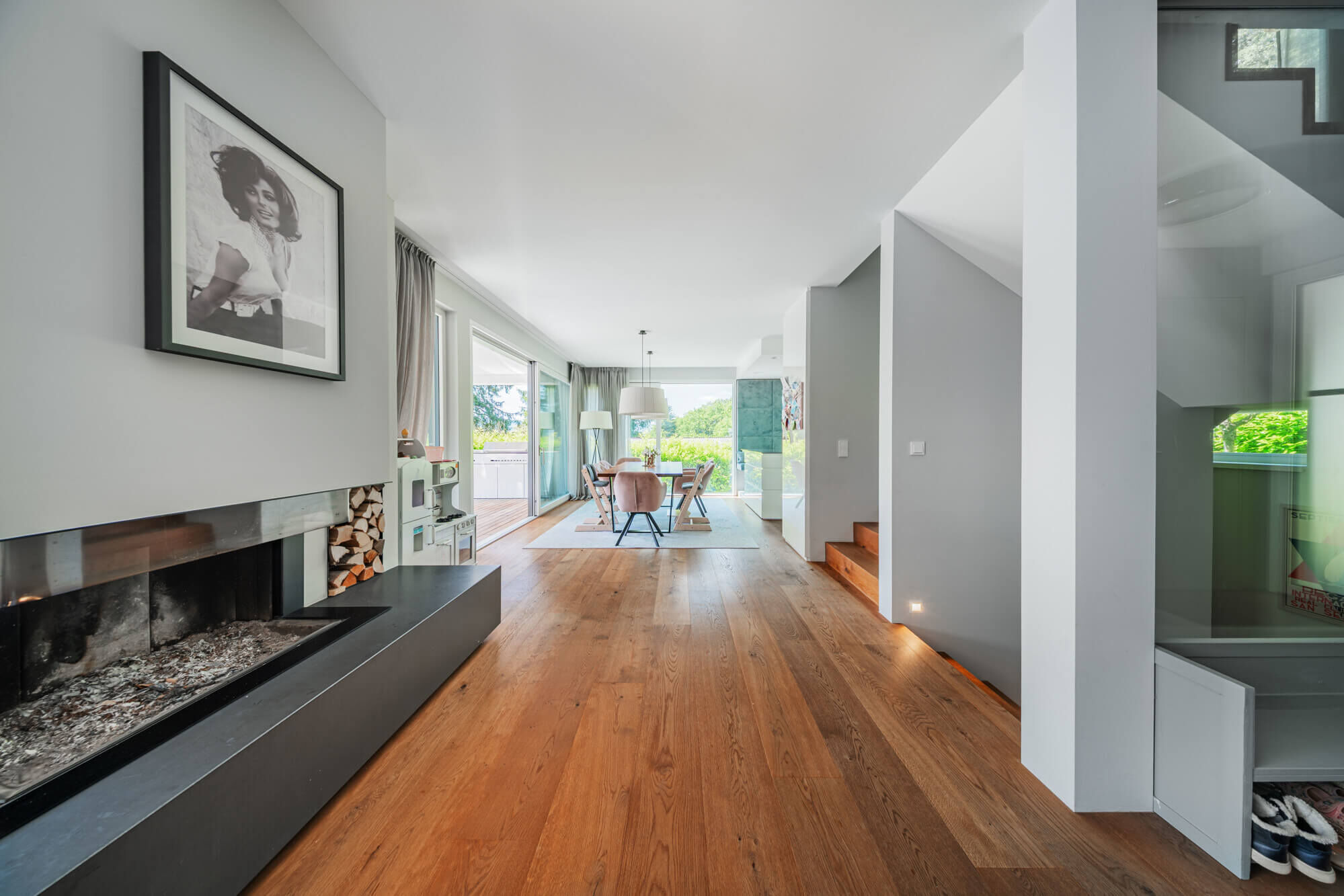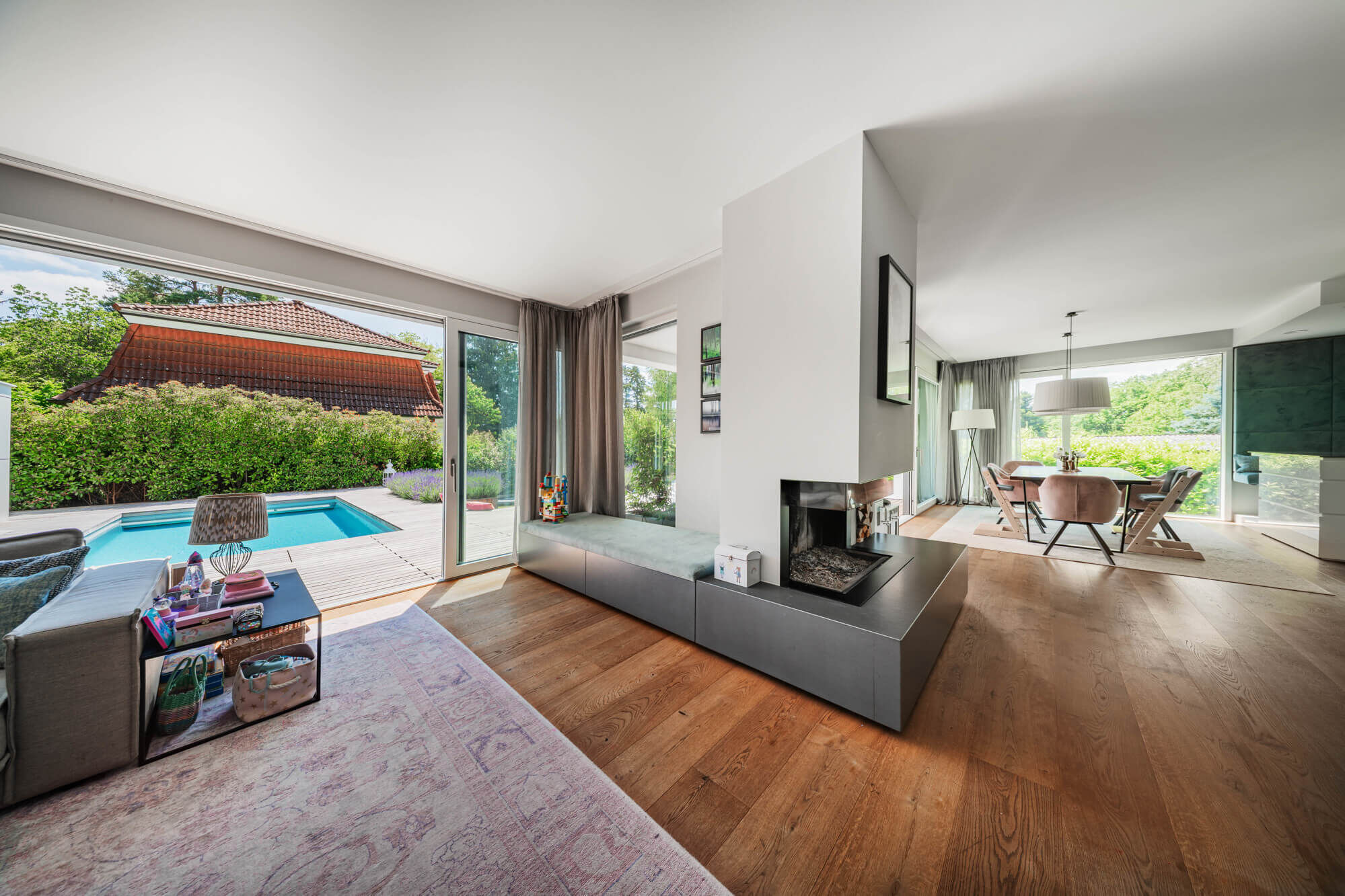 The living area is harmoniously extended into the outdoor area - with sauna, pool, outdoor kitchen, relaxation zone, terrace and well-tended garden - perfect for relaxing and socialising outdoors.