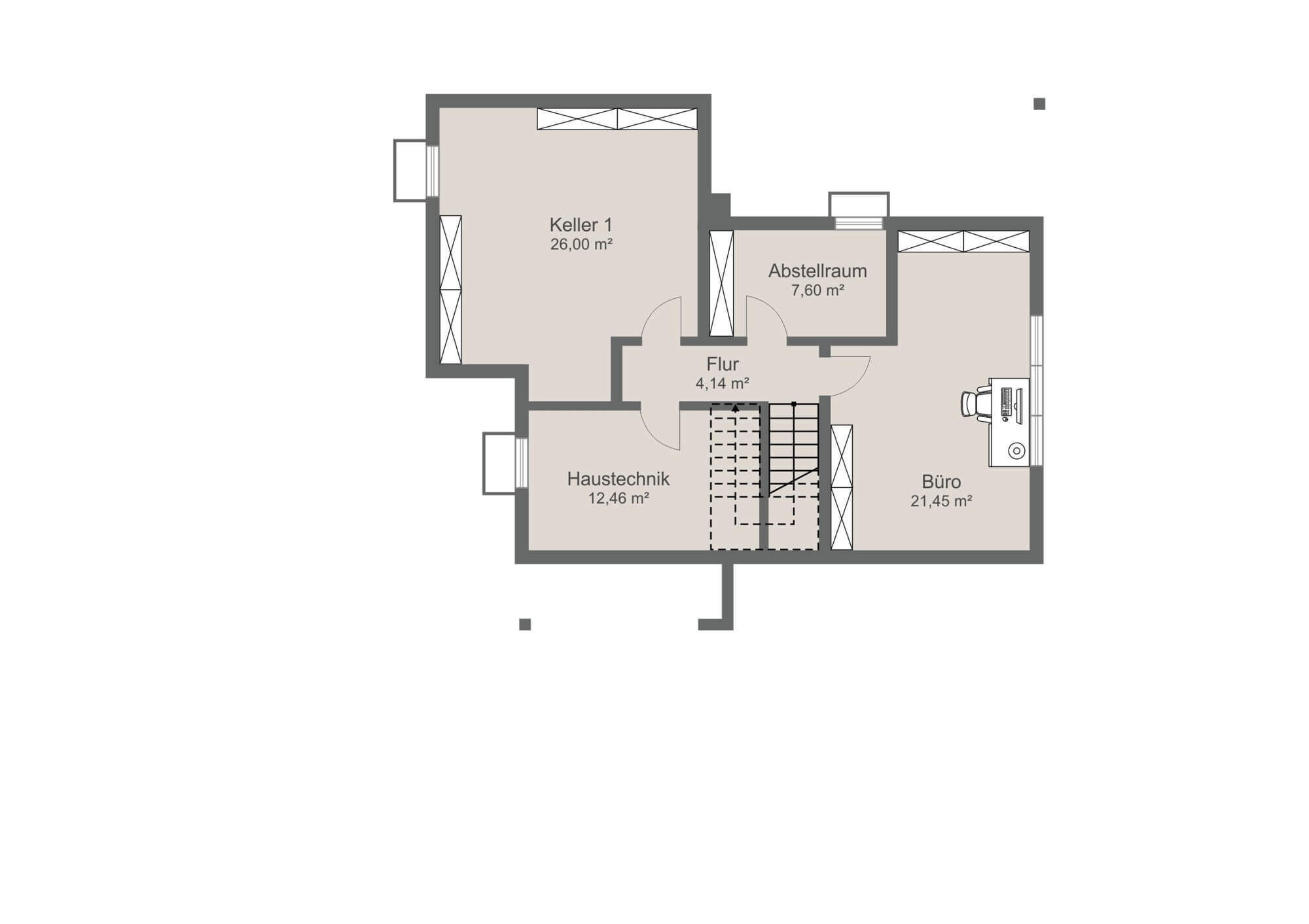 There is also a 42 m² basement with a further room, utility room and storage room.