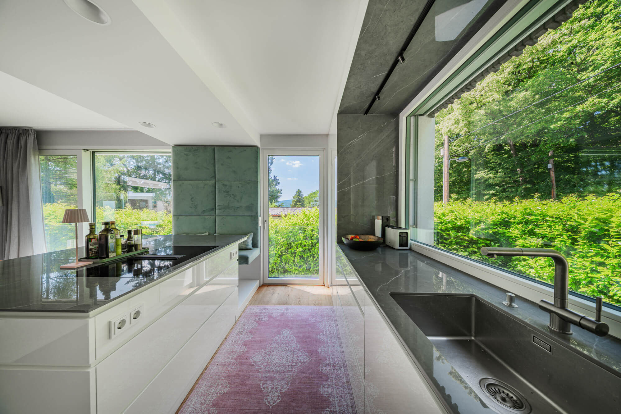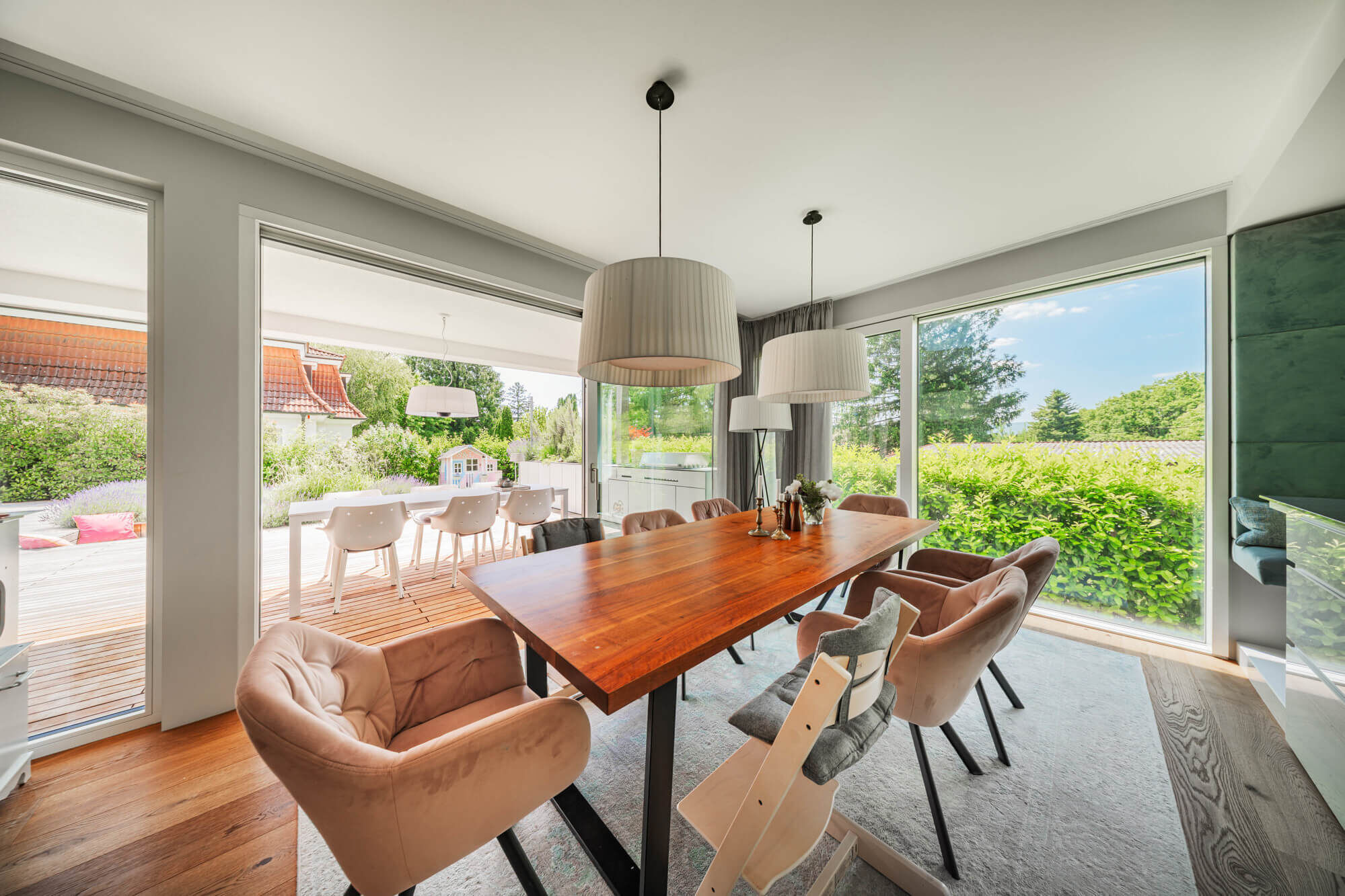 This exceptionally beautiful detached house with a south-east-facing garden, pool and private sauna and relaxation area is situated in an idyllic location right on the edge of the Vienna Woods Biosphere Reserve.