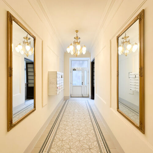 The property extends over several standard floors and impresses with its classic Gründerzeit architecture. The style-defining façade and the common areas are in attractive condition and emphasise the timeless character of the building.