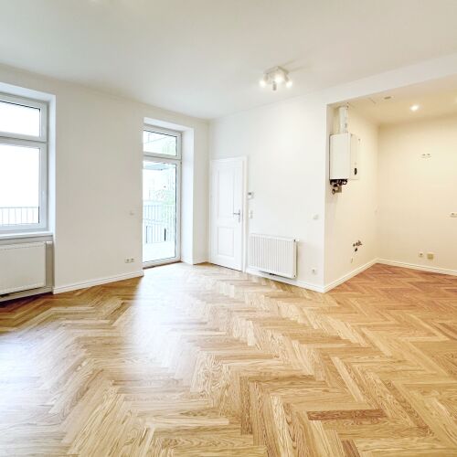 A stylishly refurbished 2-room flat in an old building with a living space of approx. 49m² on the 1st floor is for sale.