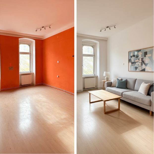 The cover picture gives an impression of the current condition of the flat and also shows what it could look like after a comprehensive refurbishment.