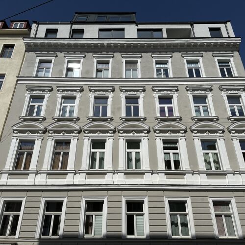 At Meiselstraße 28, in the heart of Vienna's 15th district, a total of 29 units are for sale in a splendid period building from the turn of the century. The four-storey building with basement has been revitalised with great attention to detail. The freshly renovated façade shines in new splendour and combines the unmistakable charm of the classic Viennese old building with a neat, inviting appearance.