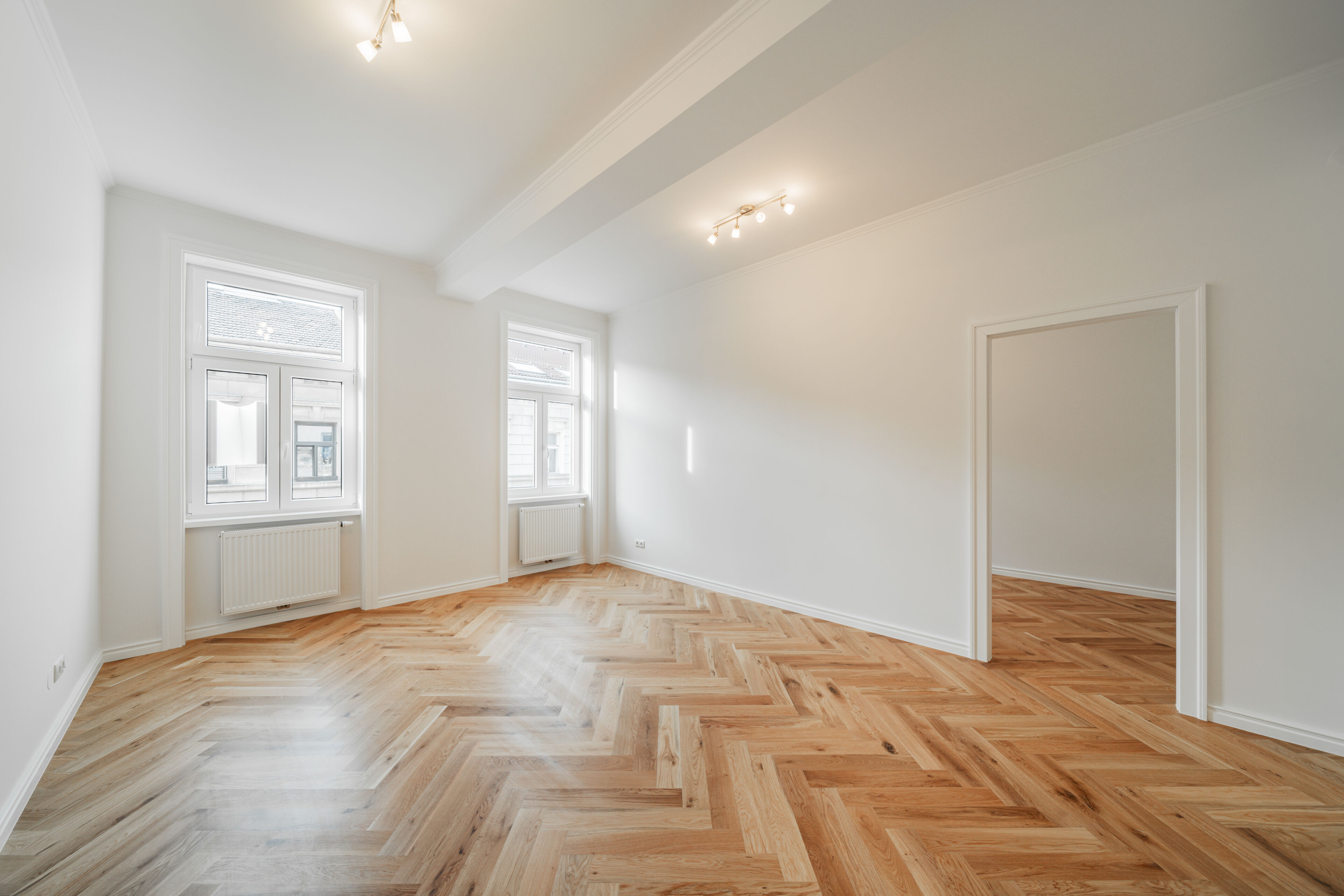 A 2-room flat in an old building on the 3rd floor is for sale. The period flat was recently refurbished and features herringbone oak parquet flooring and stylish panelled doors. Elegant ceiling stucco and fine panelling underline the unique old Viennese character. The bathroom and WC impress with high-quality brand fittings and ceramics. This attractive residential unit impresses with a well thought-out floor plan and high-quality fittings. The layout is as follows:
