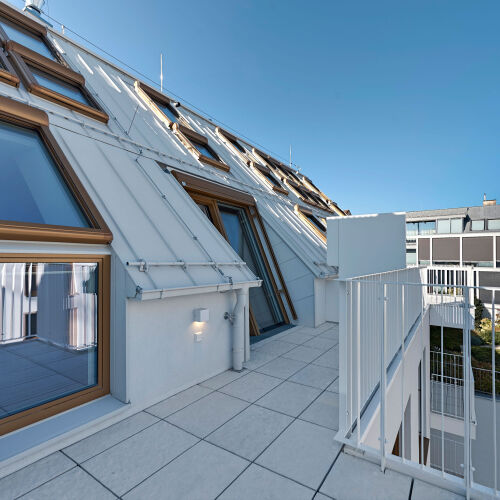 What all apartment types have in common is the principle of offering future residents the best possible living experience. Design standards and quality are emphasised in all four flat types. The outdoor areas in almost every flat extend the inviting living spaces and provide a view of the green oasis in the inner courtyard or the quiet Schumanngasse. In addition to the spacious garden flats, there is a choice of flats with balconies or terraces. In the green inner courtyard there is a children's playground with a sandpit and several seating areas, and on the garden floor at the rear of the building there is a children's and youth playroom as well as a pram and bicycle storage room.