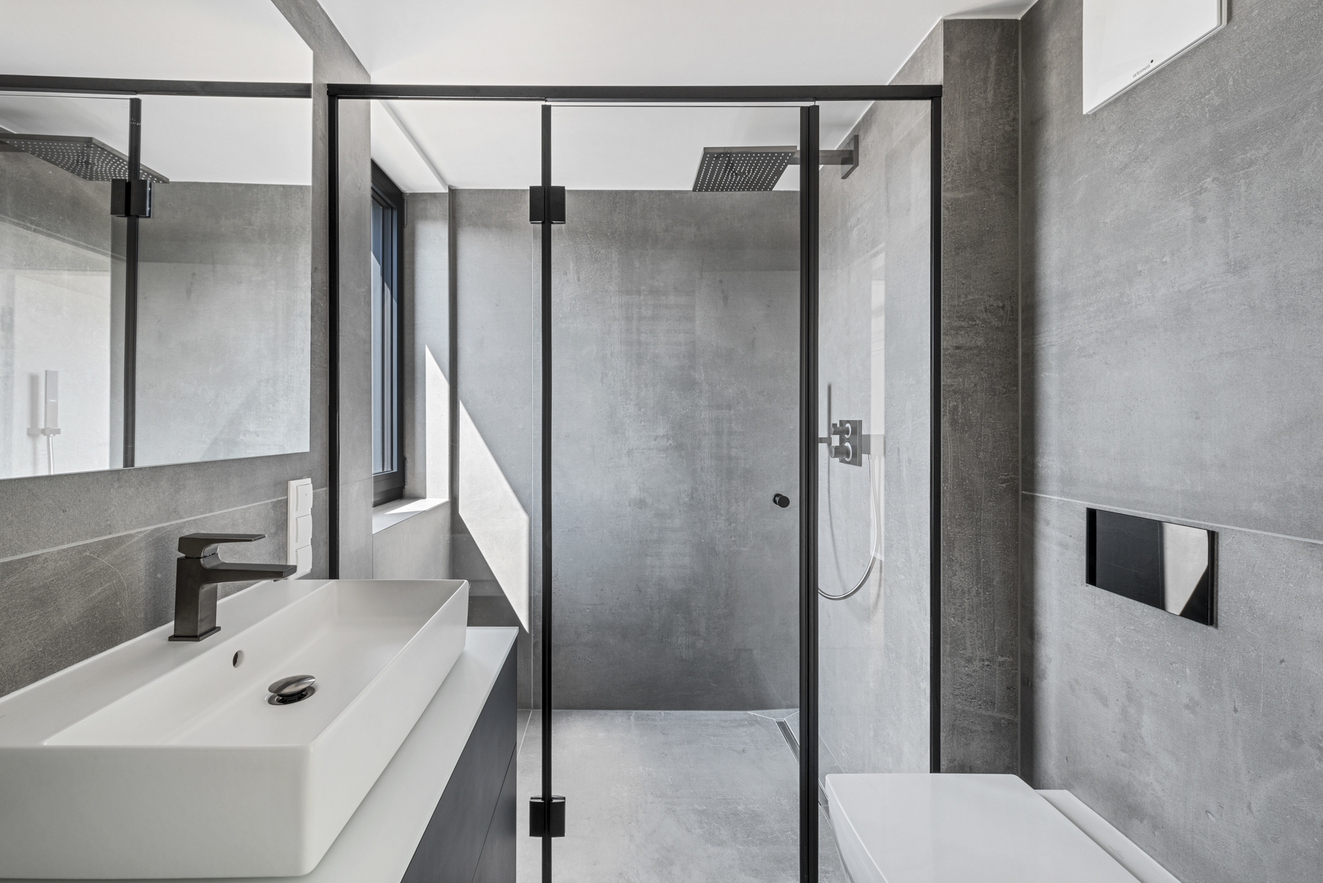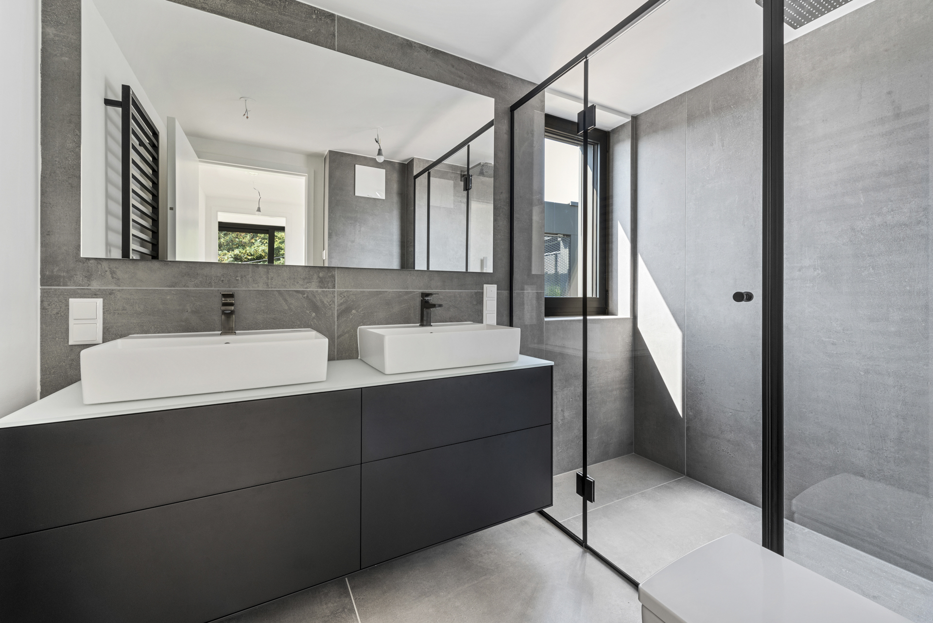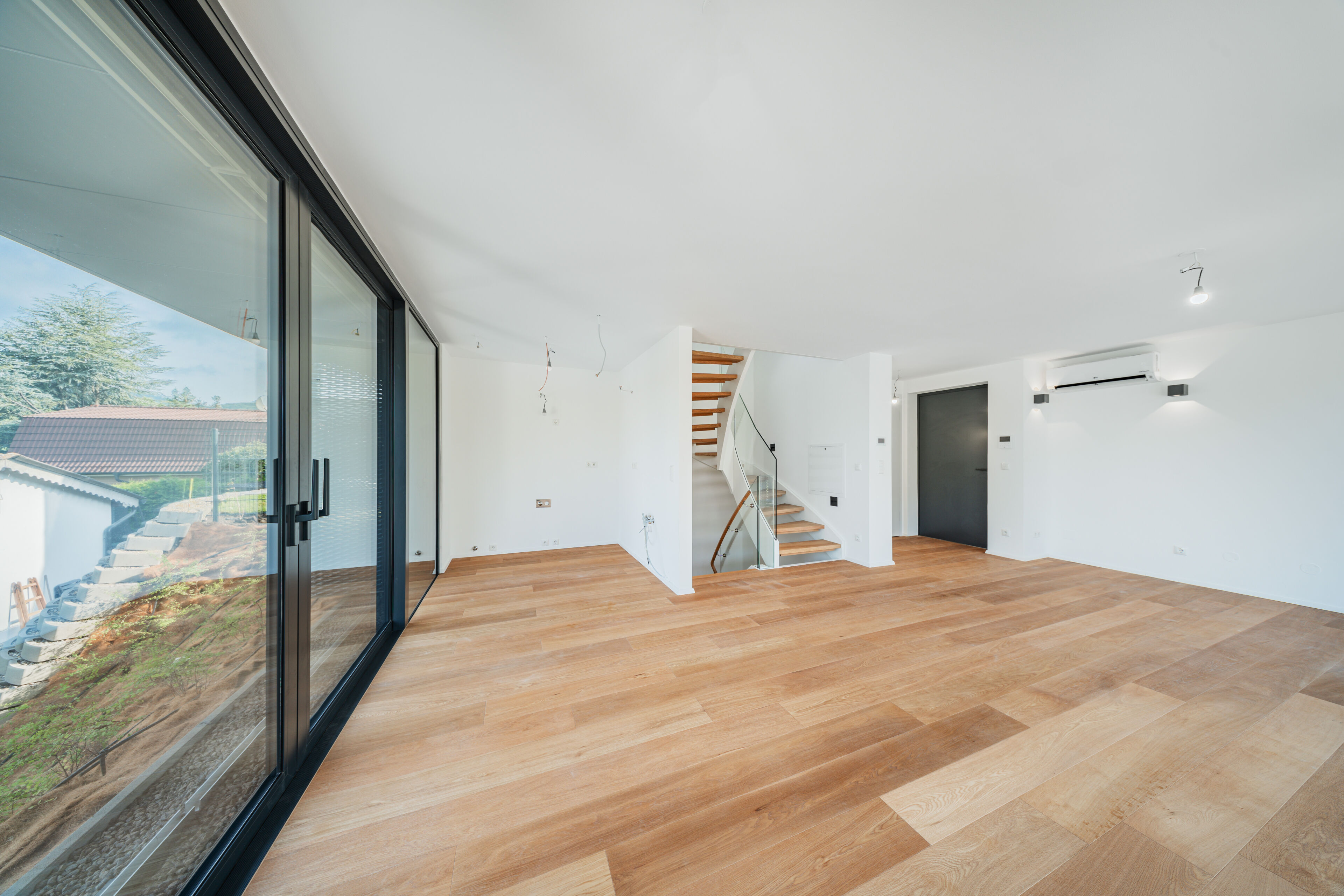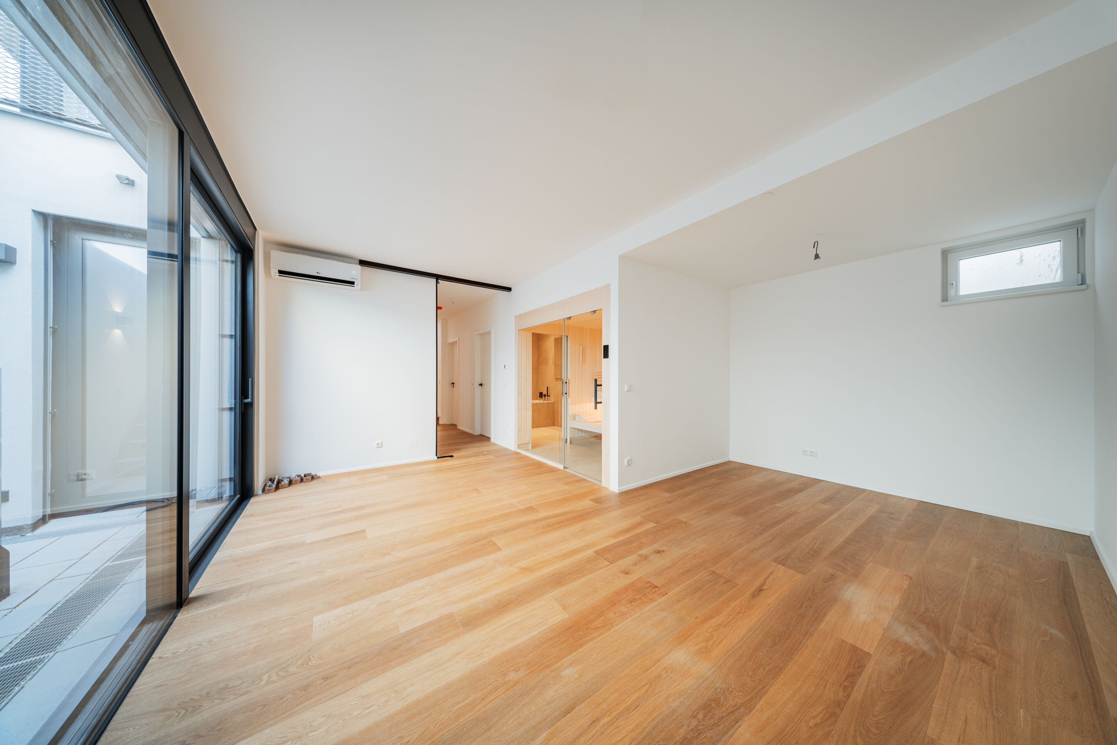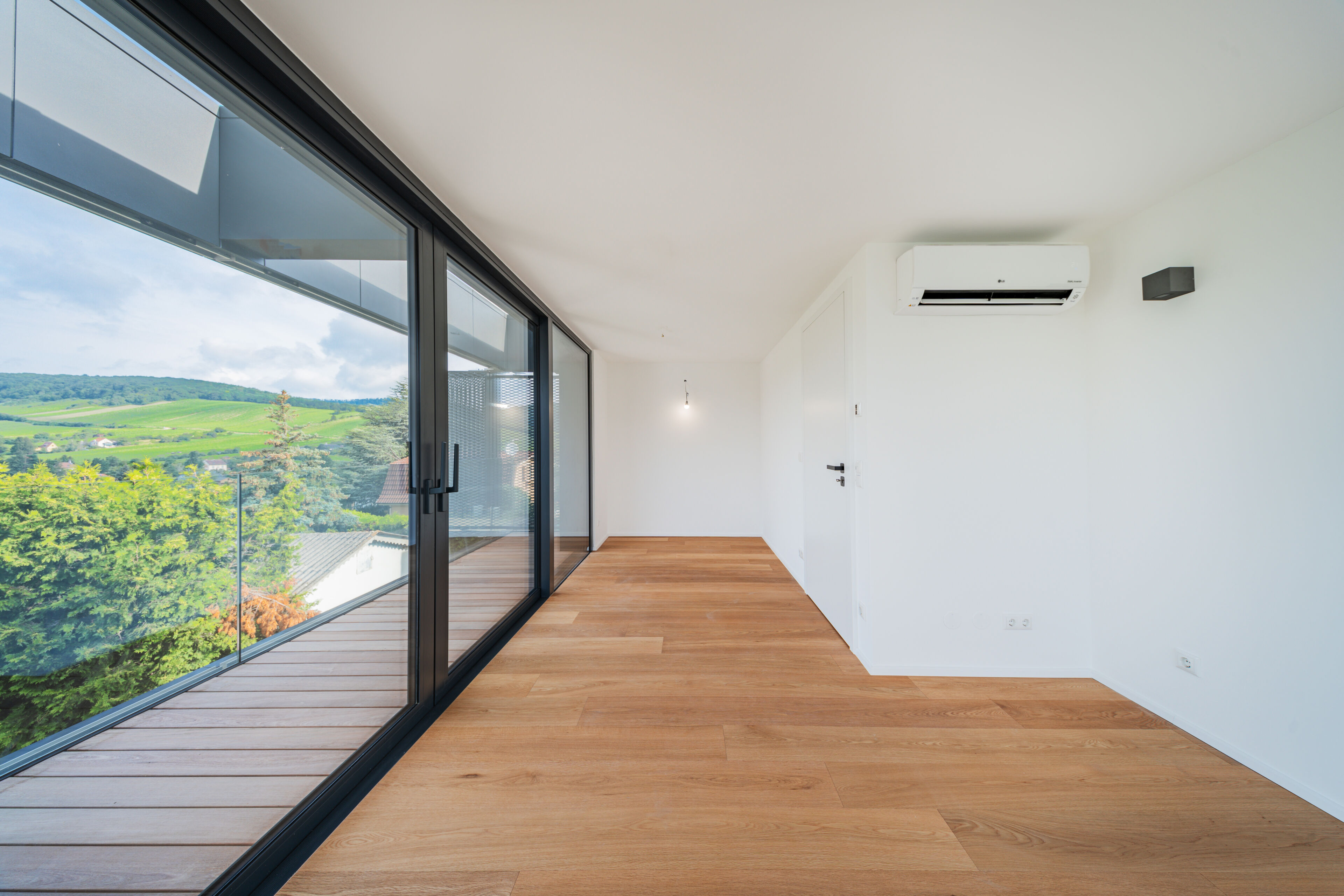 The secret of the UNIQUE villas' feel-good experience lies in the skilful interplay of great ideas and finely thought-out details. The interiors are characterised by their natural beauty thanks to high-quality oak floorboards. Large windows that let sunlight into the living spaces and allow a view of nature create echoes of the iconic architecture of the residential project. The design concept of the bathrooms is characterised by high-quality porcelain stoneware and state-of-the-art branded sanitaryware, which create an inviting and exquisite atmosphere. The living comfort is complemented by technical add-ons, such as an integrated radio in the bathroom and a smart home control system, which can be used to control the temperature and lighting from anywhere via an app.