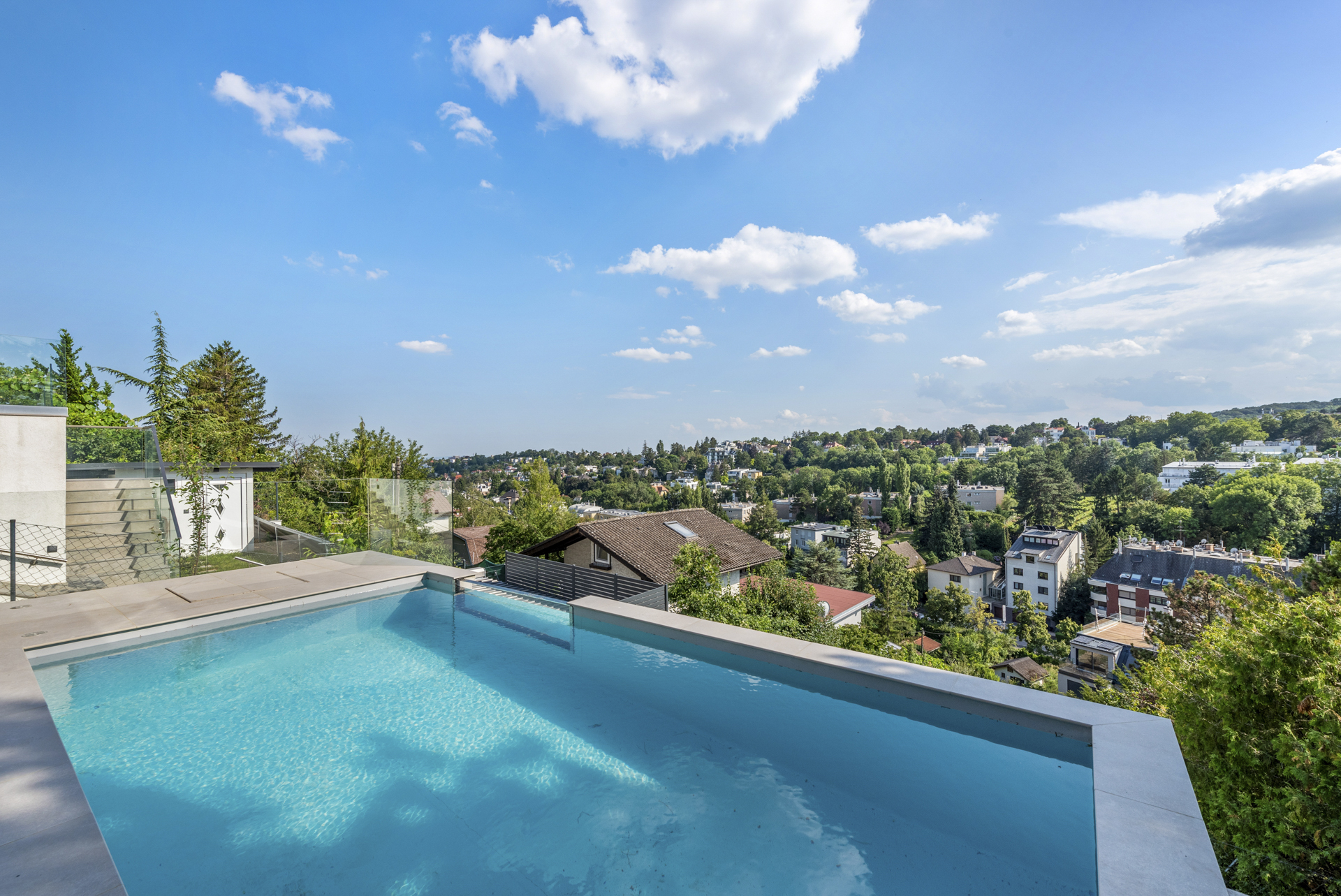 On the sunny southern slope of the Hackenberg in the heart of Sievering, this villa seduces with 129 m² of living space on 3 levels, a private sauna and its own outdoor pool. Furnished with stylish elegance and exquisite taste.