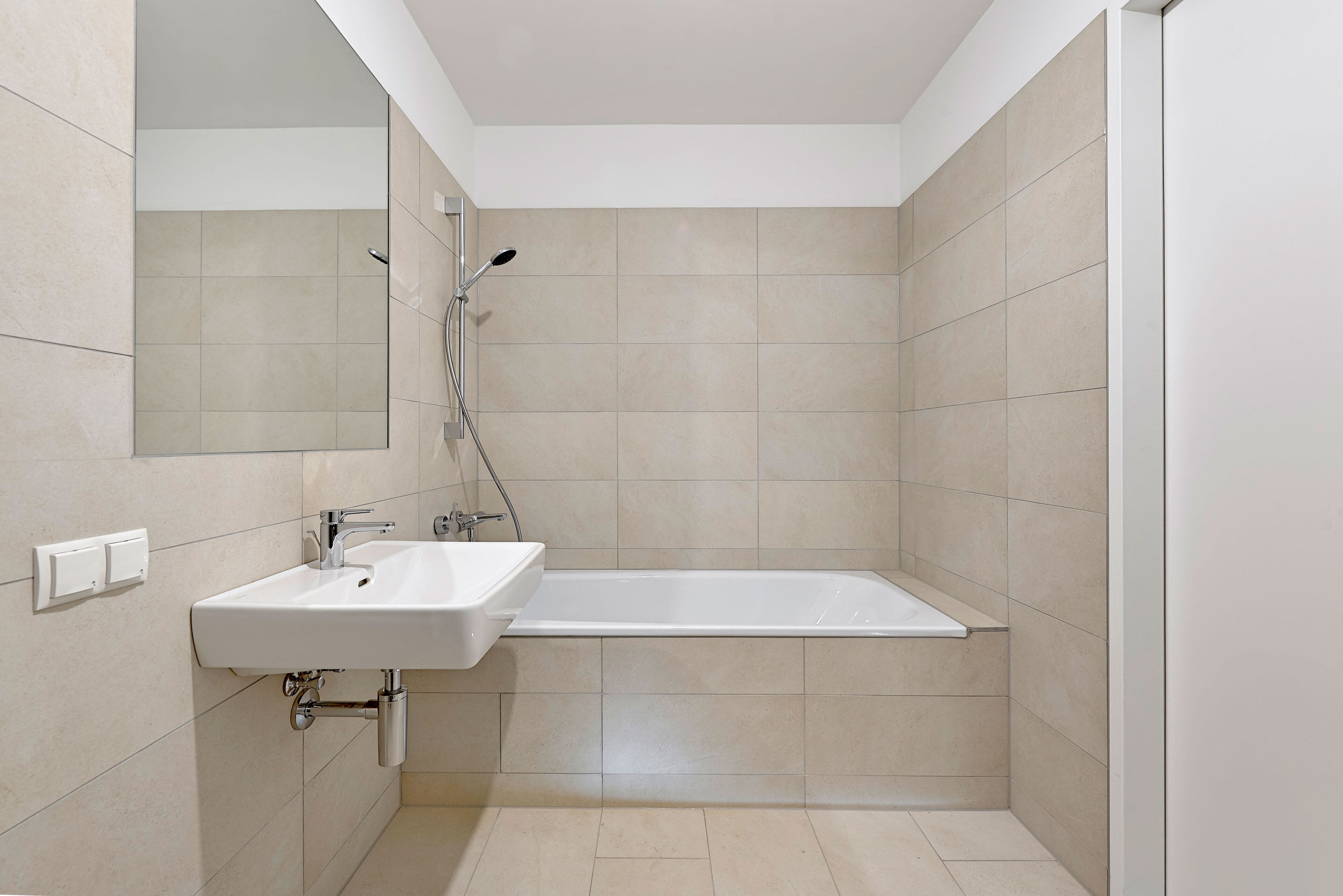 - 1st bathroom with bathtub, hand basin, toilet and washing machine connection
