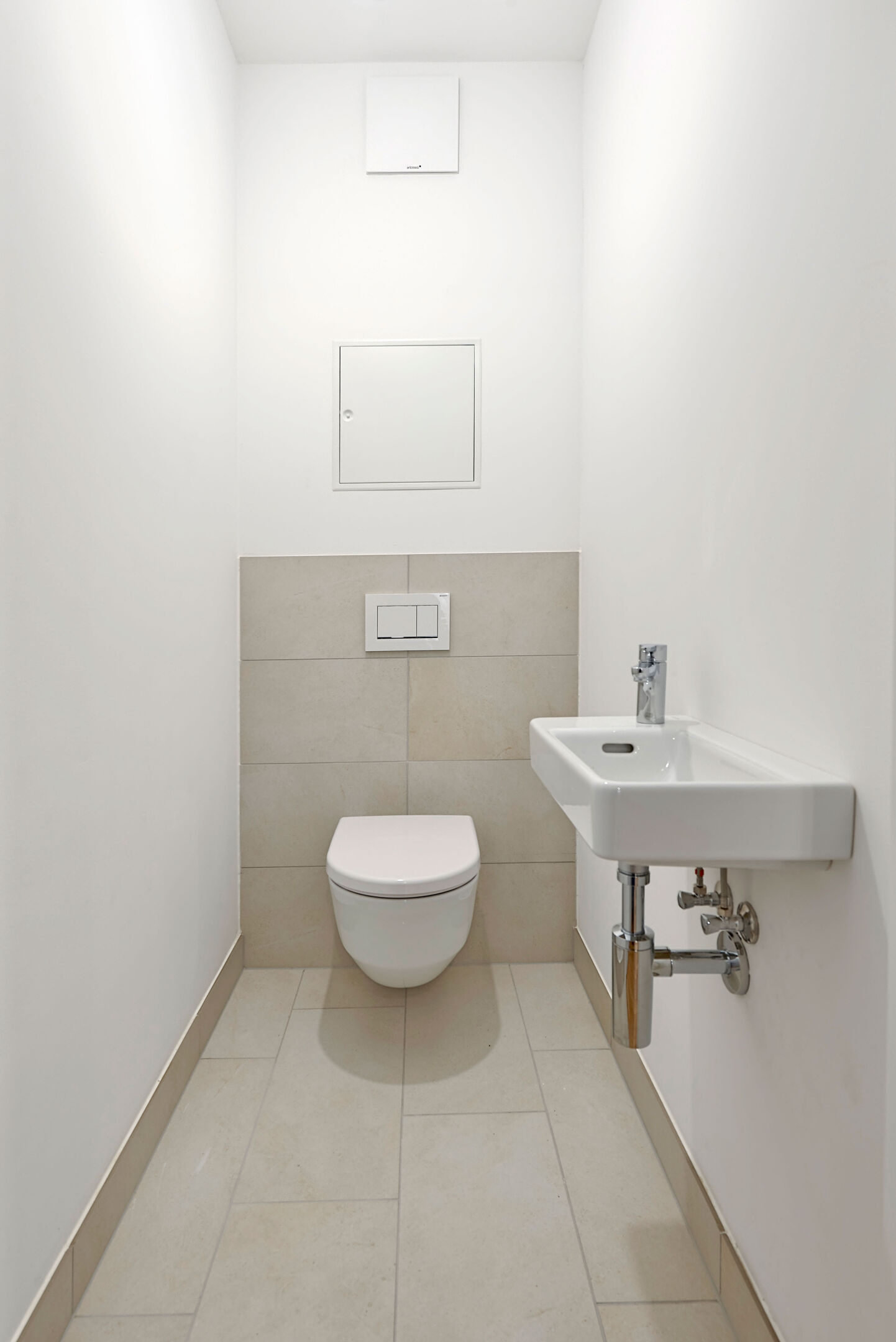 Almost all freehold flats have attractive open spaces such as balconies, loggias, terraces or private gardens. Above the flats on the ground floor with beautiful private gardens, cleverly designed residential units with 1 to 4 rooms each and sizes ranging from approx. 35 to 135 m² are being built on 4 upper floors. The flats offer either a street-side or courtyard view and an outdoor area in the form of a balcony, loggia or terrace. The crowning glory is formed by 2 attractive top floor levels, these flats offer terraces or private roof terraces and a beautiful view.