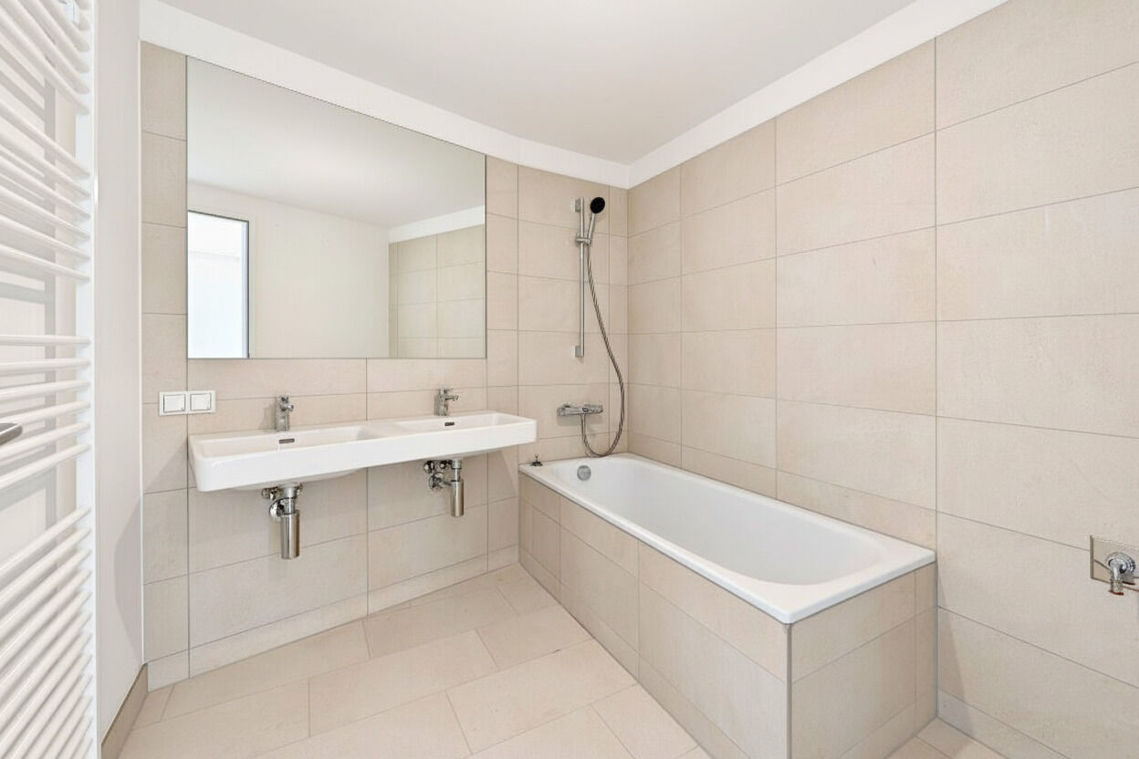 • Bathroom (approx. 5 m²) with bathtub, two washbasins and washing machine connection