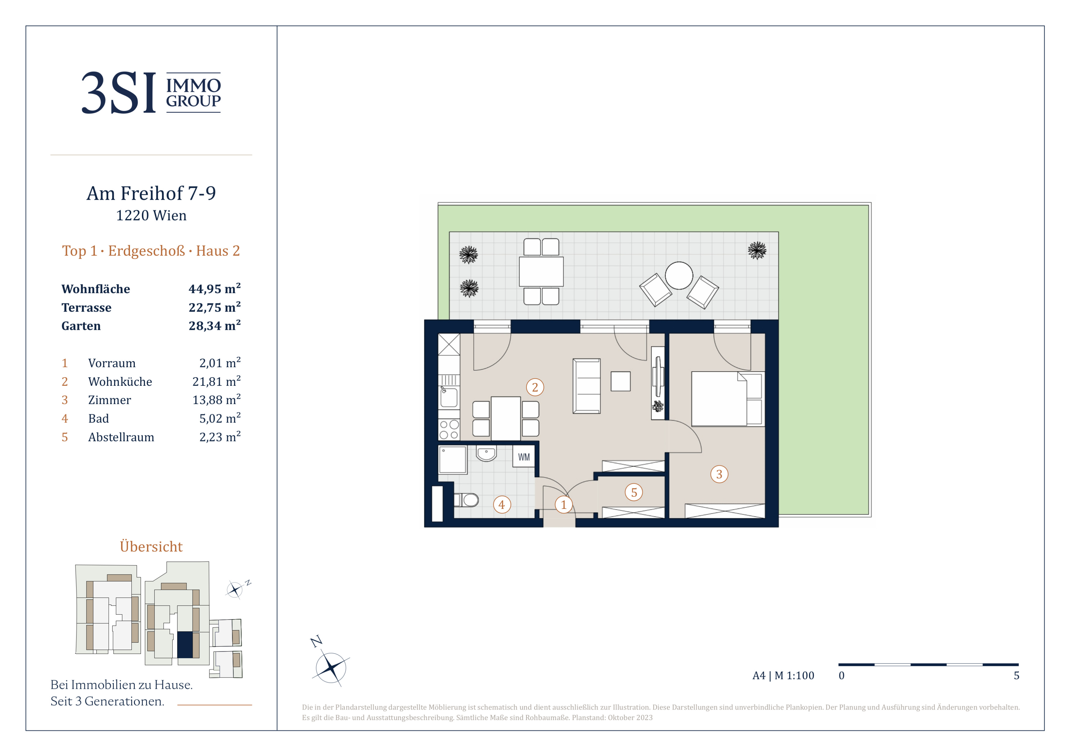 Information on commission fees: For the sake of good order, we note that a commission must be paid to 3SI Makler GmbH in the case of a successful transaction in the amount previously specified. The amount of commission is consistent with the provisions of the current Ordinance of the Federal Minister for Economic Affairs on the Professional Ethics and Rules of Practice for Real Estate Agents. The obligation to pay the commission shall also exist if you pass on the information provided to you to third parties. Finally, we would like to point out that we are acting as dual brokers and that there is a close familial or economic relationship between 3SI Makler GmbH and the seller.