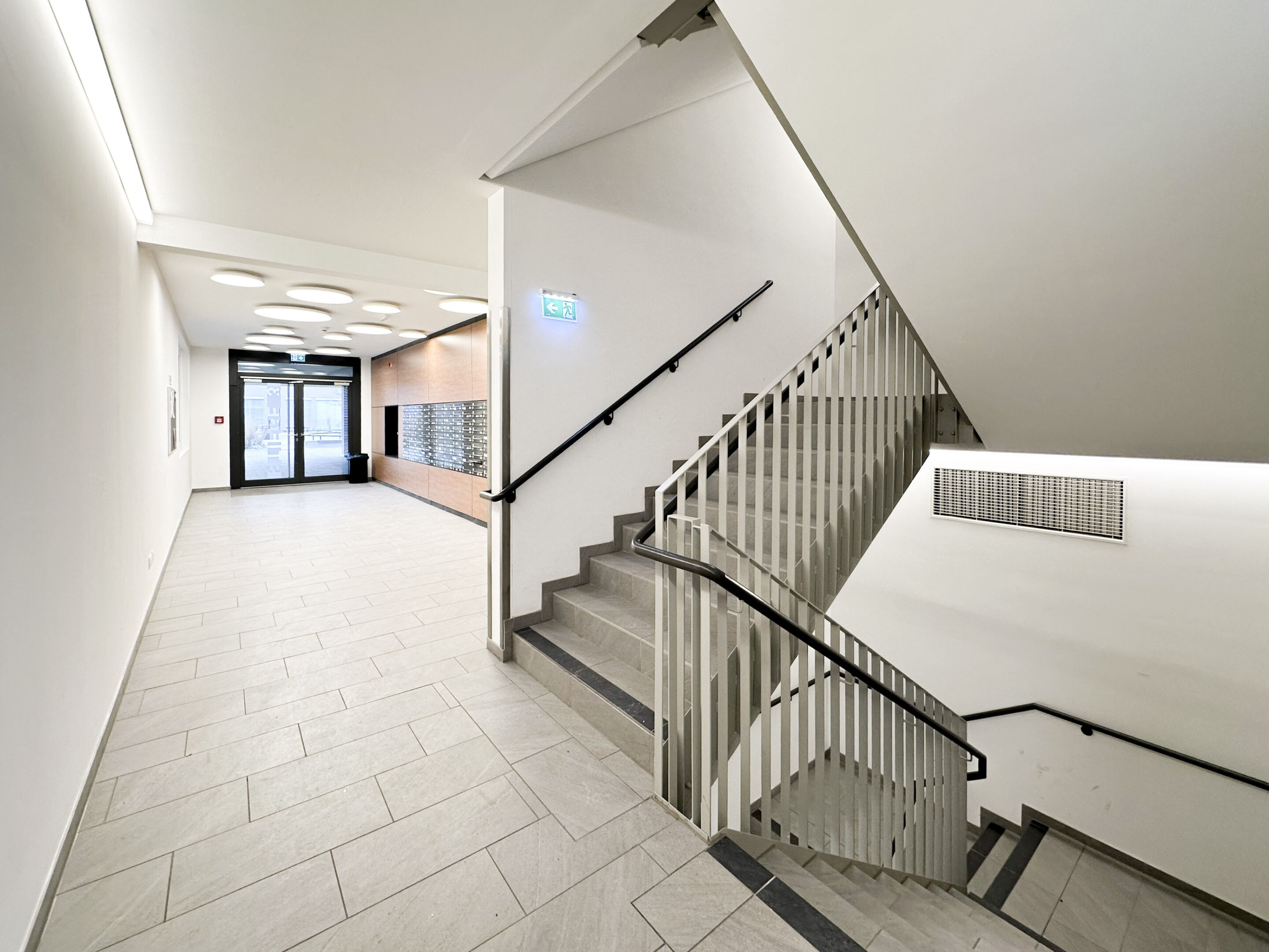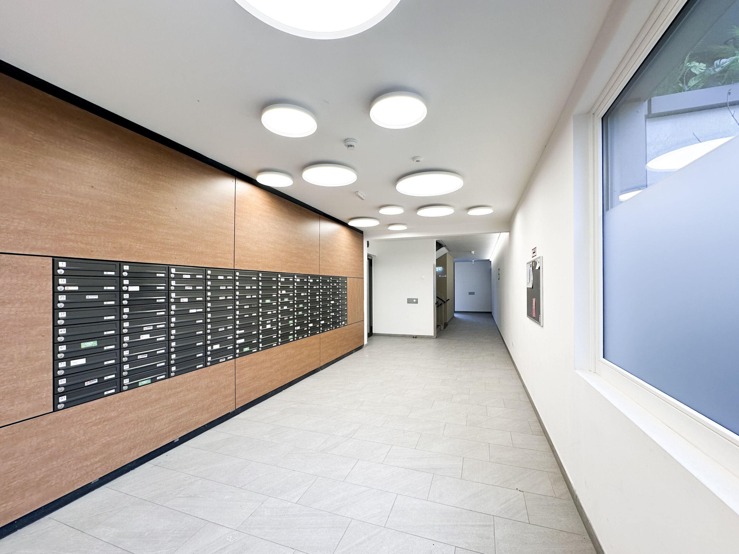 Heating via the ceiling by means of component activation ensures a pleasant indoor climate. Additional comfort is provided by a sauna and fitness centre in the building as well as communal rooms that round off the residential offer.