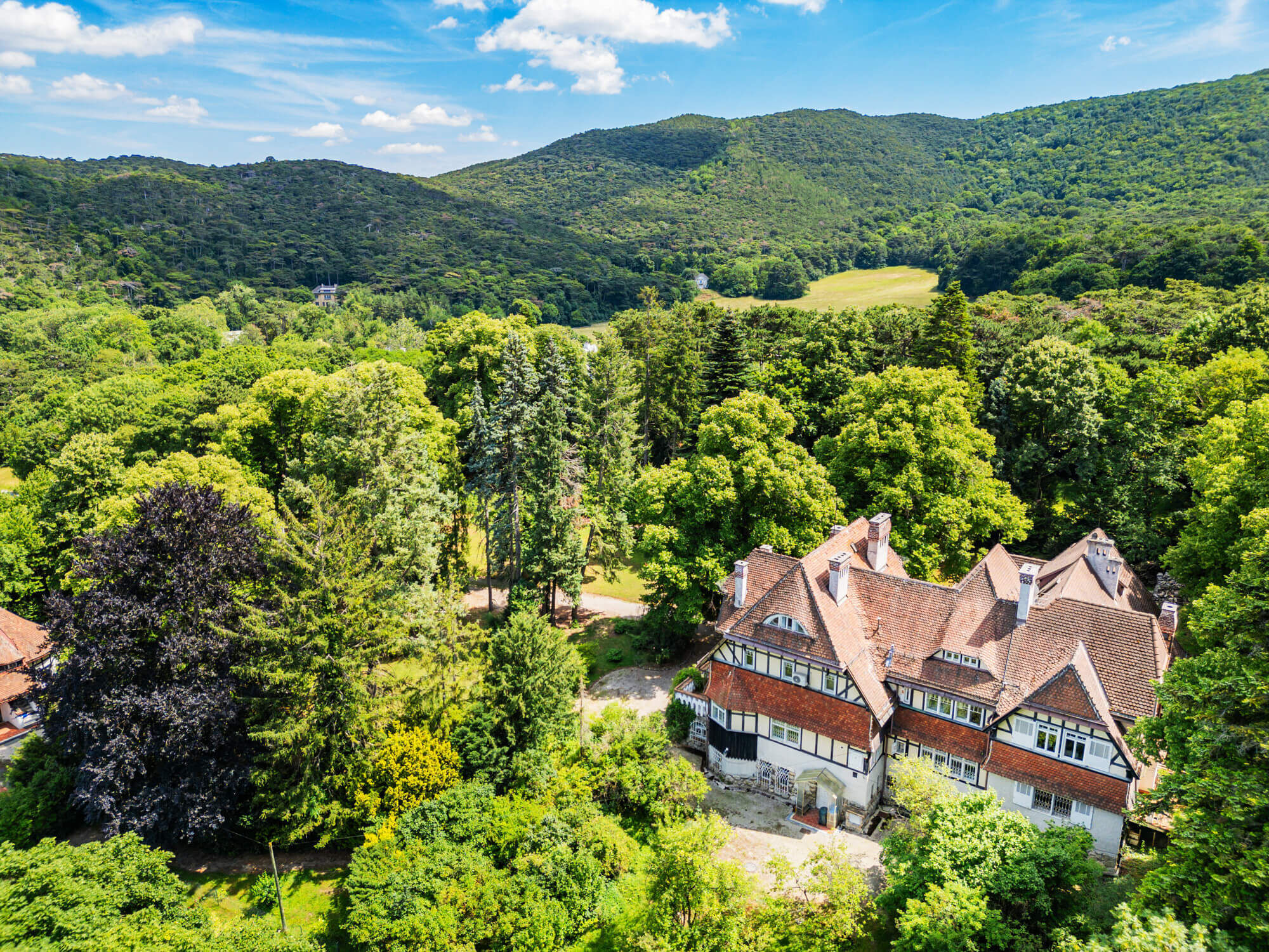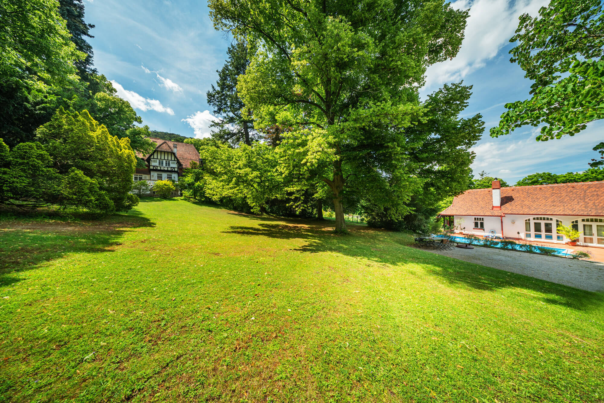 The plot of over 11,500 m² currently comprises a main house - designed by Prof. Max Baron Ferstel - and a gardener's villa with pool. The property is complemented by a separate building plot, which offers additional development potential.