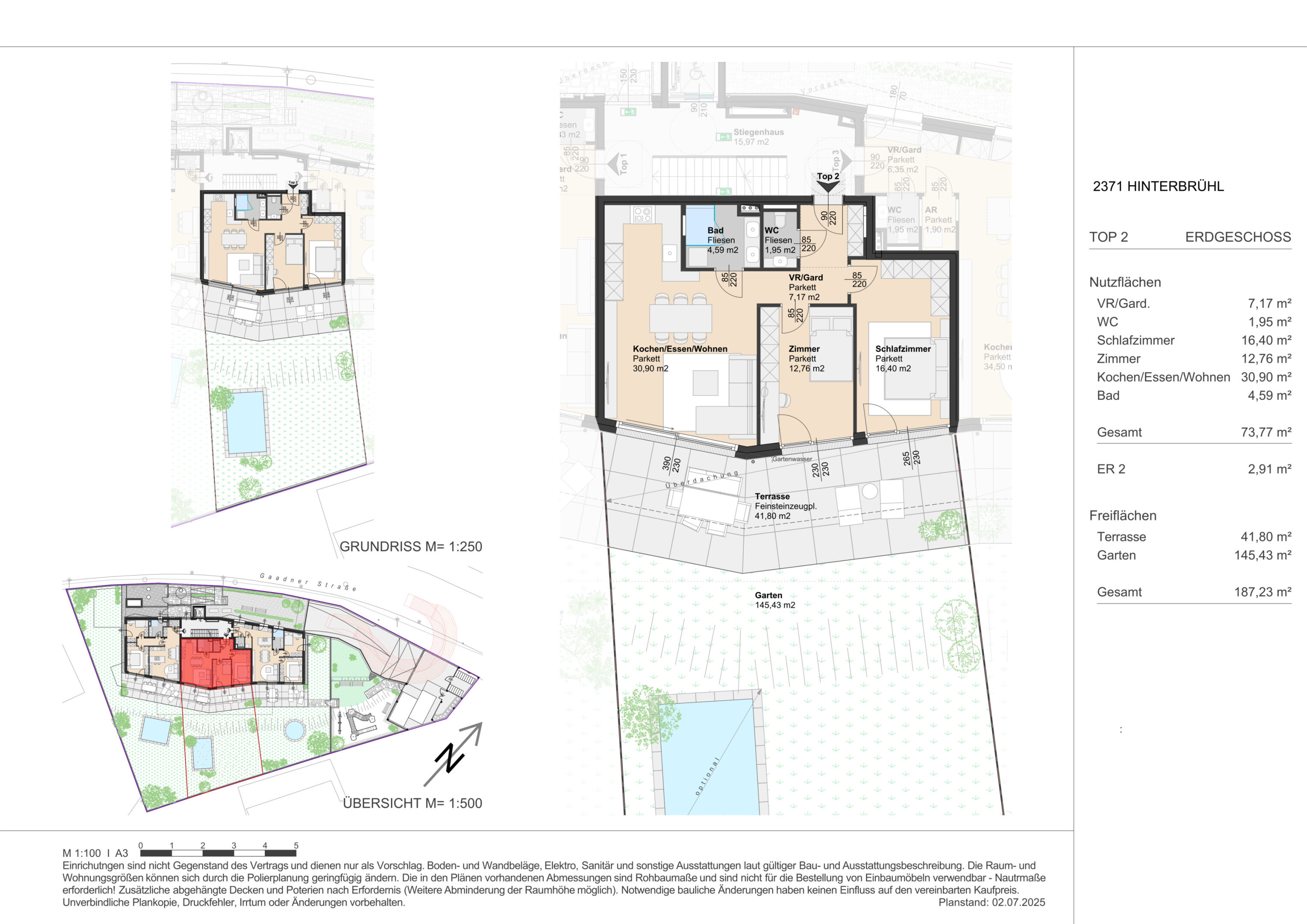 Total open space: around 187 m² of pure outdoor living. This garden flat combines the spaciousness of a home with the comfort of a modern new build - ideal for couples, families or anyone who values quality, tranquillity and plenty of outdoor space.