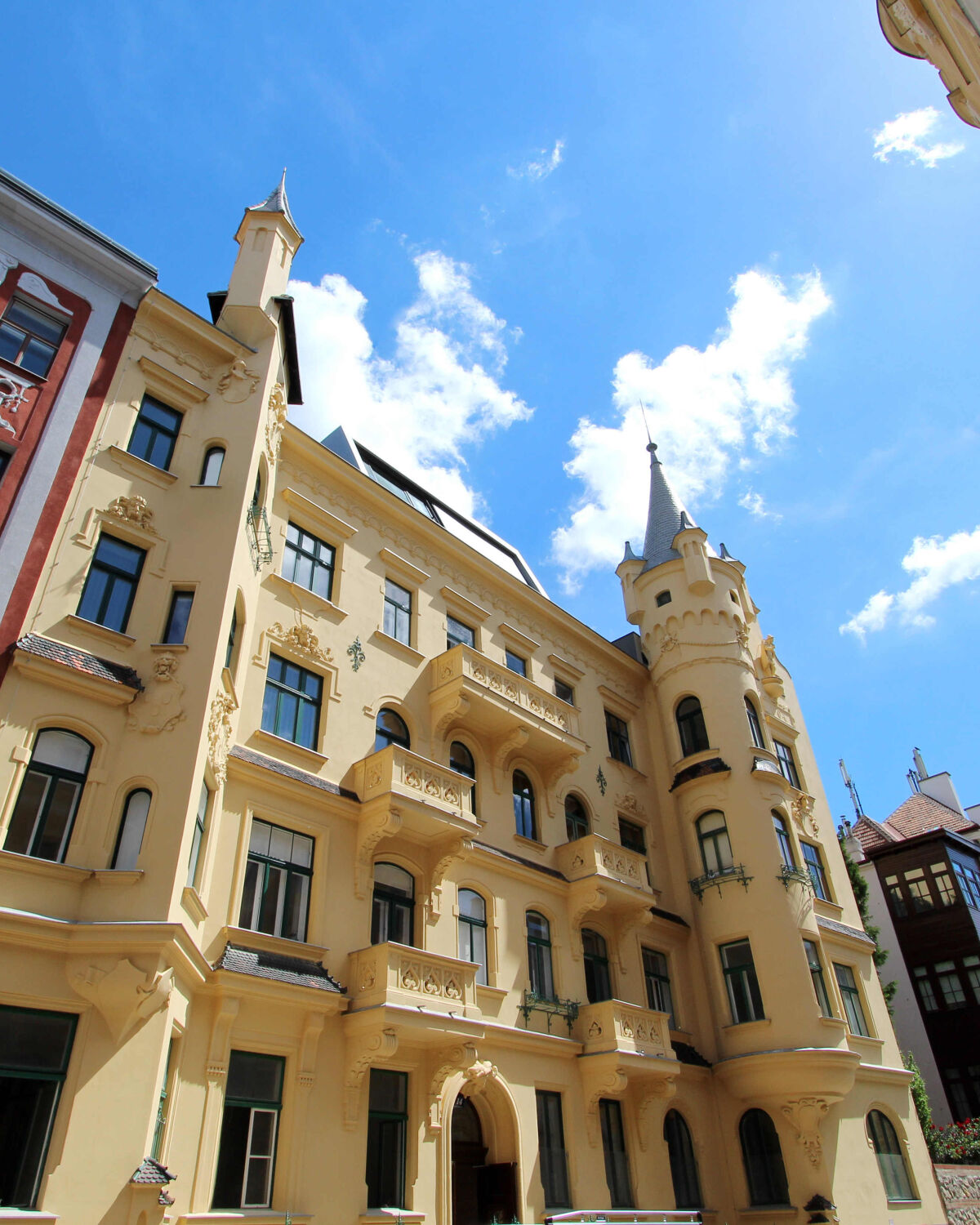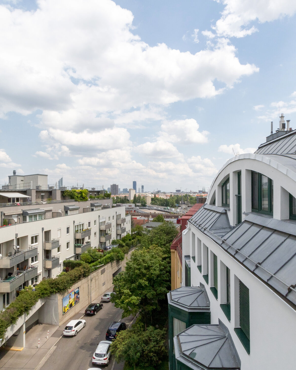 1180 ViennaThe extensively revitalised, magnificent apartment building in Hofstattgasse, 1180 Vienna, located between the observatory and Schubertpark, is reminiscent of Ludwig II's Neuschwanstein Castle from the outside. The flats on the top floor offer a dream view over Vienna from their spacious terraces. -