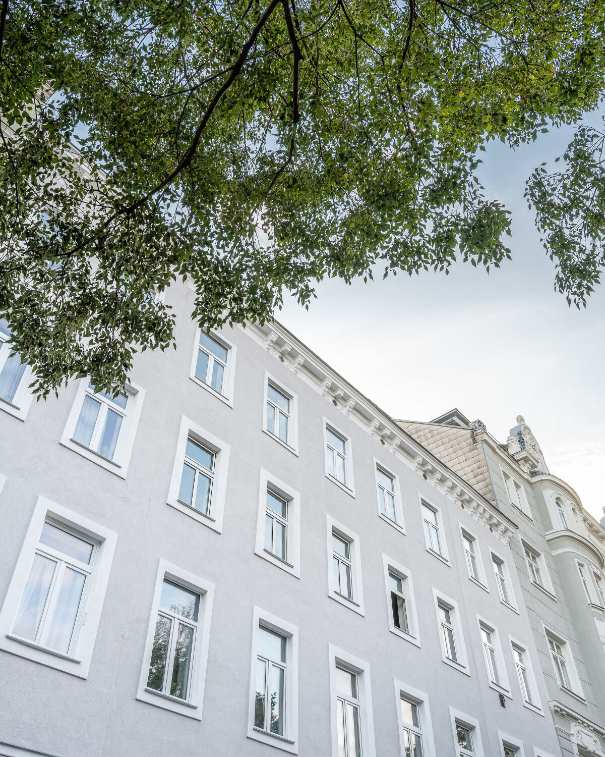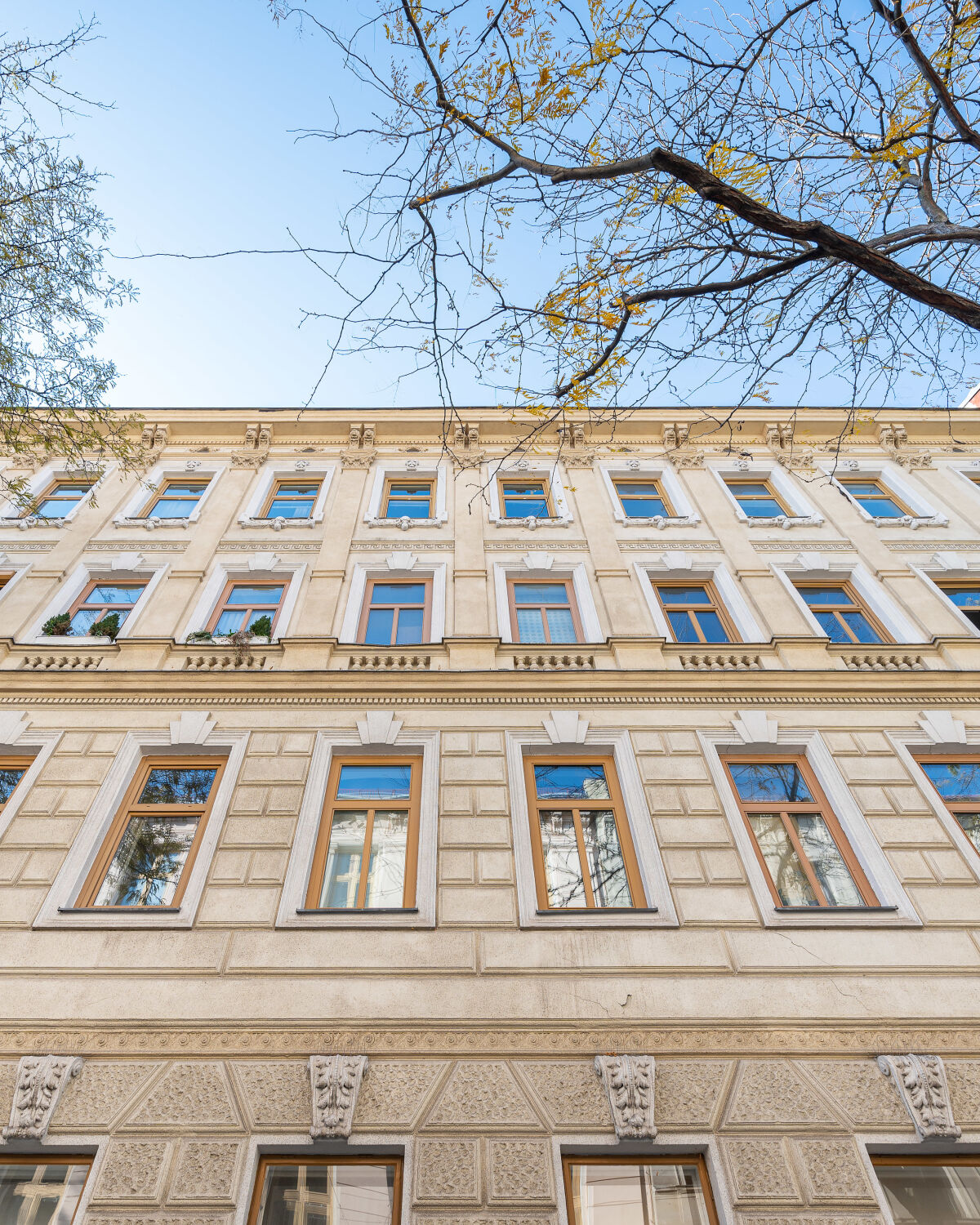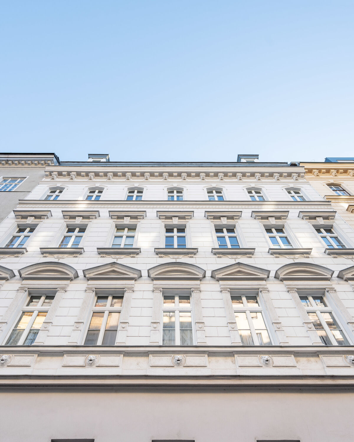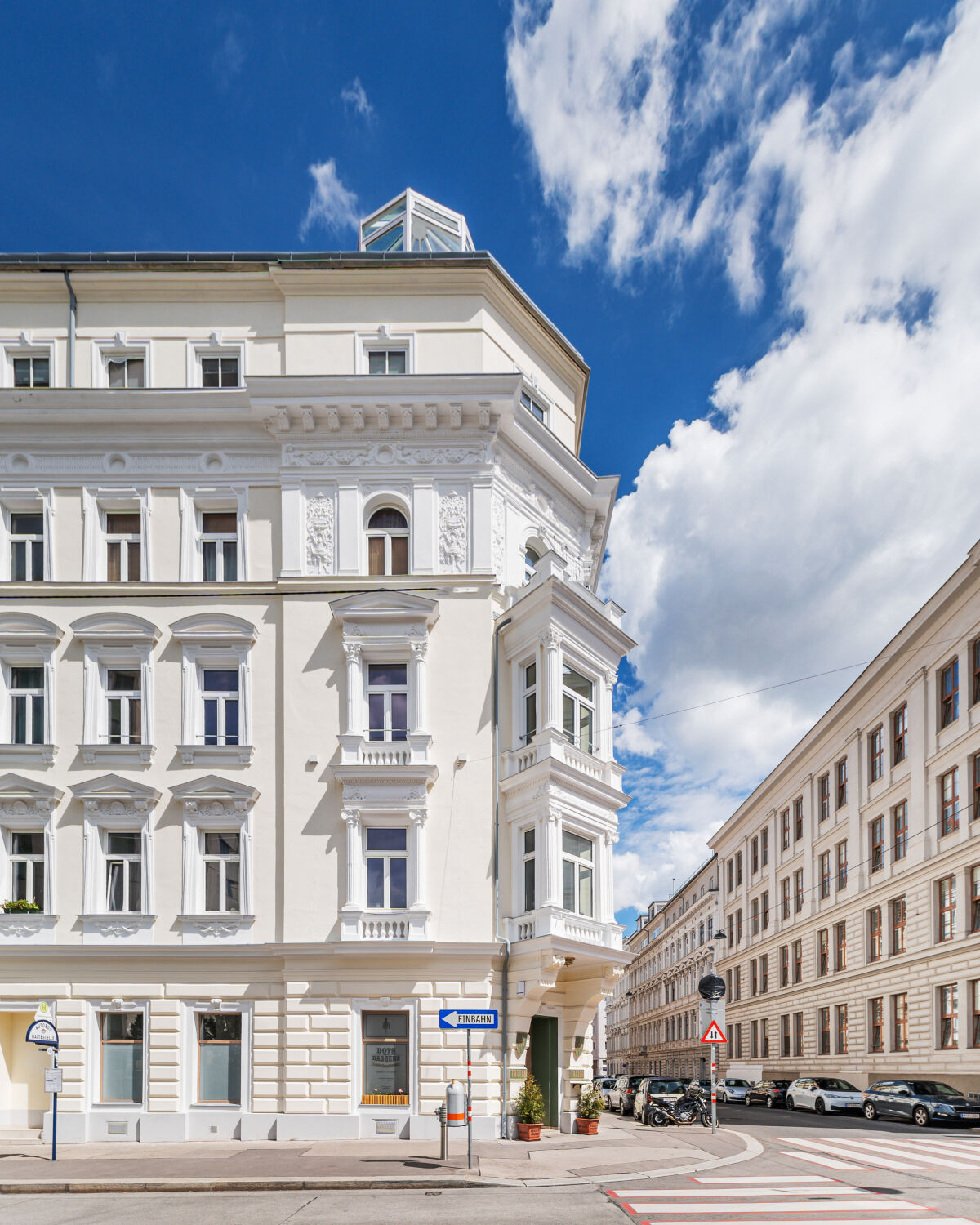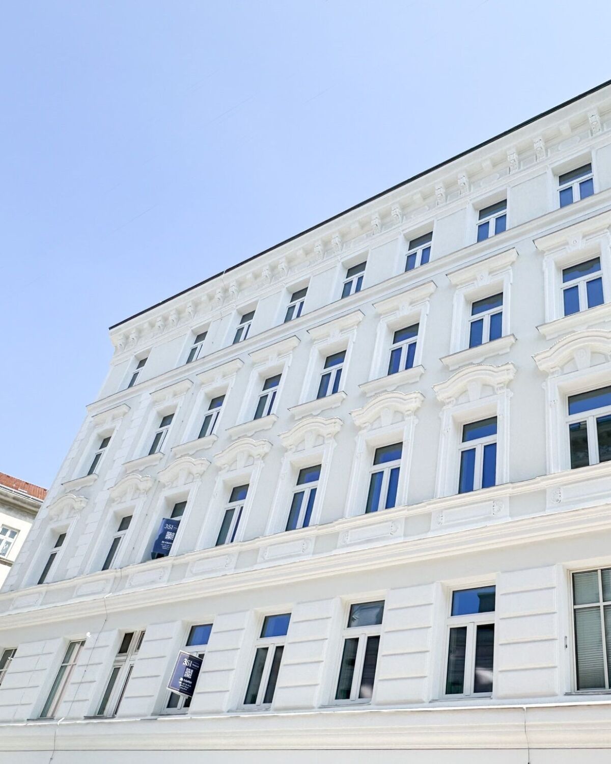 1080 ViennaThis Stilzin house at Laudongasse 32, 1080 Vienna, which was built at the turn of the century, impresses with its top location and unmistakable character of an old building. The building was completely renovated by 3SI Immogroup, a lift was installed and the attic was converted. A special feature of this apartment block is that all sides are detached, which means that all flats have a particularly high level of natural light thanks to the generous window areas. -