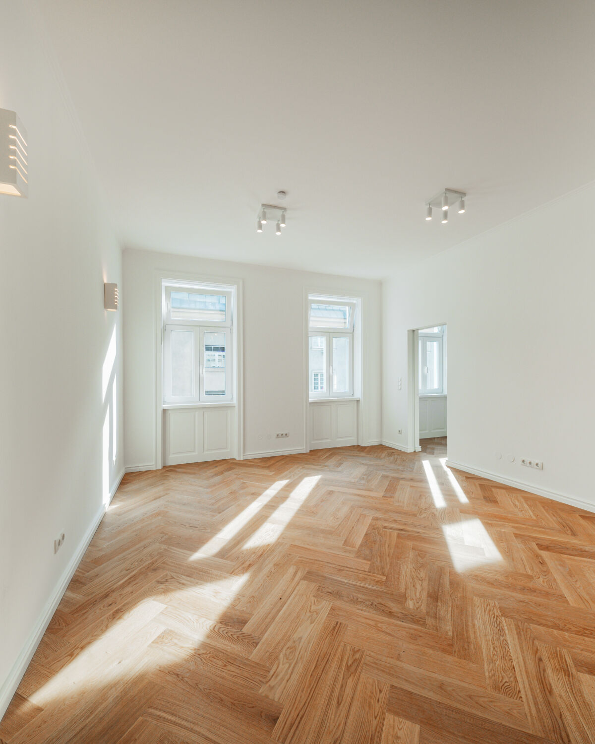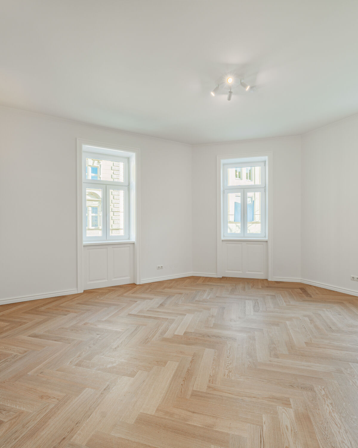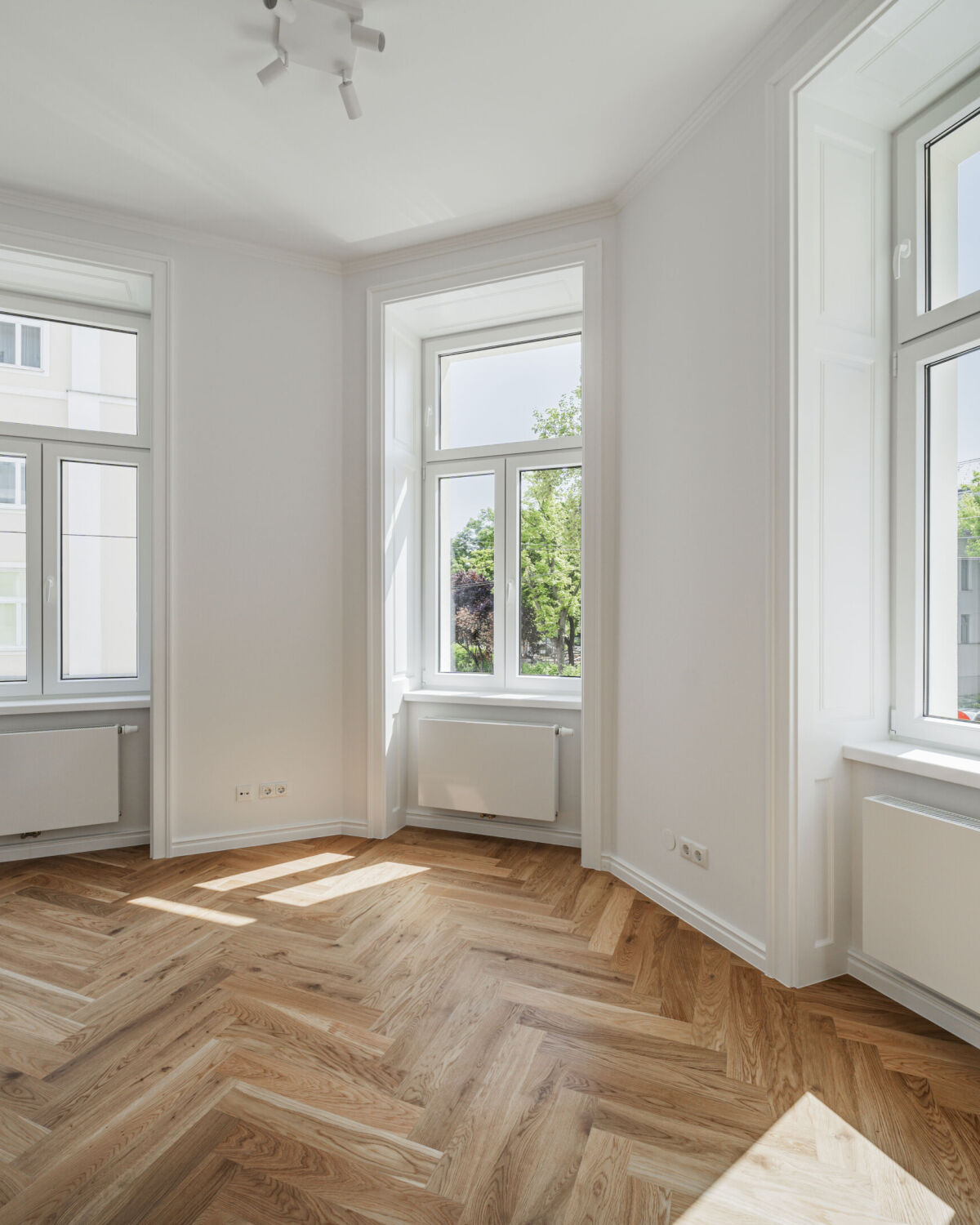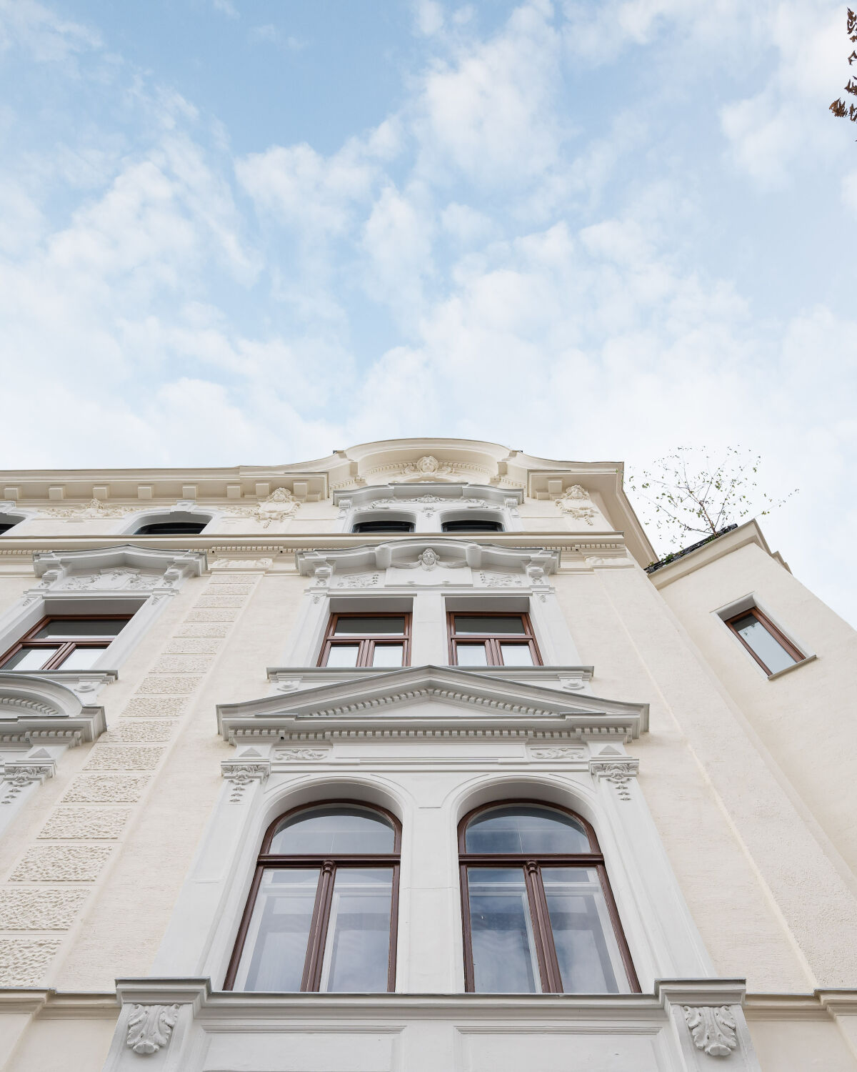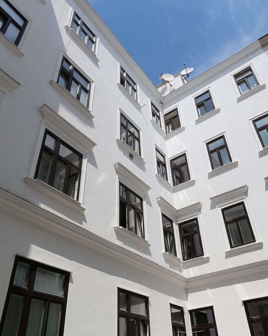 1080 ViennaThis Stilzin house at Laudongasse 32, 1080 Vienna, which was built at the turn of the century, impresses with its top location and unmistakable character of an old building. The building was completely renovated by 3SI Immogroup, a lift was installed and the attic was converted. A special feature of this apartment block is that all sides are detached, which means that all flats have a particularly high level of natural light thanks to the generous window areas. -