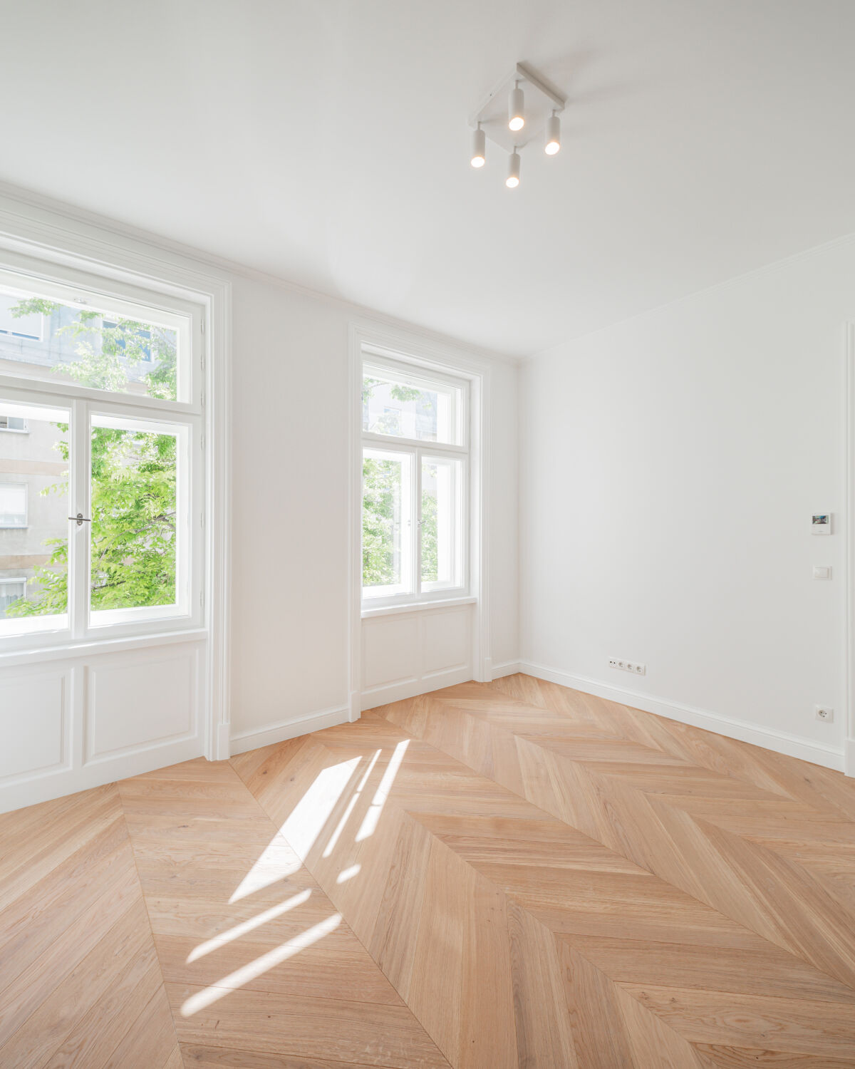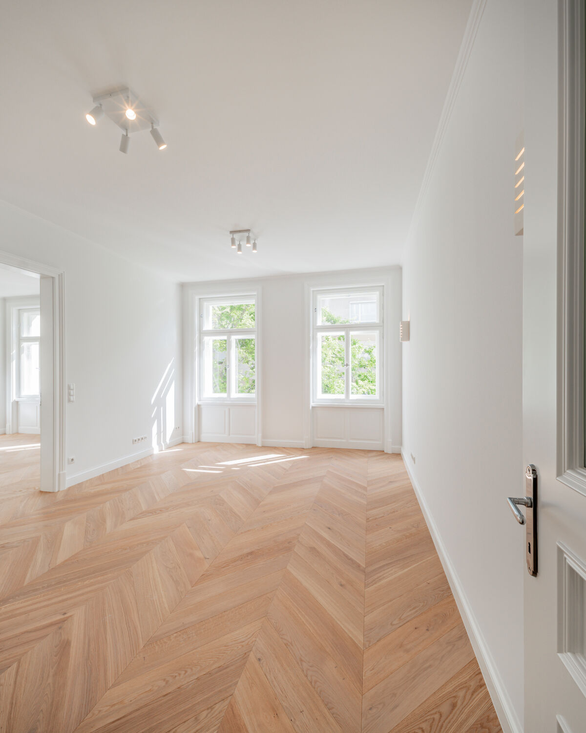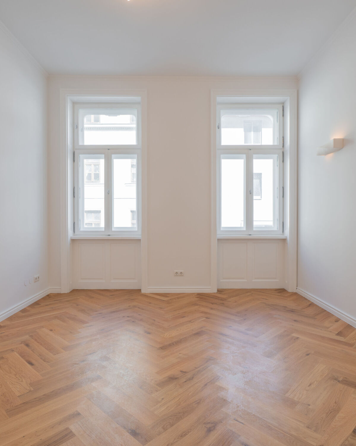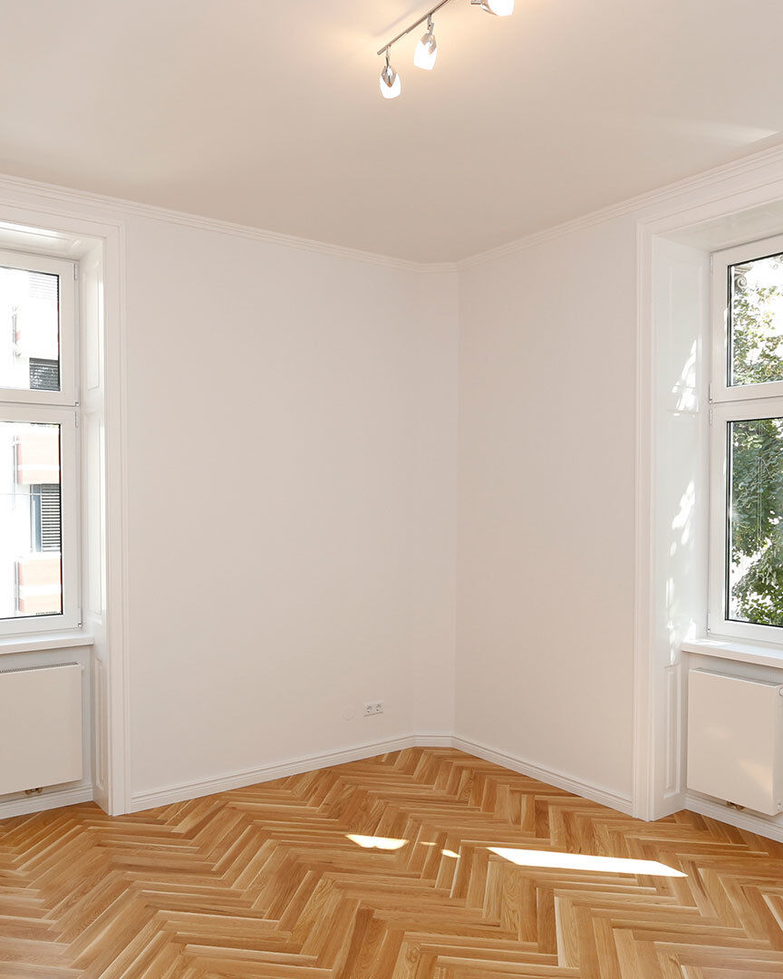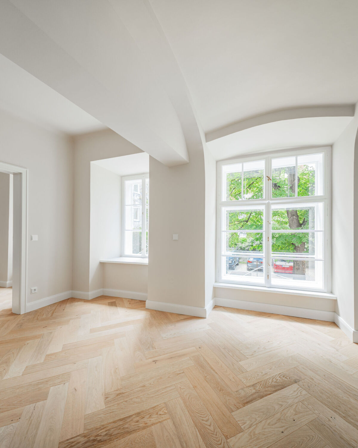 1080 ViennaThis Stilzin house at Laudongasse 32, 1080 Vienna, which was built at the turn of the century, impresses with its top location and unmistakable character of an old building. The building was completely renovated by 3SI Immogroup, a lift was installed and the attic was converted. A special feature of this apartment block is that all sides are detached, which means that all flats have a particularly high level of natural light thanks to the generous window areas. -