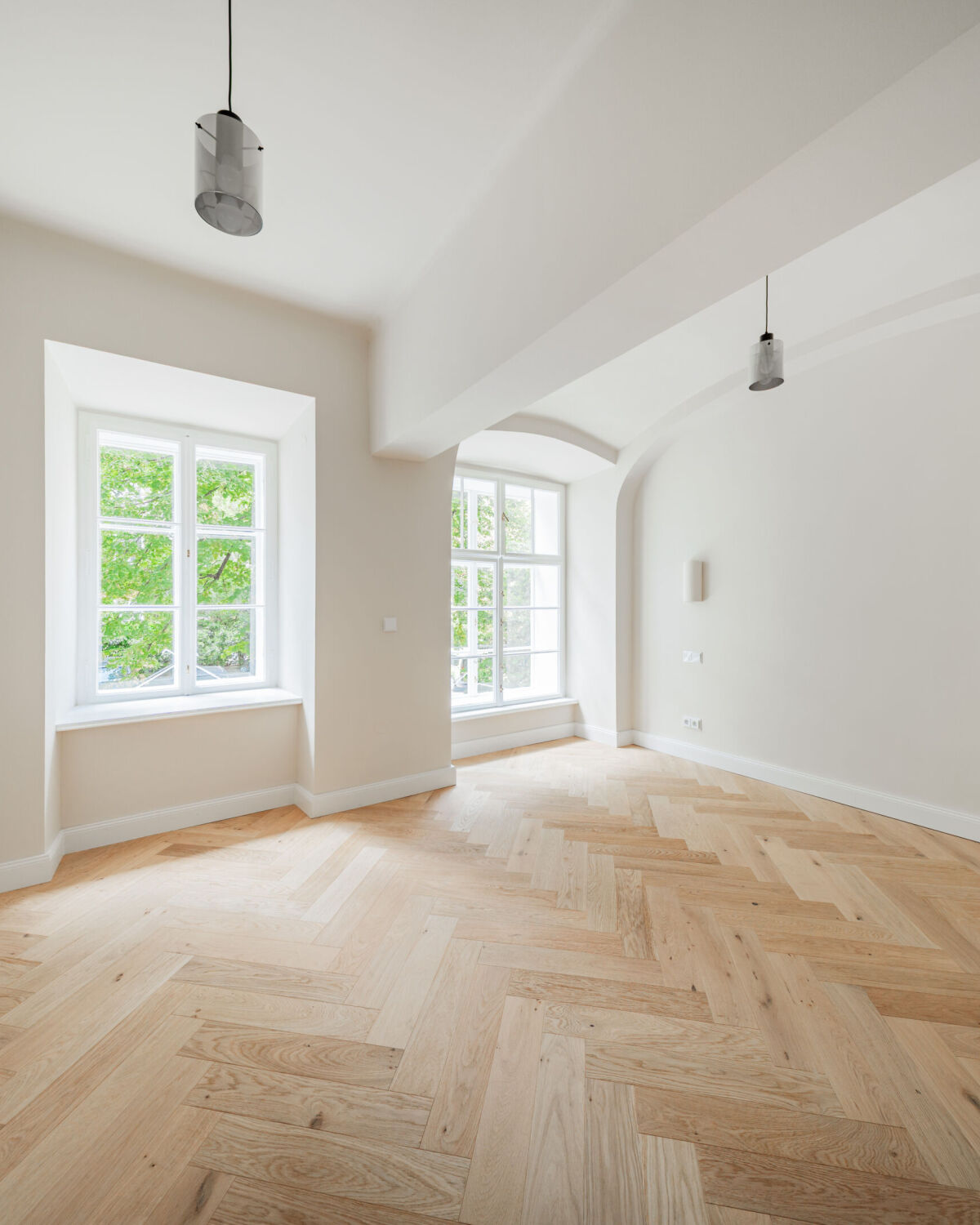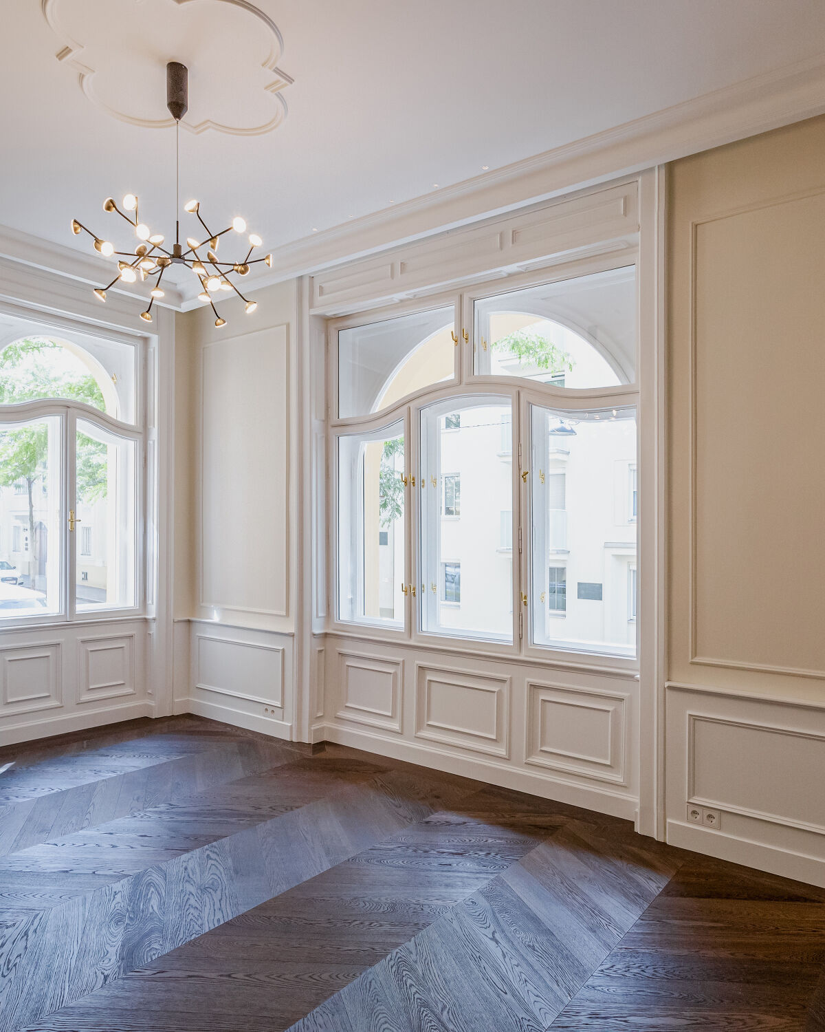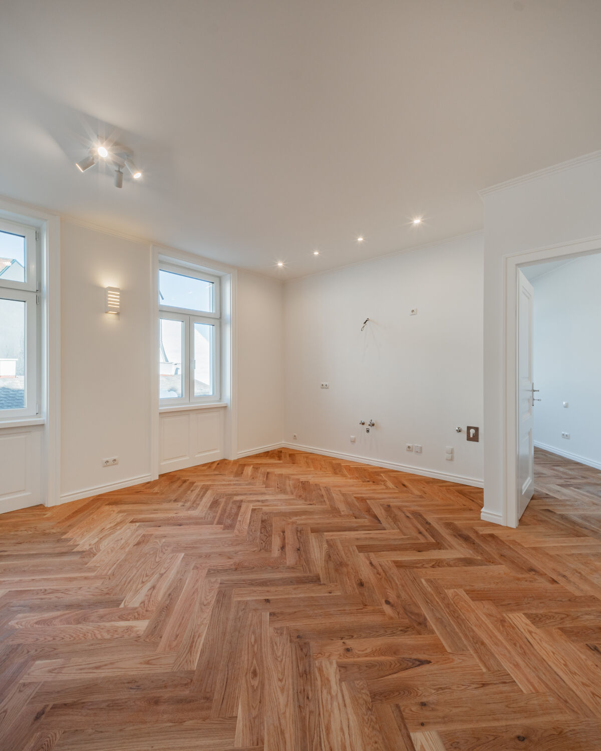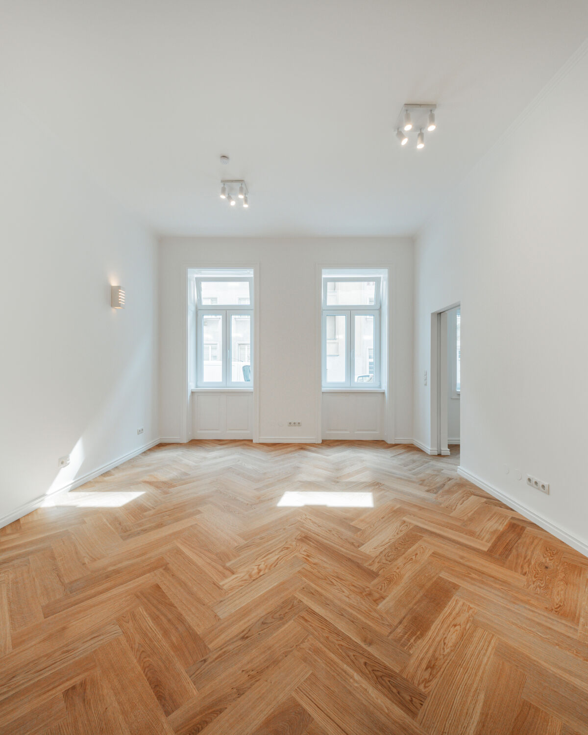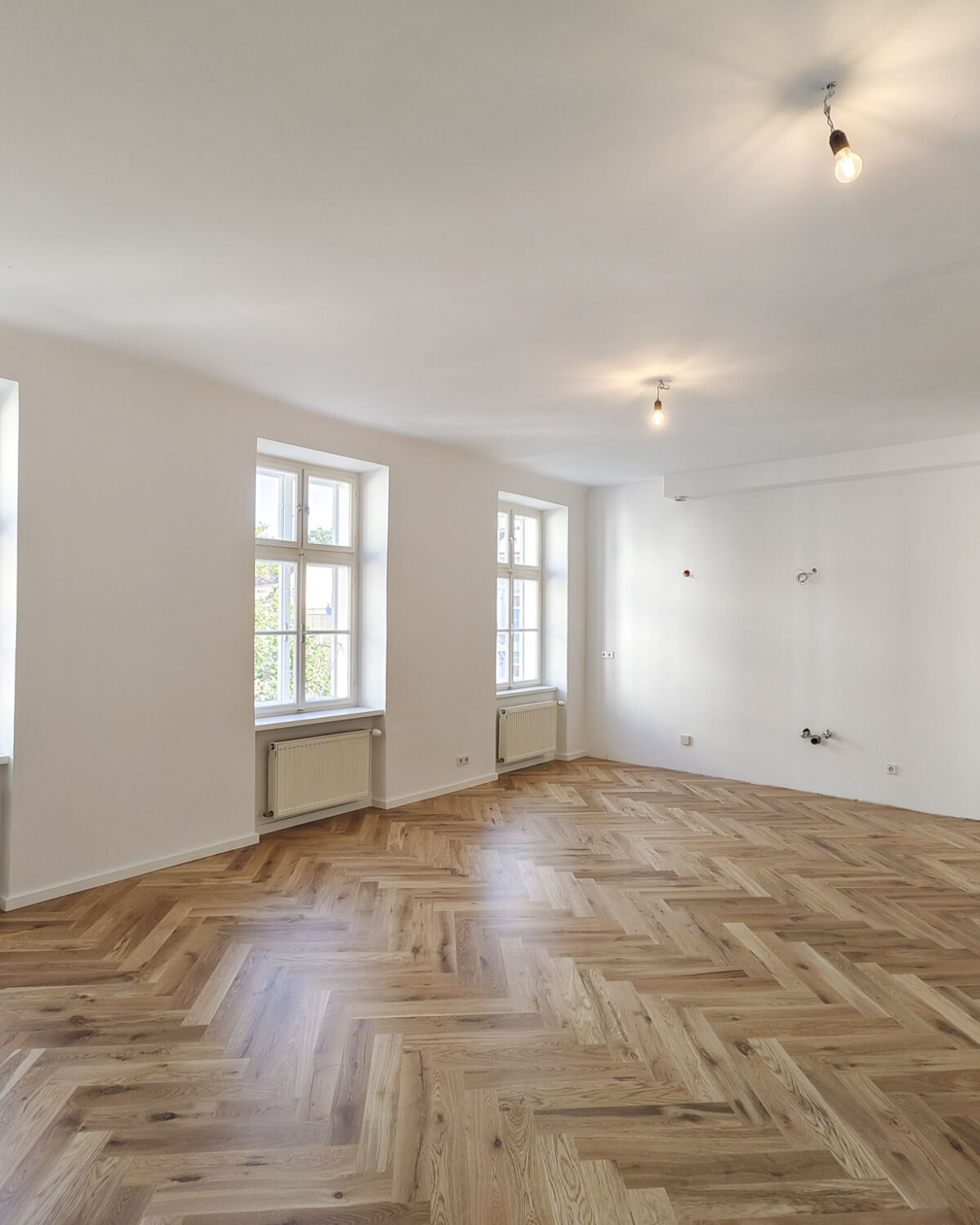 1080 ViennaThis Stilzin house at Laudongasse 32, 1080 Vienna, which was built at the turn of the century, impresses with its top location and unmistakable character of an old building. The building was completely renovated by 3SI Immogroup, a lift was installed and the attic was converted. A special feature of this apartment block is that all sides are detached, which means that all flats have a particularly high level of natural light thanks to the generous window areas. -