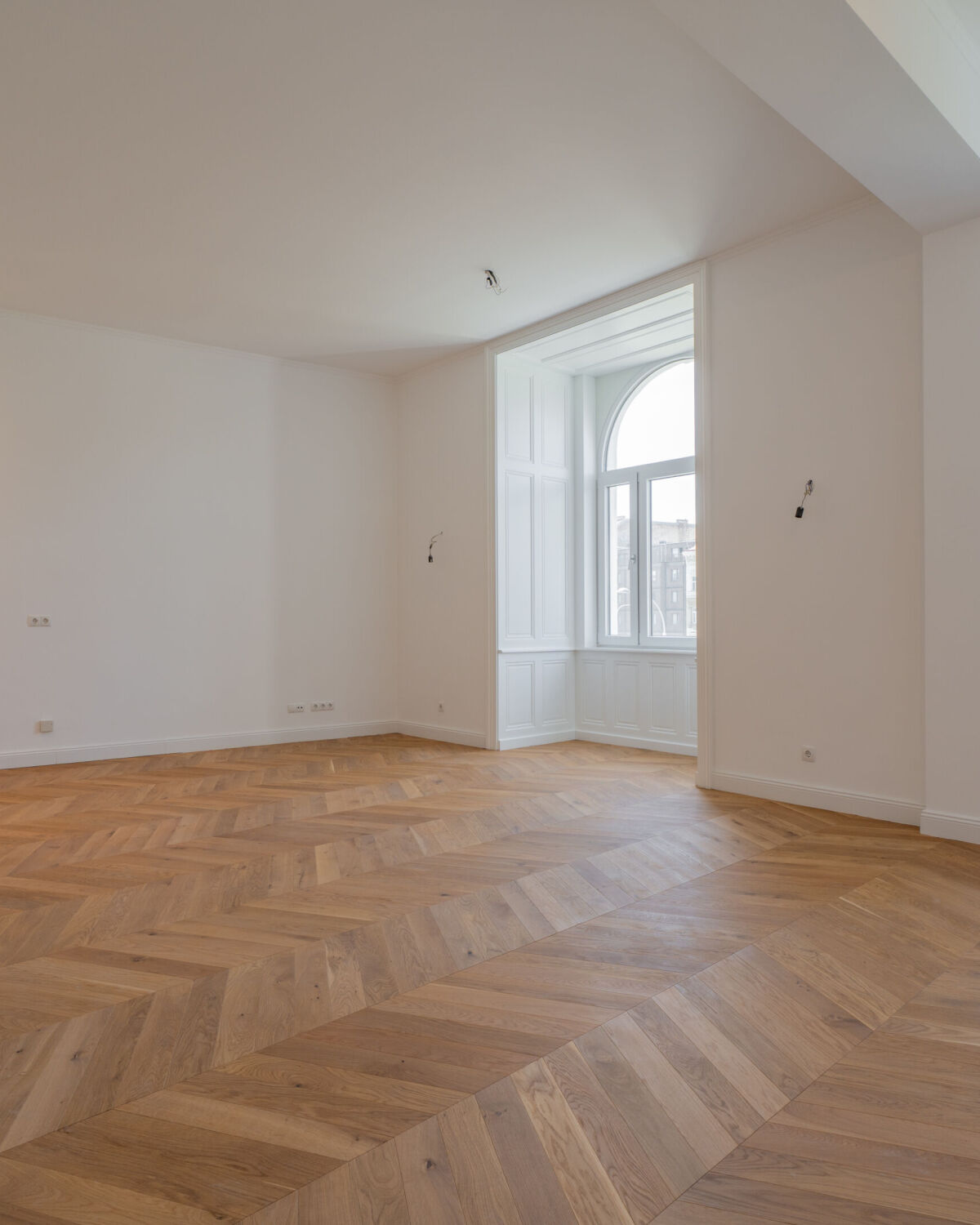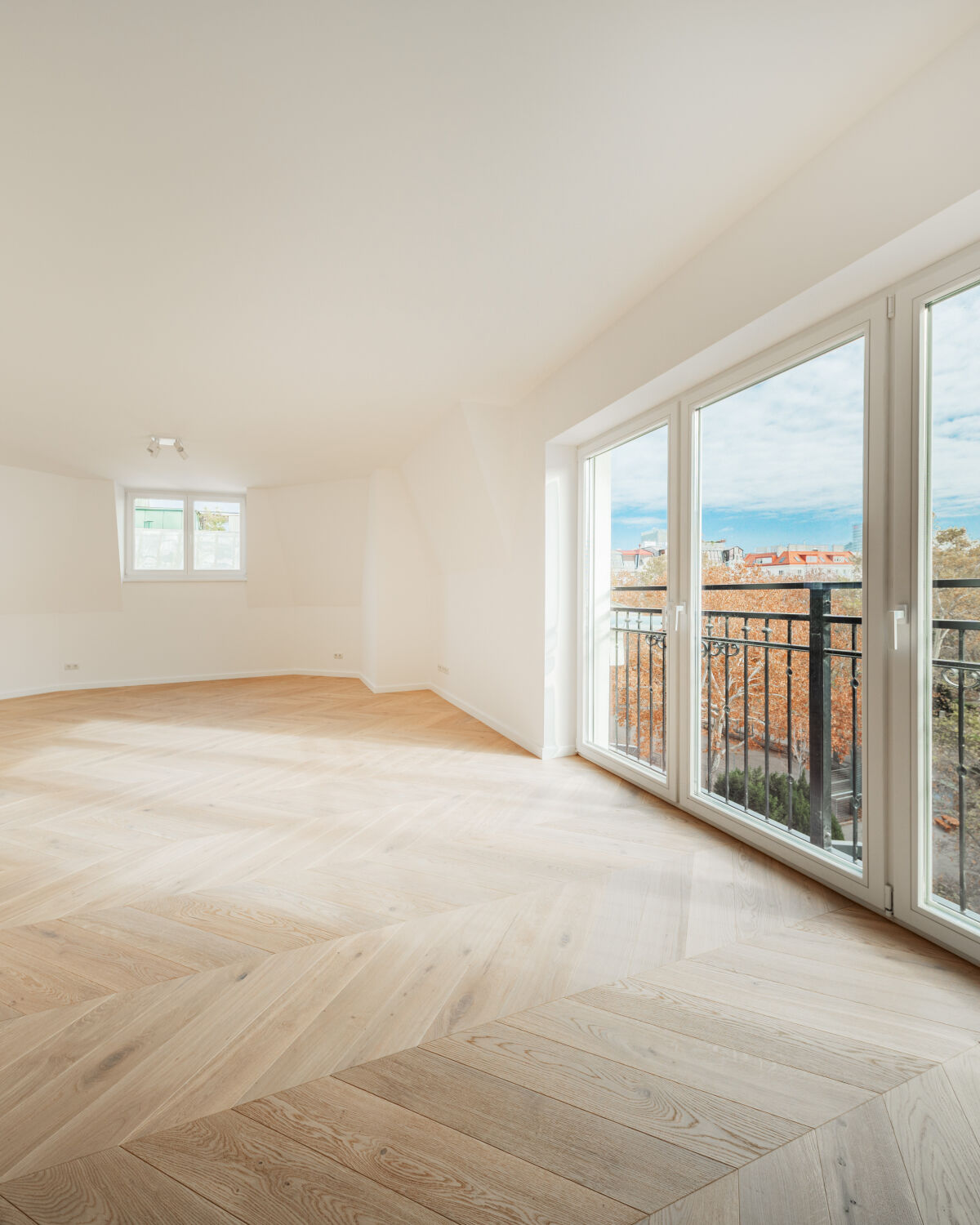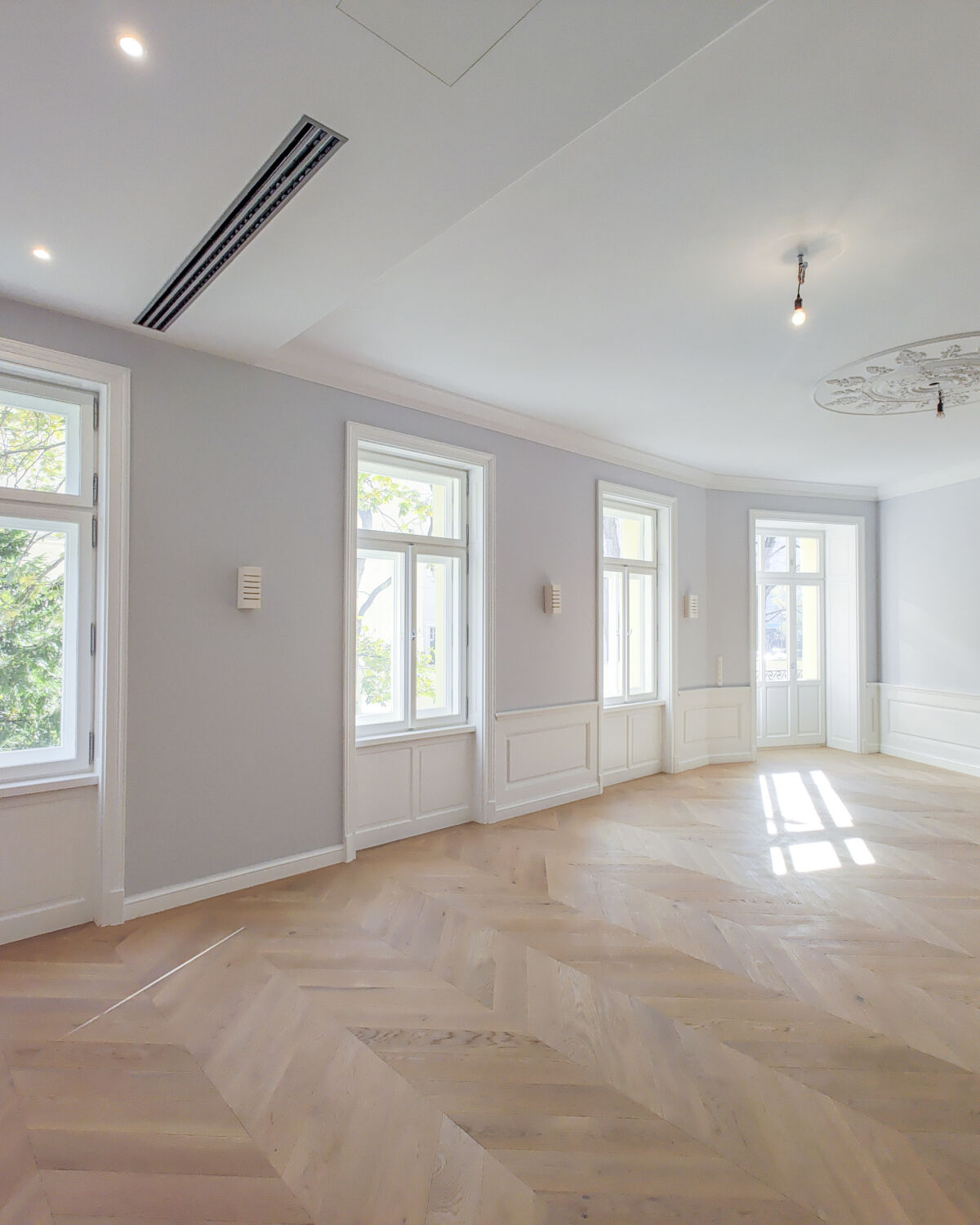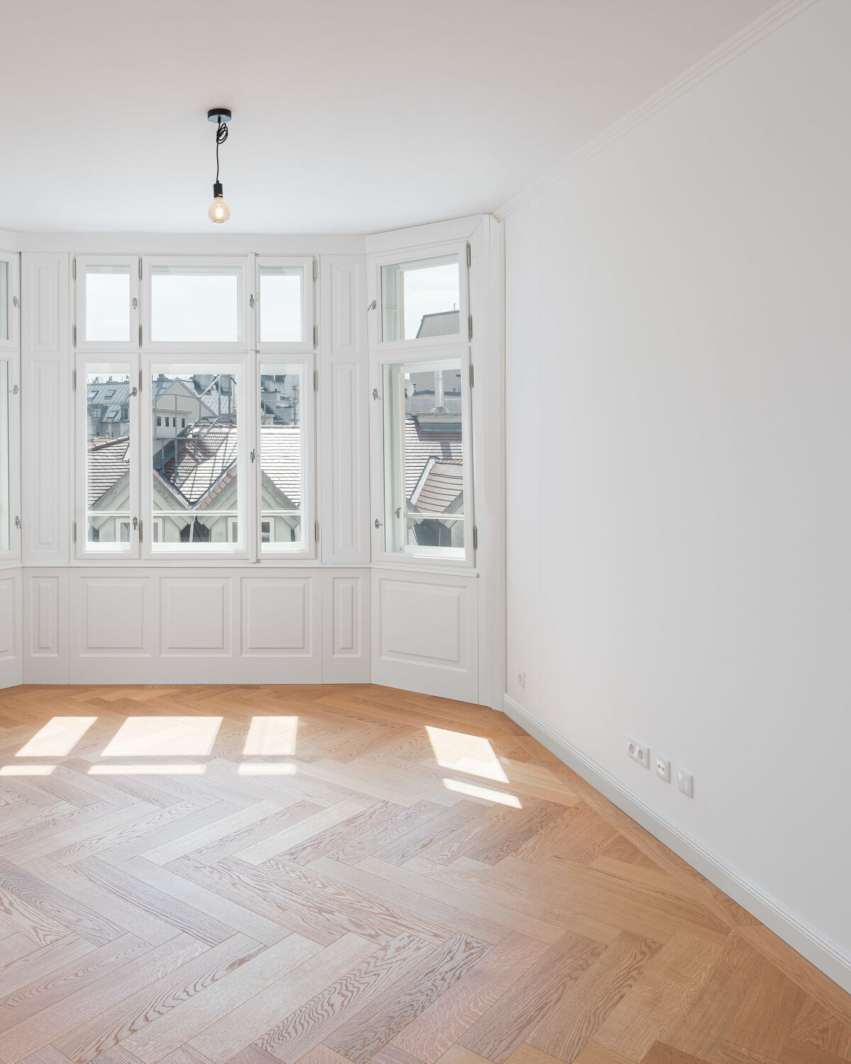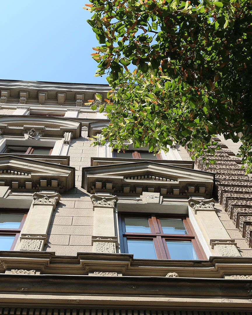 1080 ViennaThis Stilzin house at Laudongasse 32, 1080 Vienna, which was built at the turn of the century, impresses with its top location and unmistakable character of an old building. The building was completely renovated by 3SI Immogroup, a lift was installed and the attic was converted. A special feature of this apartment block is that all sides are detached, which means that all flats have a particularly high level of natural light thanks to the generous window areas. -