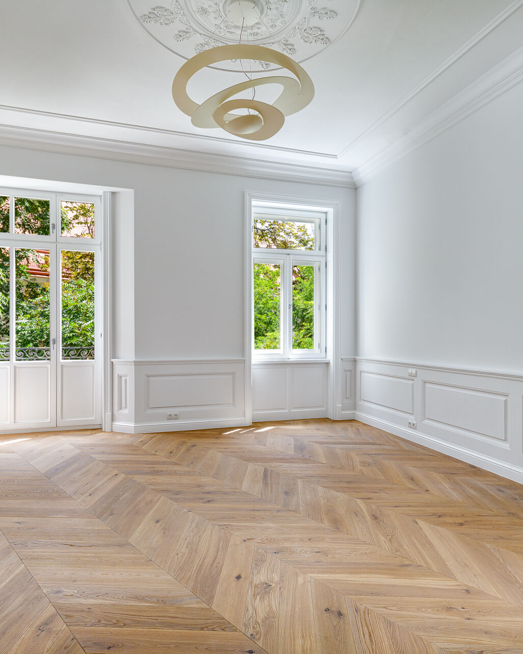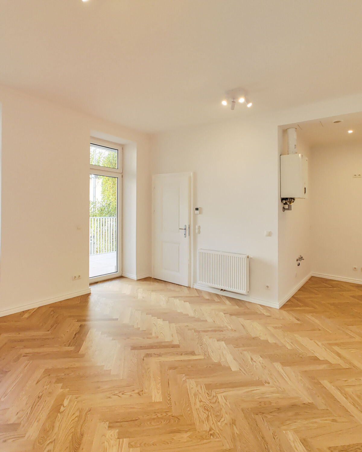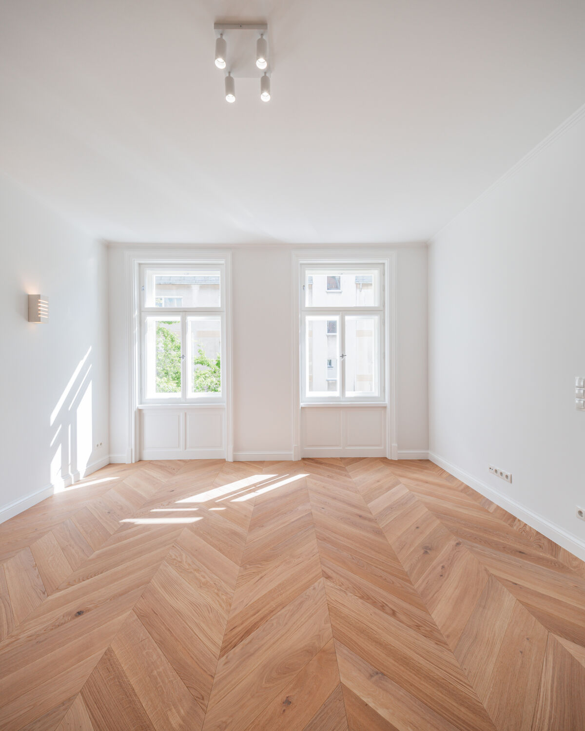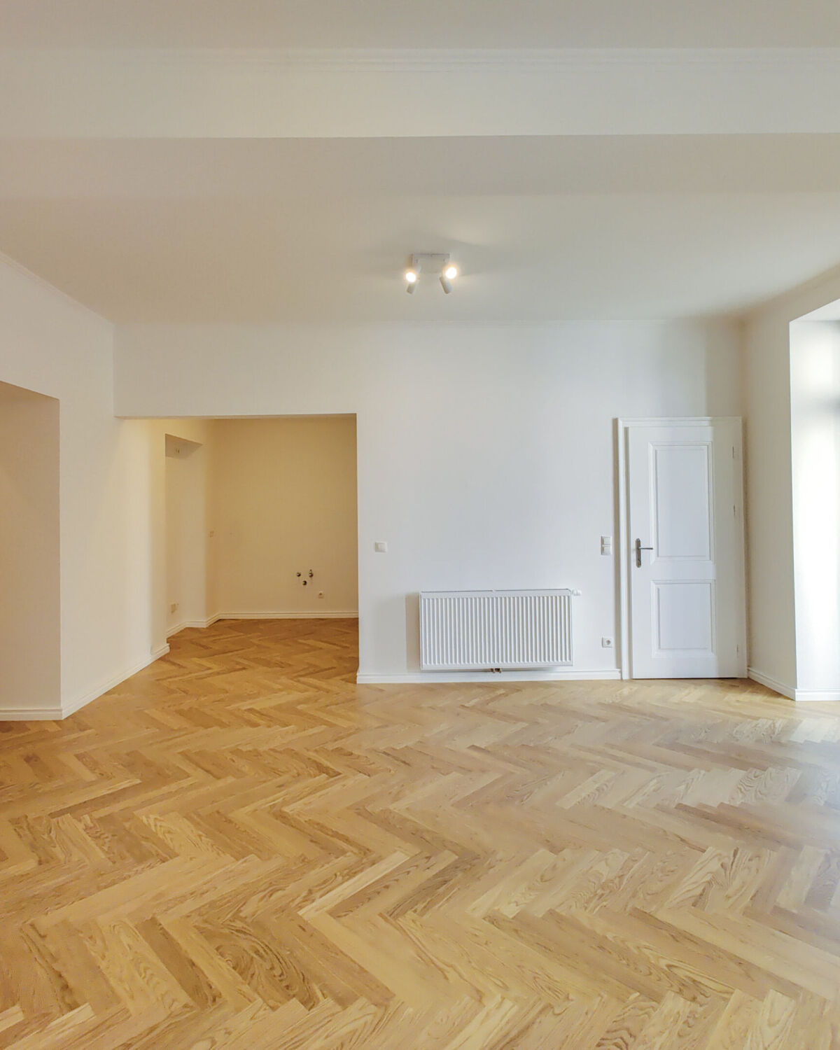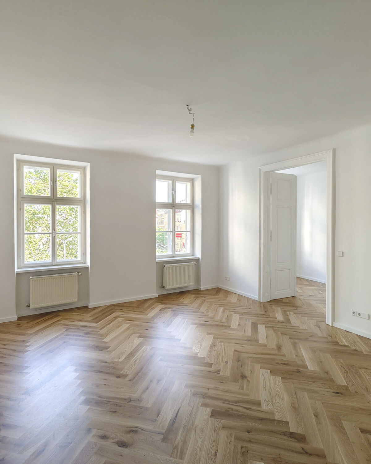 1080 ViennaThis Stilzin house at Laudongasse 32, 1080 Vienna, which was built at the turn of the century, impresses with its top location and unmistakable character of an old building. The building was completely renovated by 3SI Immogroup, a lift was installed and the attic was converted. A special feature of this apartment block is that all sides are detached, which means that all flats have a particularly high level of natural light thanks to the generous window areas. -