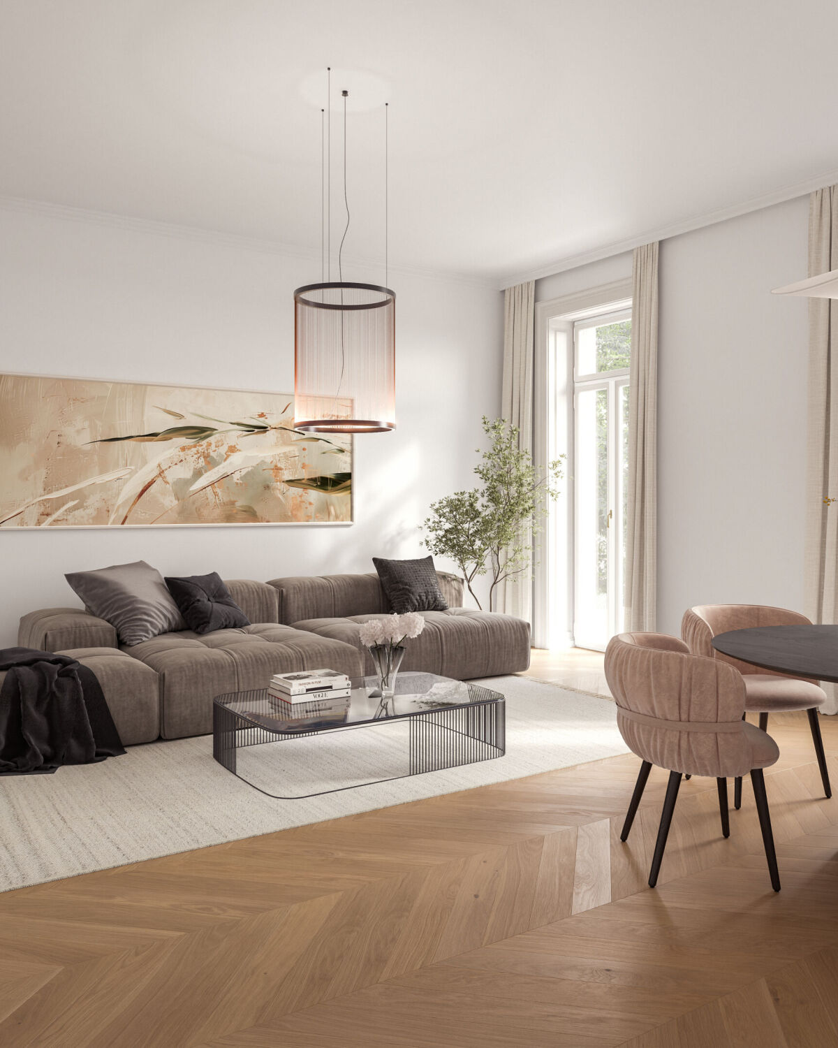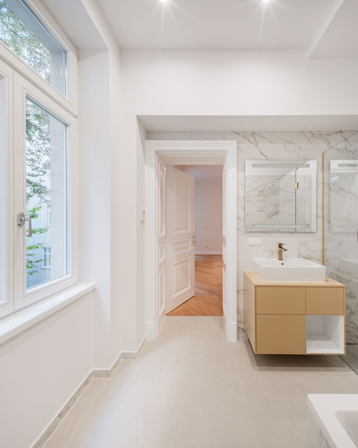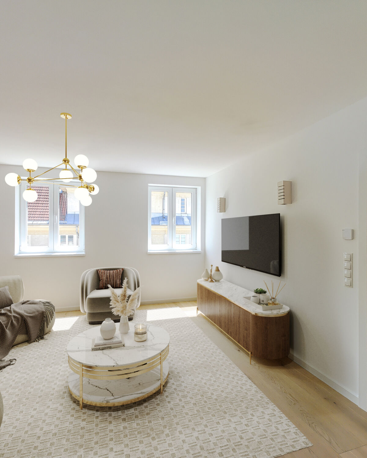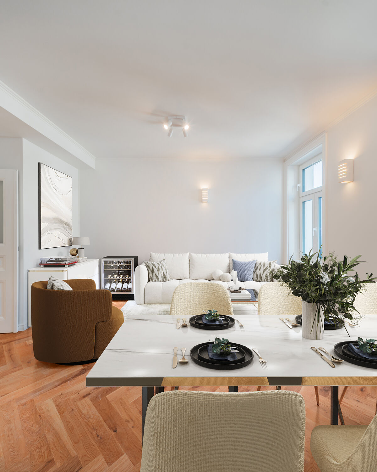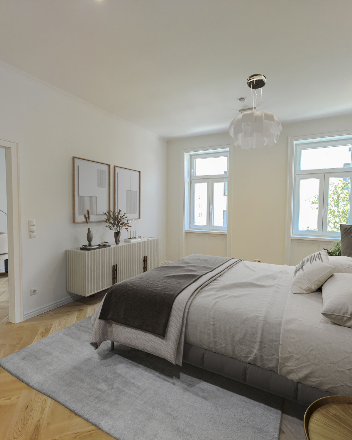1080 ViennaThis Stilzin house at Laudongasse 32, 1080 Vienna, which was built at the turn of the century, impresses with its top location and unmistakable character of an old building. The building was completely renovated by 3SI Immogroup, a lift was installed and the attic was converted. A special feature of this apartment block is that all sides are detached, which means that all flats have a particularly high level of natural light thanks to the generous window areas. -