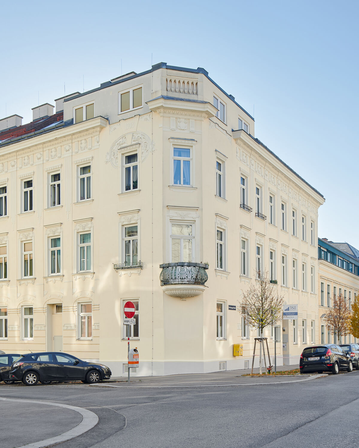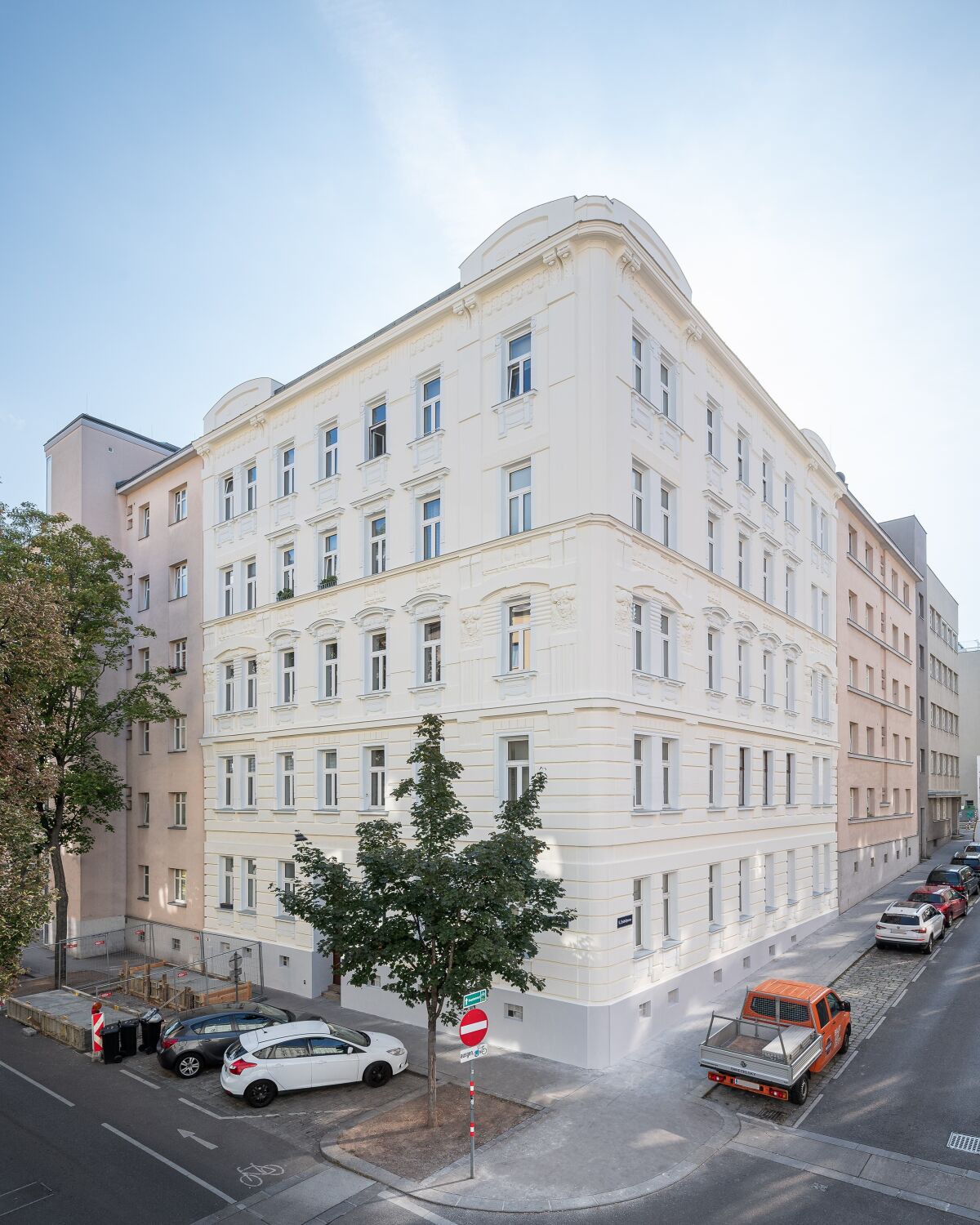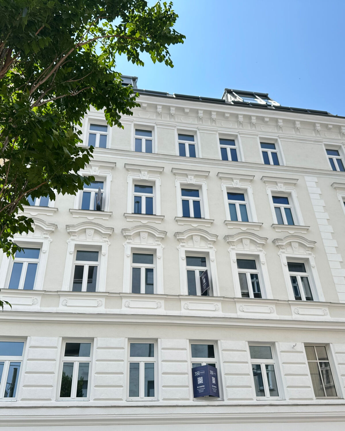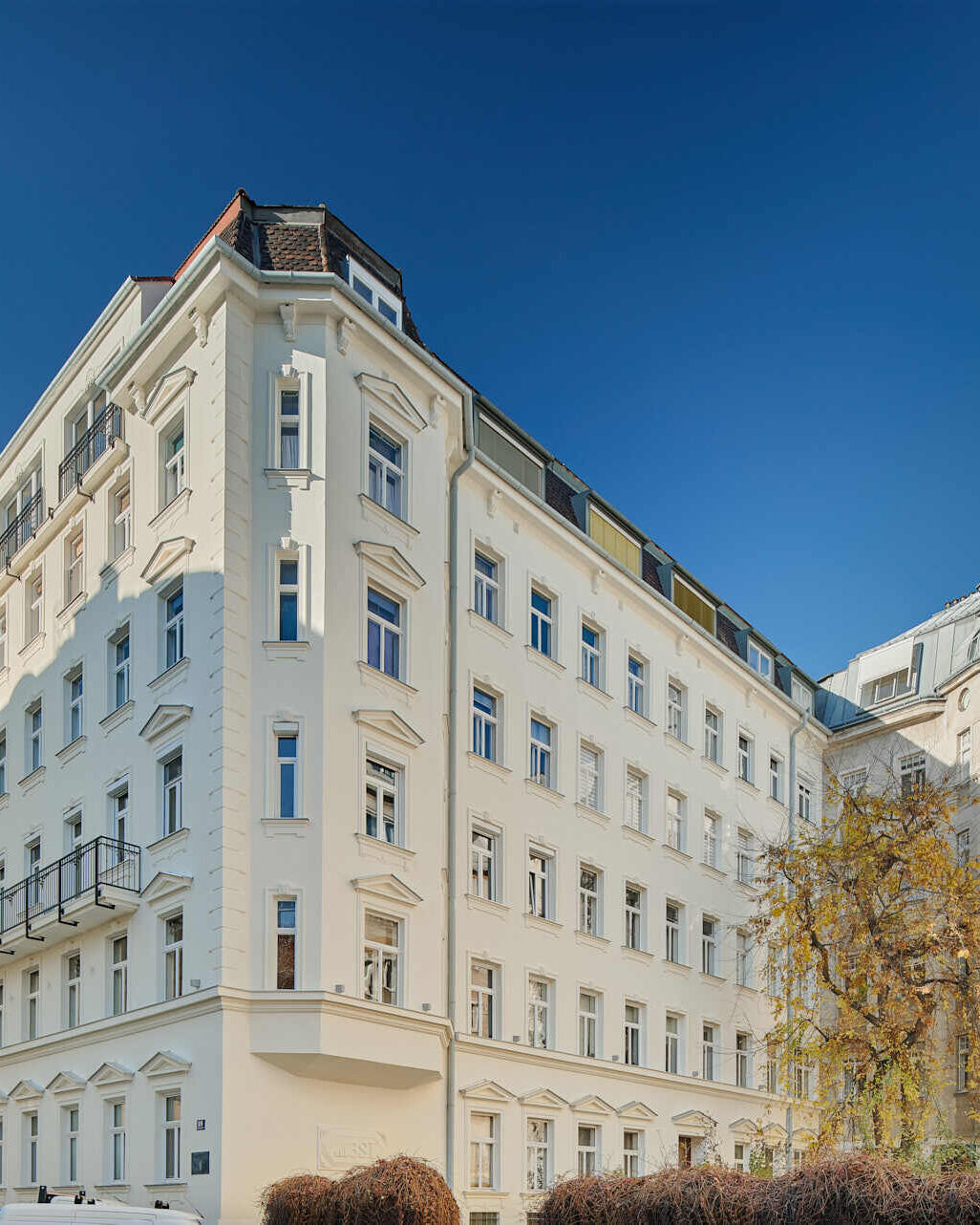 1170 ViennaNumber of apartments in total: 10Acquired at the beginning of 2021, the apartment block at Hernalser Hauptstraße 49/Bergsteiggasse 26A, 1170 Vienna was extensively refurbished by 3SI Immogroup in the spring of the same year. In addition to revitalising the common areas, the previously unadorned exterior façade on the right-hand side of the corner apartment building was given a handcrafted stucco finish. The freehold flats - including top-floor flats with attractive open spaces - are now being sold. -