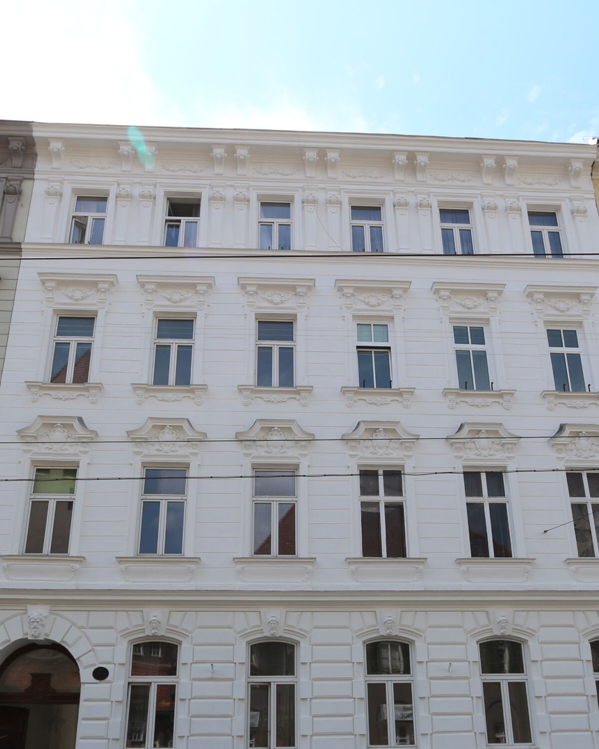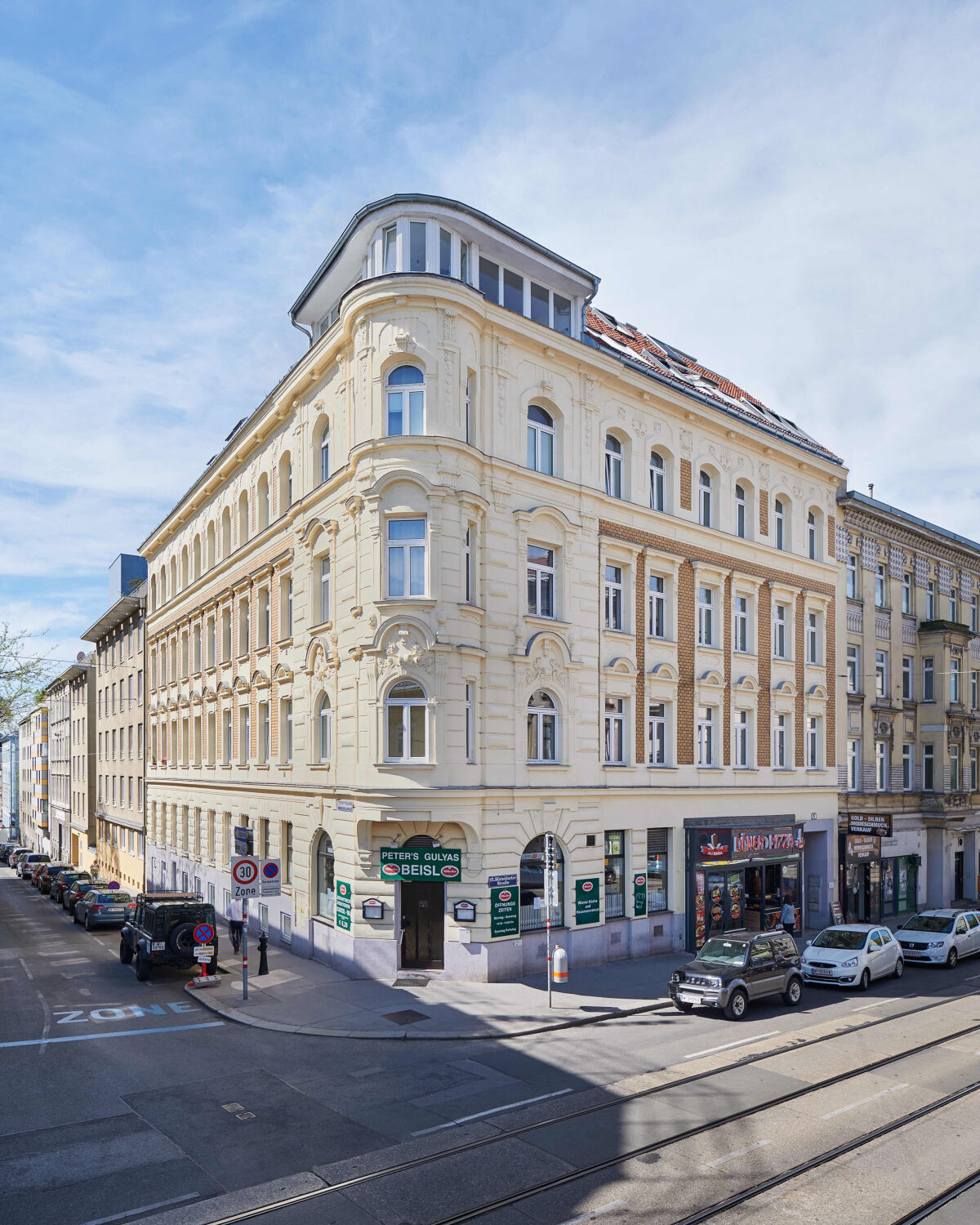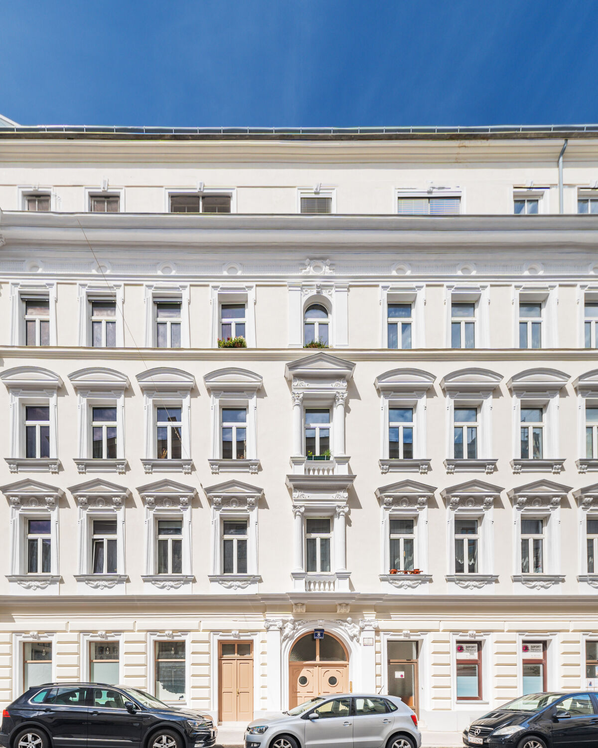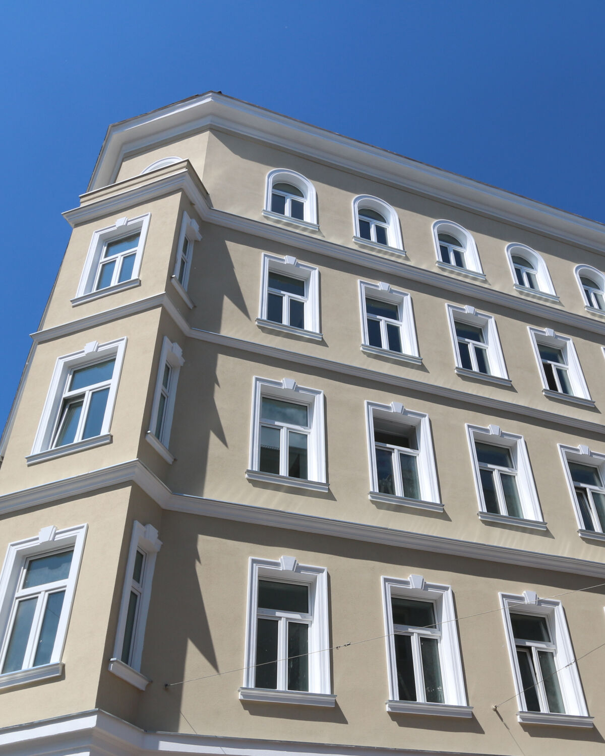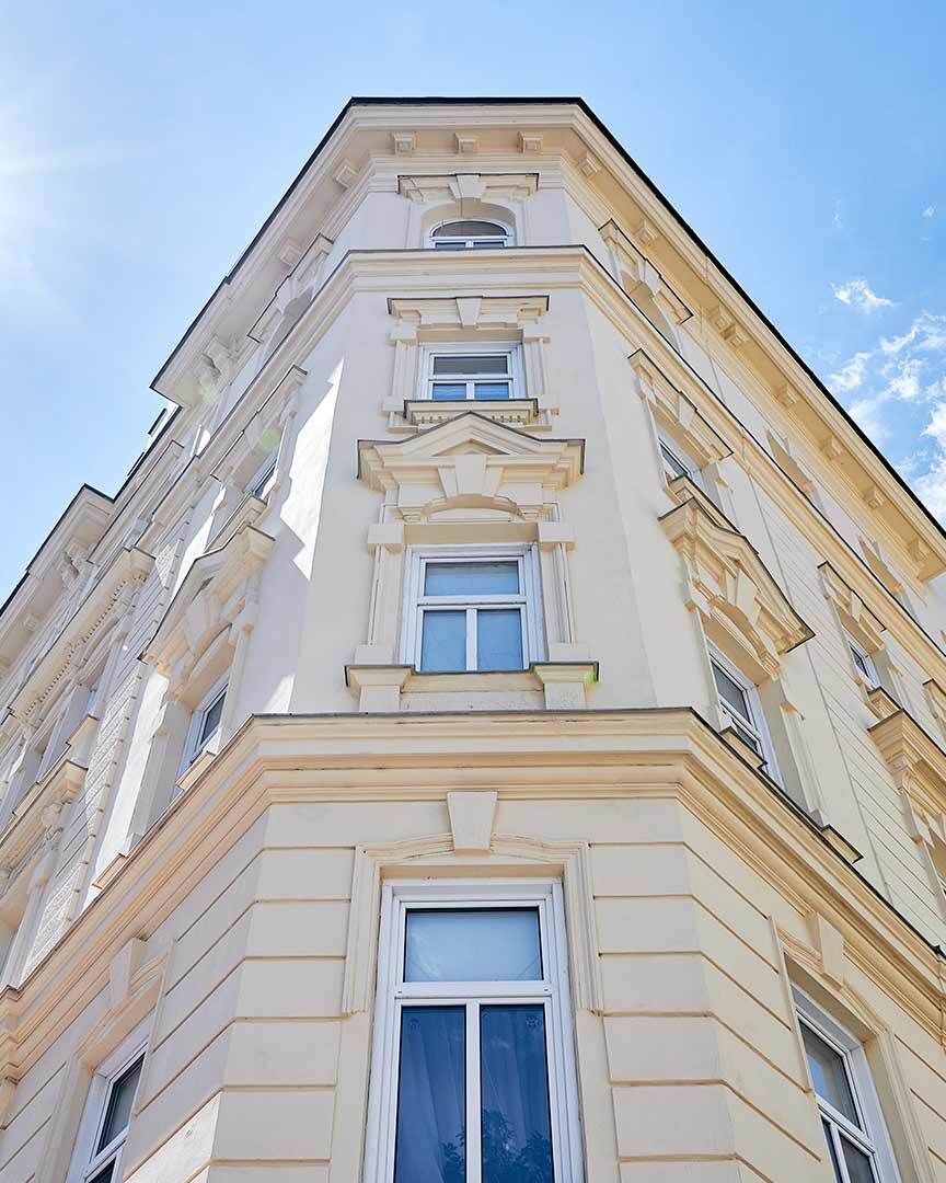 1170 ViennaNumber of apartments in total: 10Acquired at the beginning of 2021, the apartment block at Hernalser Hauptstraße 49/Bergsteiggasse 26A, 1170 Vienna was extensively refurbished by 3SI Immogroup in the spring of the same year. In addition to revitalising the common areas, the previously unadorned exterior façade on the right-hand side of the corner apartment building was given a handcrafted stucco finish. The freehold flats - including top-floor flats with attractive open spaces - are now being sold. -