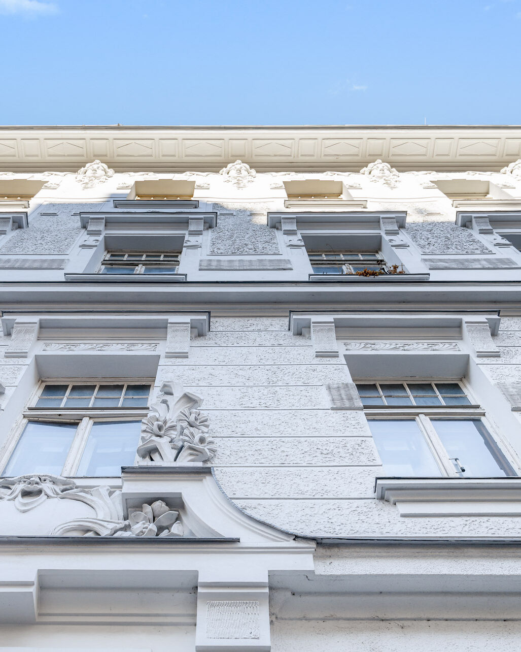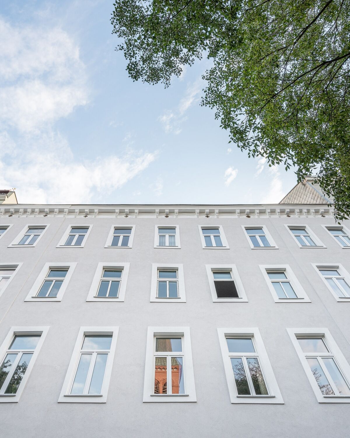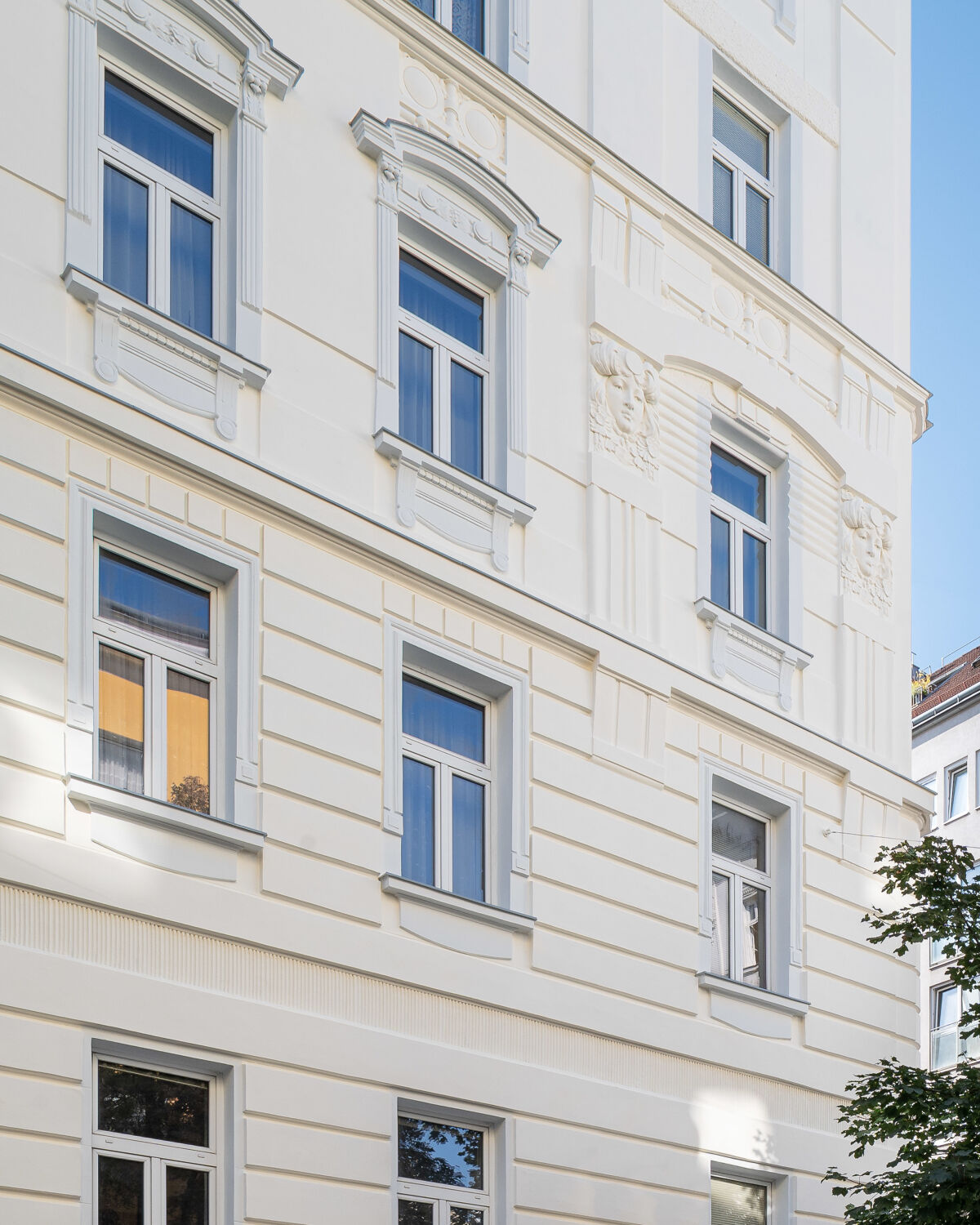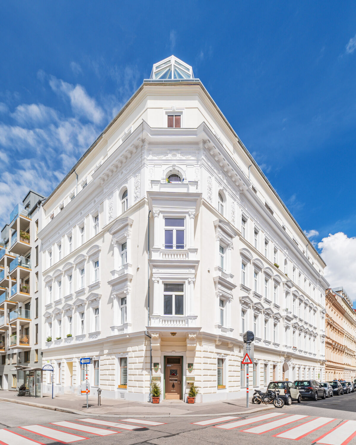1170 ViennaNumber of apartments in total: 10Acquired at the beginning of 2021, the apartment block at Hernalser Hauptstraße 49/Bergsteiggasse 26A, 1170 Vienna was extensively refurbished by 3SI Immogroup in the spring of the same year. In addition to revitalising the common areas, the previously unadorned exterior façade on the right-hand side of the corner apartment building was given a handcrafted stucco finish. The freehold flats - including top-floor flats with attractive open spaces - are now being sold. -