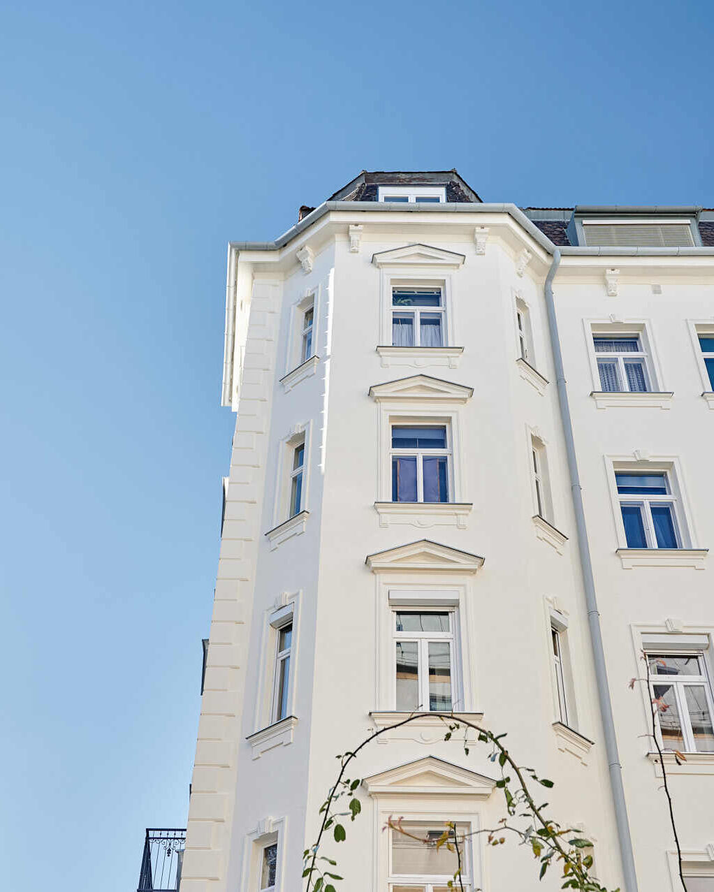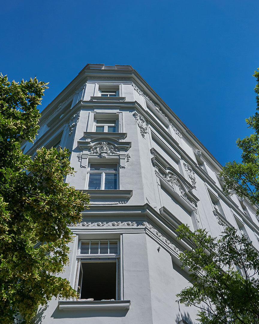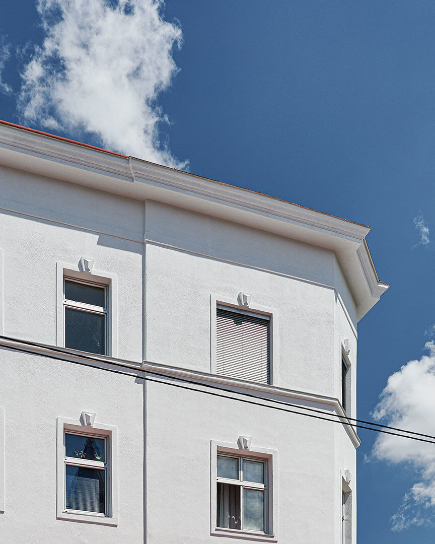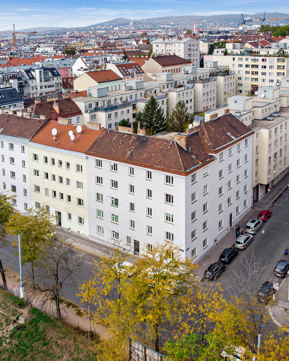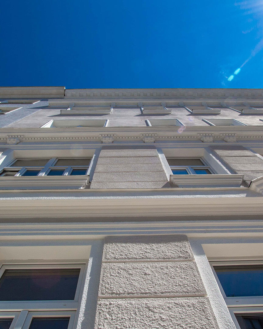 1170 ViennaNumber of apartments in total: 10Acquired at the beginning of 2021, the apartment block at Hernalser Hauptstraße 49/Bergsteiggasse 26A, 1170 Vienna was extensively refurbished by 3SI Immogroup in the spring of the same year. In addition to revitalising the common areas, the previously unadorned exterior façade on the right-hand side of the corner apartment building was given a handcrafted stucco finish. The freehold flats - including top-floor flats with attractive open spaces - are now being sold. -