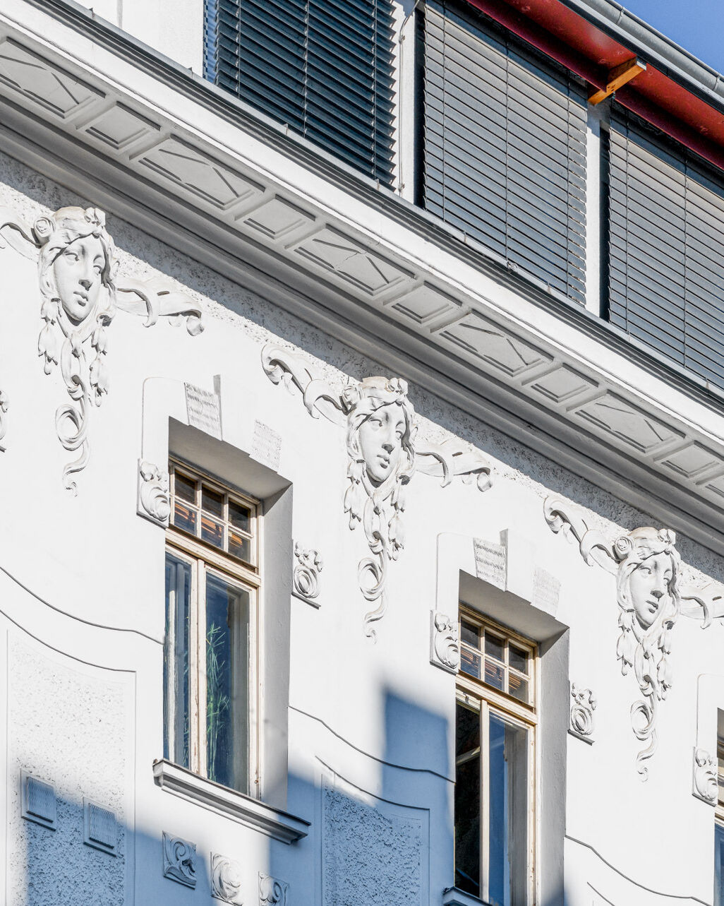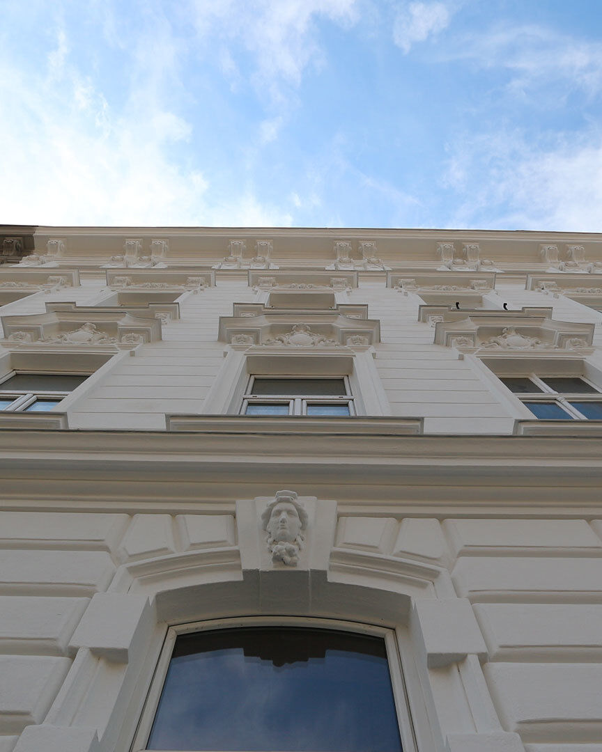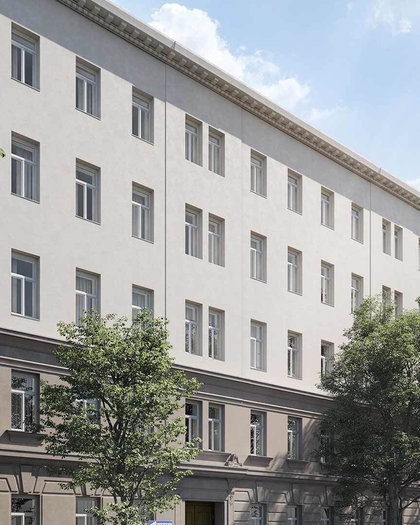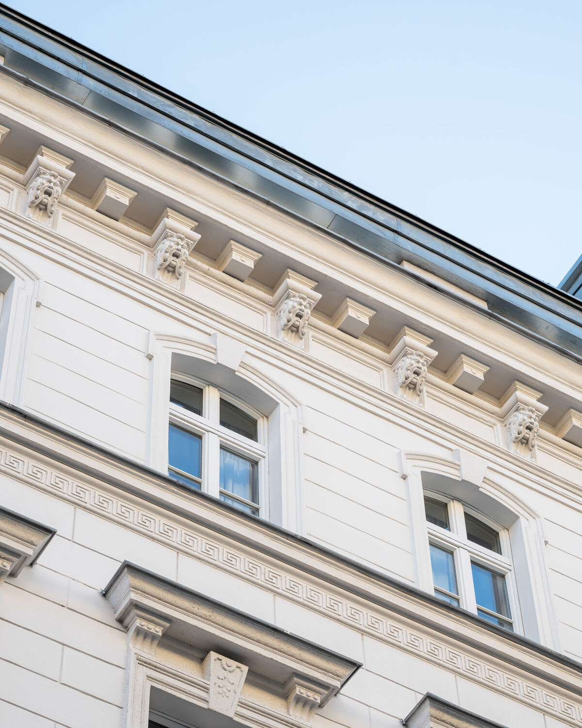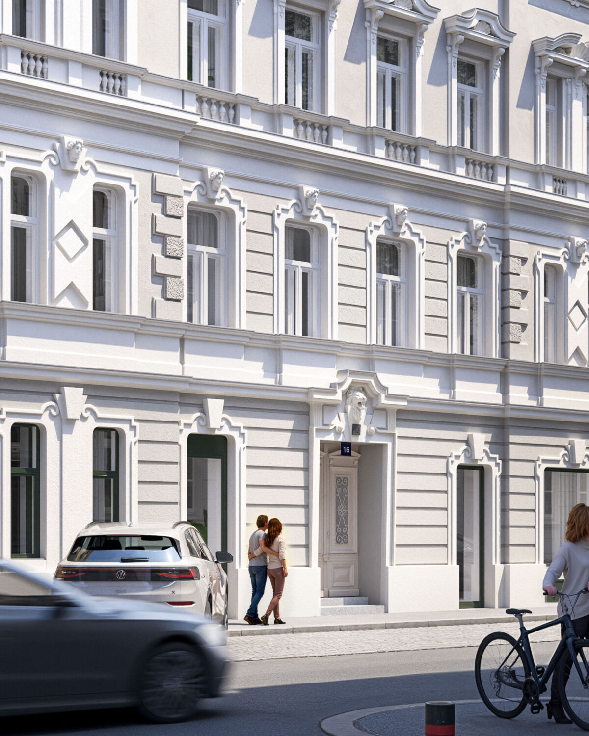 1170 ViennaNumber of apartments in total: 10Acquired at the beginning of 2021, the apartment block at Hernalser Hauptstraße 49/Bergsteiggasse 26A, 1170 Vienna was extensively refurbished by 3SI Immogroup in the spring of the same year. In addition to revitalising the common areas, the previously unadorned exterior façade on the right-hand side of the corner apartment building was given a handcrafted stucco finish. The freehold flats - including top-floor flats with attractive open spaces - are now being sold. -