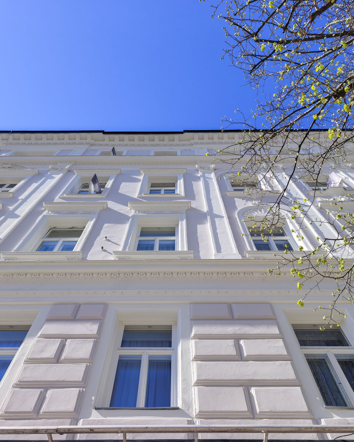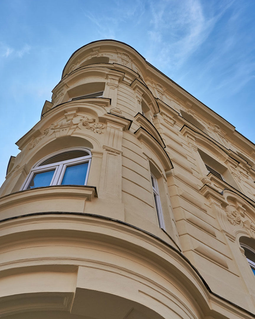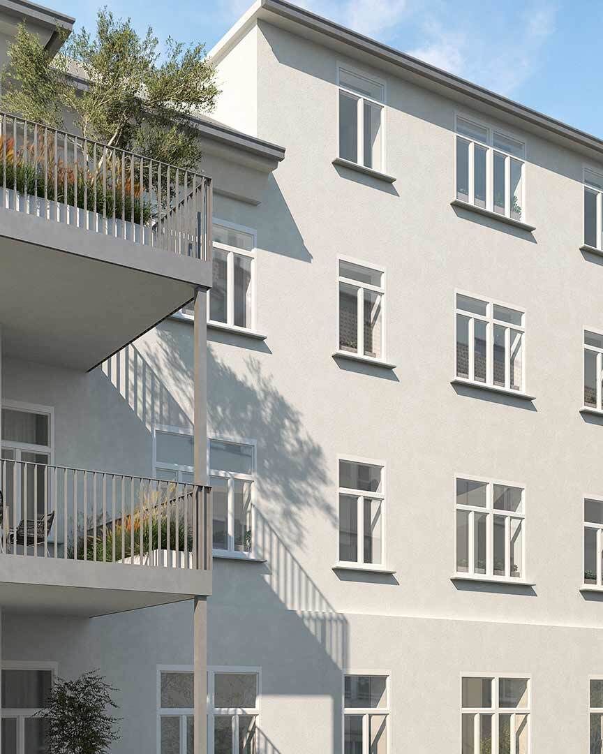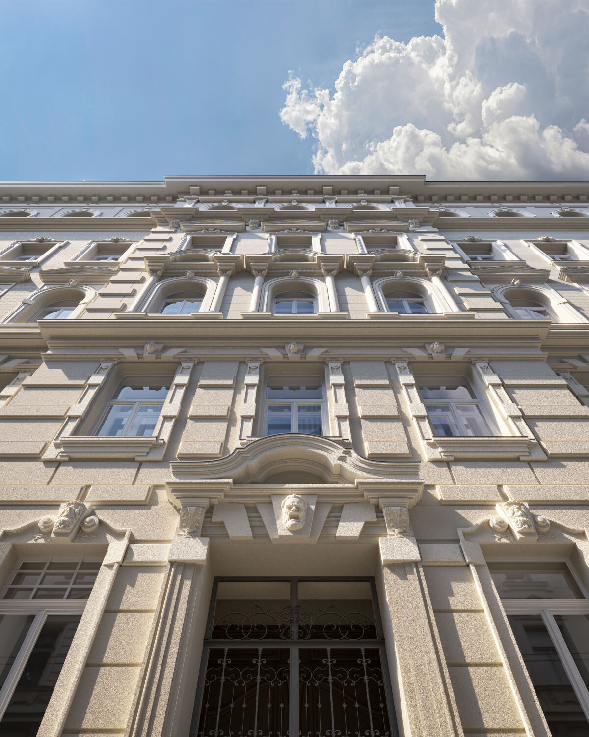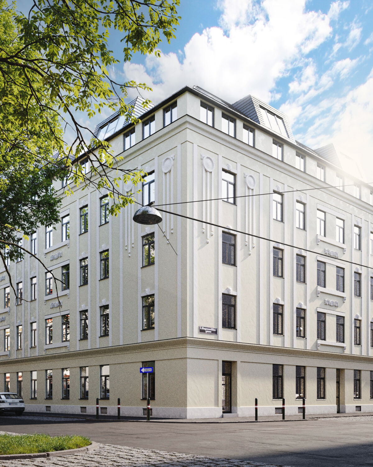 1170 ViennaNumber of apartments in total: 10Acquired at the beginning of 2021, the apartment block at Hernalser Hauptstraße 49/Bergsteiggasse 26A, 1170 Vienna was extensively refurbished by 3SI Immogroup in the spring of the same year. In addition to revitalising the common areas, the previously unadorned exterior façade on the right-hand side of the corner apartment building was given a handcrafted stucco finish. The freehold flats - including top-floor flats with attractive open spaces - are now being sold. -