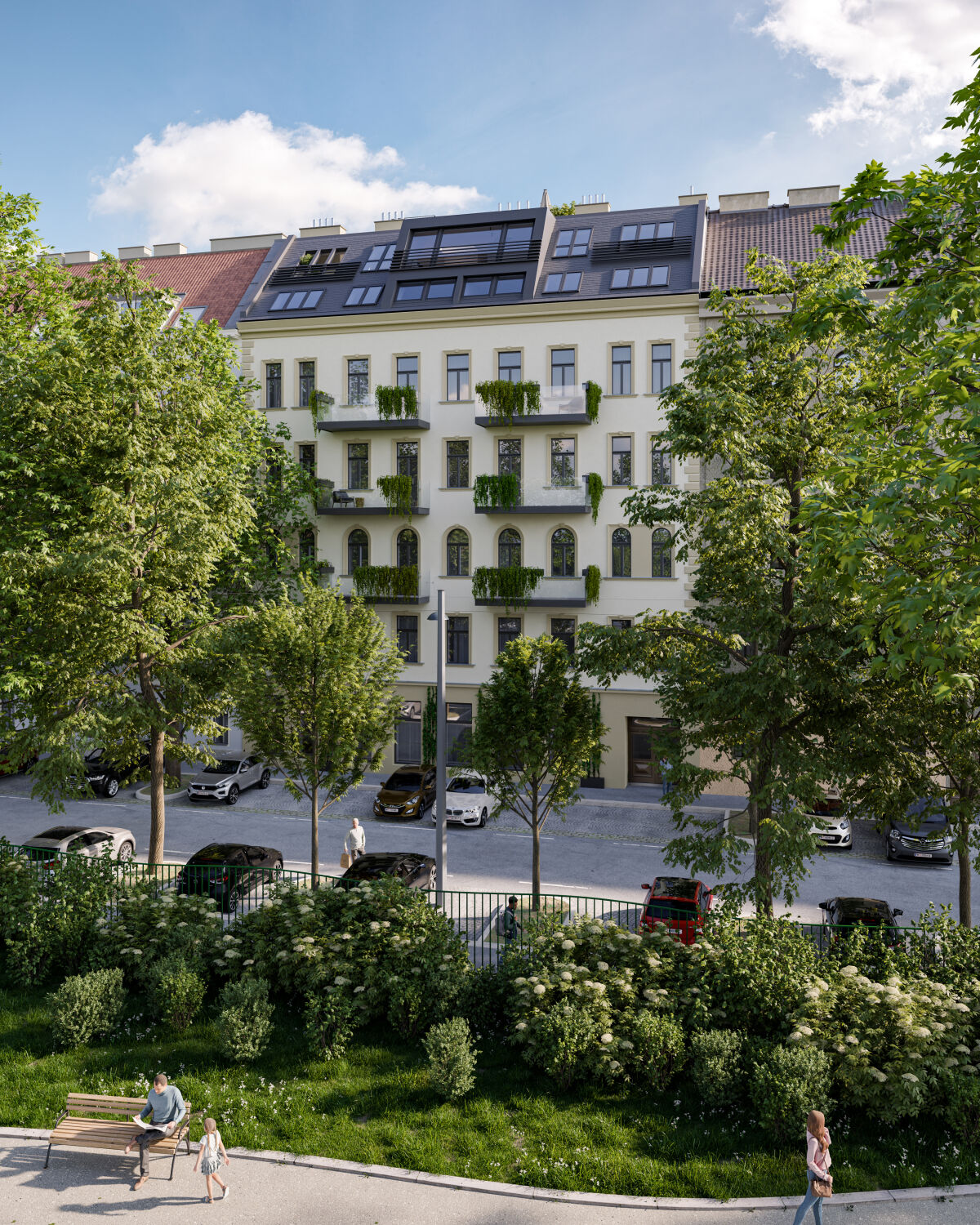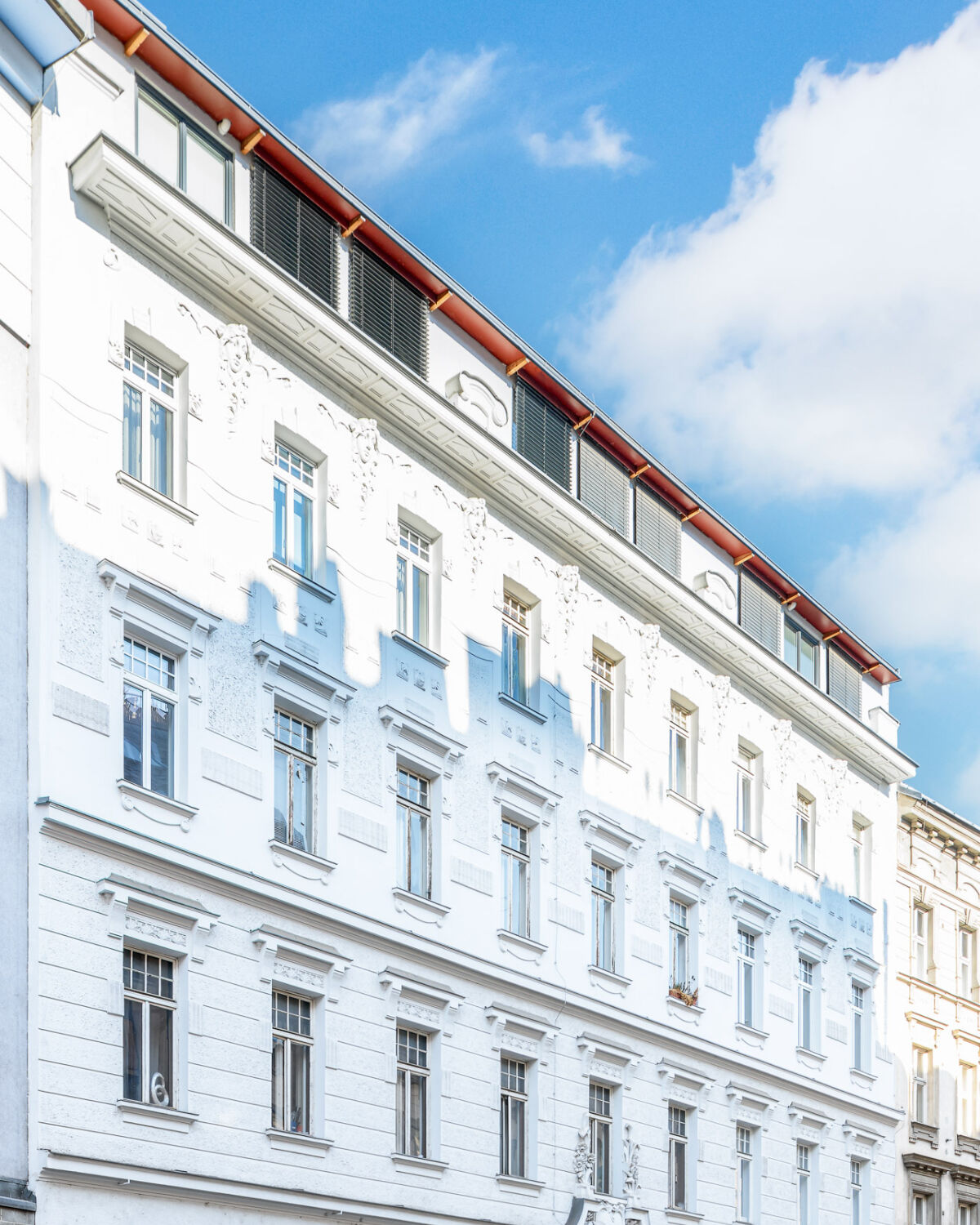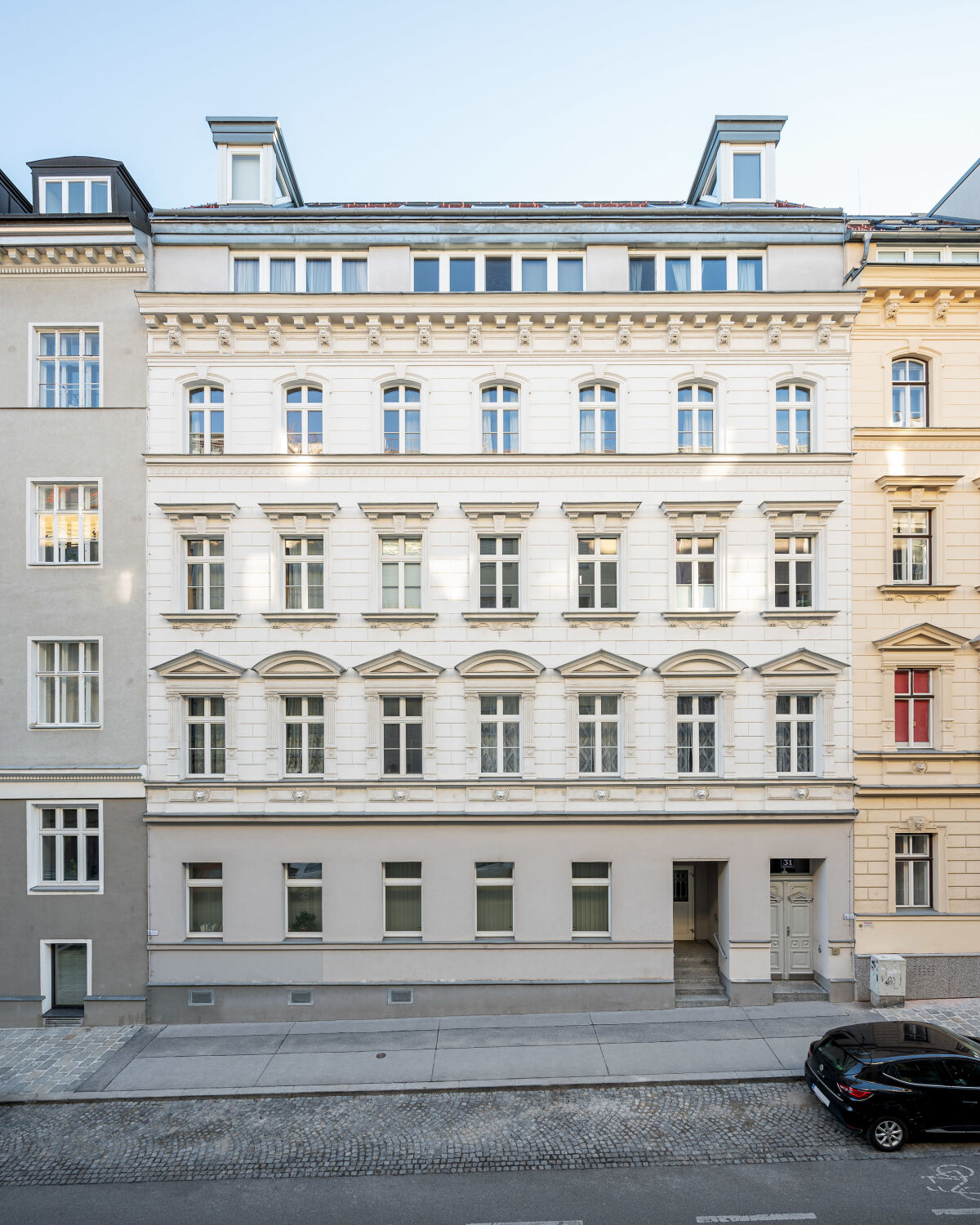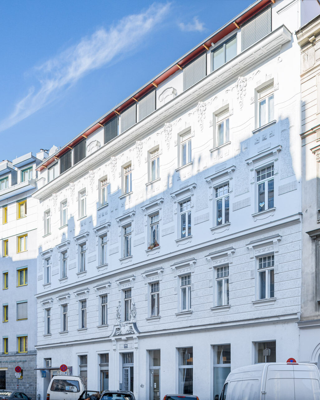 1050 ViennaThe charming old building at Fendigasse 23, 1050 Vienna, was acquired by 3SI Immogroup at the beginning of 2021. The apartment building, which currently still has four floors and dates back to 1909, was extensively revitalised in 2021/22. In addition to the loft conversion, which will create 415 m² of additional living space, there are plans to create new garden flats and add balconies. -