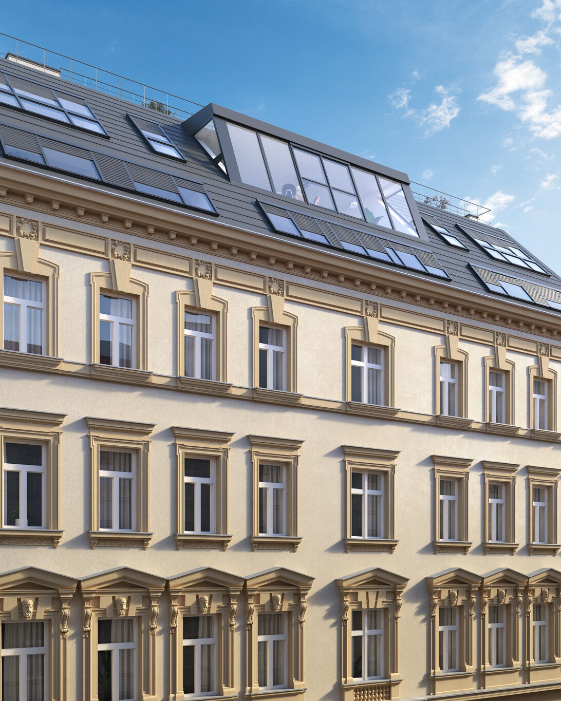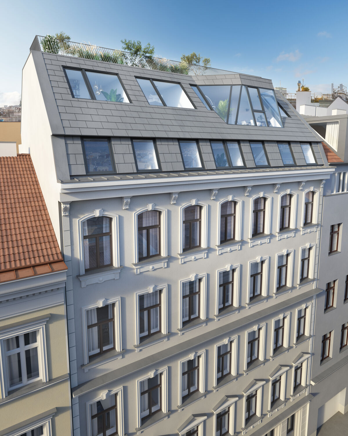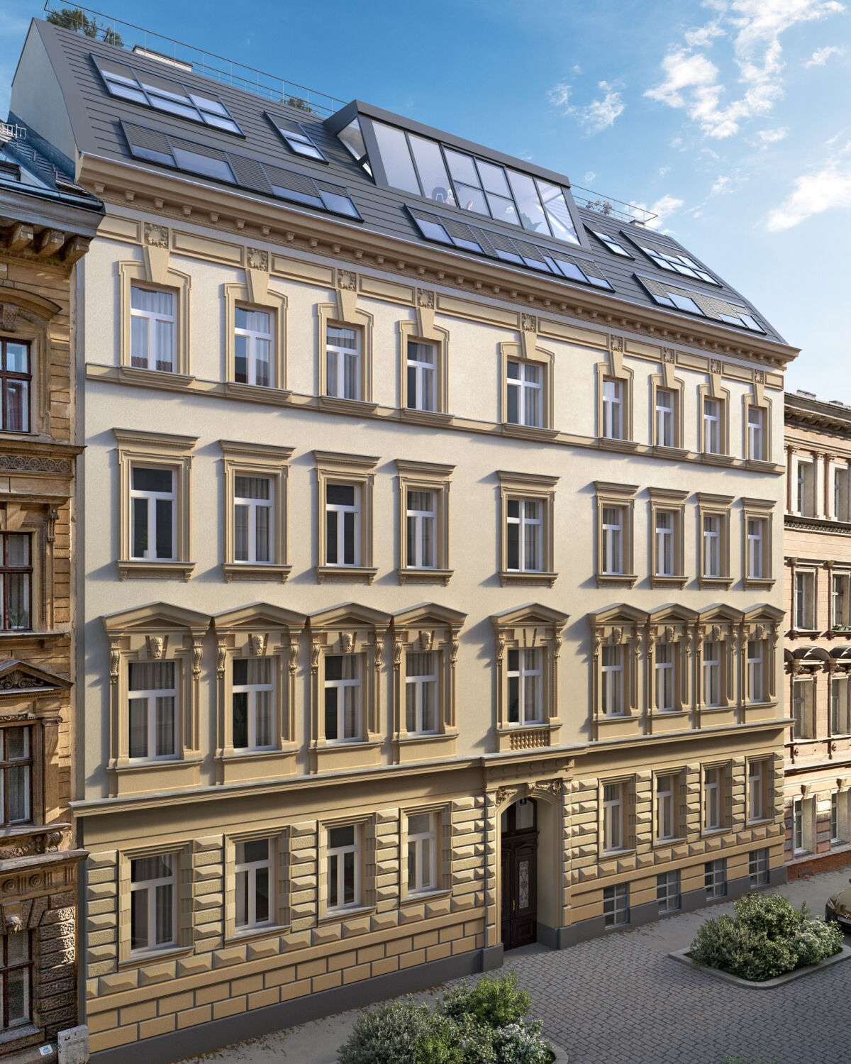 1050 ViennaThe charming old building at Fendigasse 23, 1050 Vienna, was acquired by 3SI Immogroup at the beginning of 2021. The apartment building, which currently still has four floors and dates back to 1909, was extensively revitalised in 2021/22. In addition to the loft conversion, which will create 415 m² of additional living space, there are plans to create new garden flats and add balconies. -