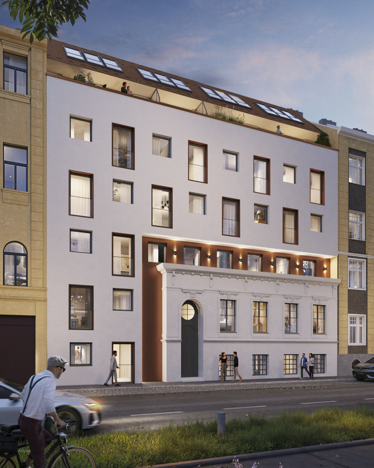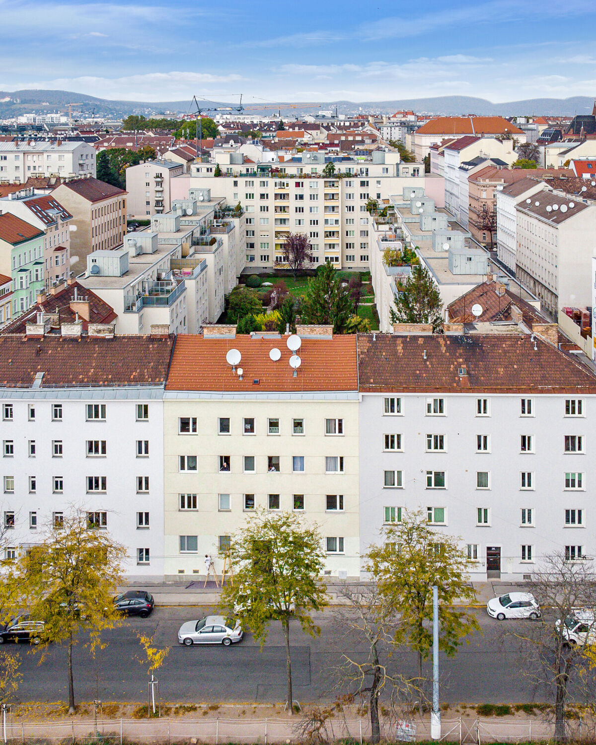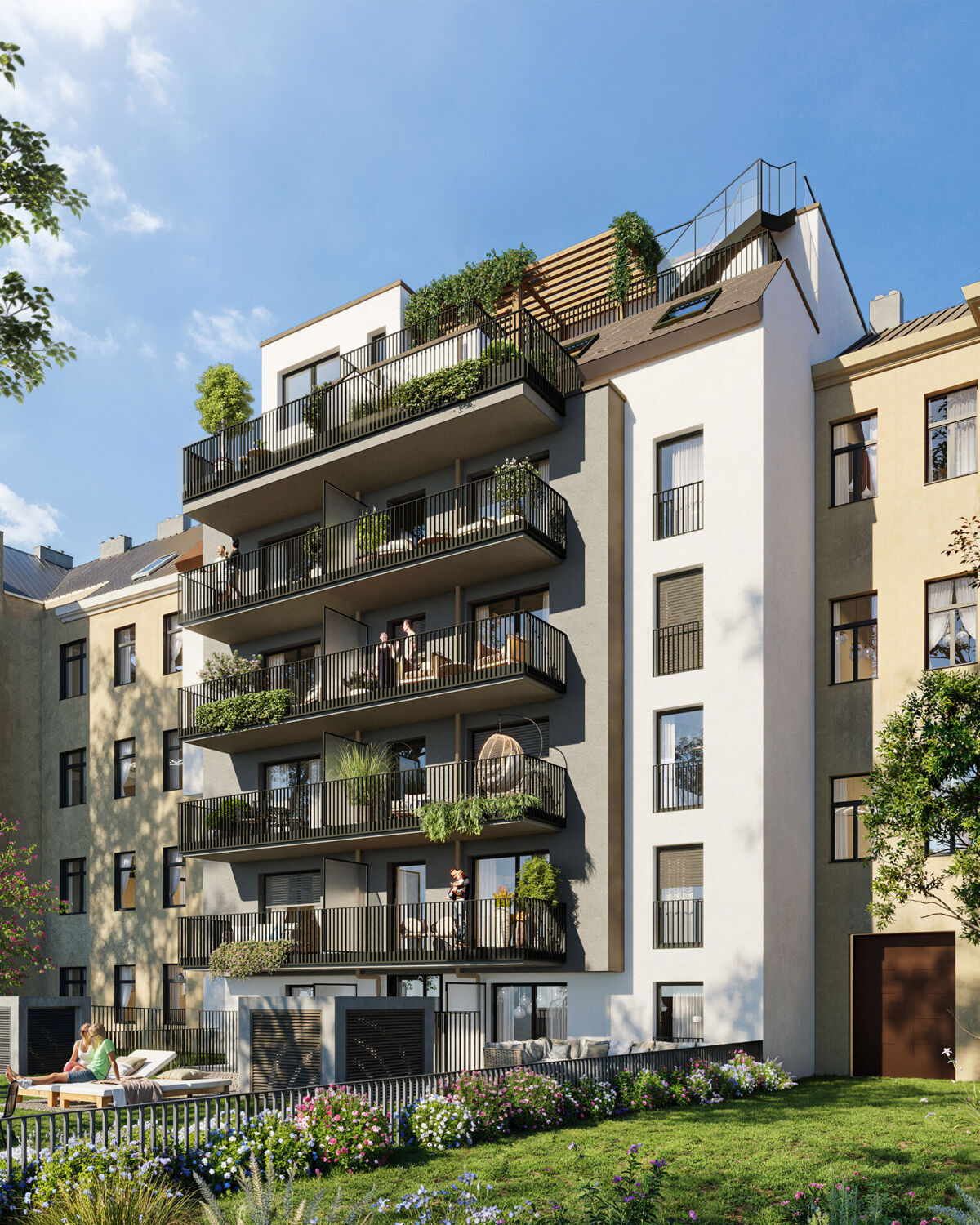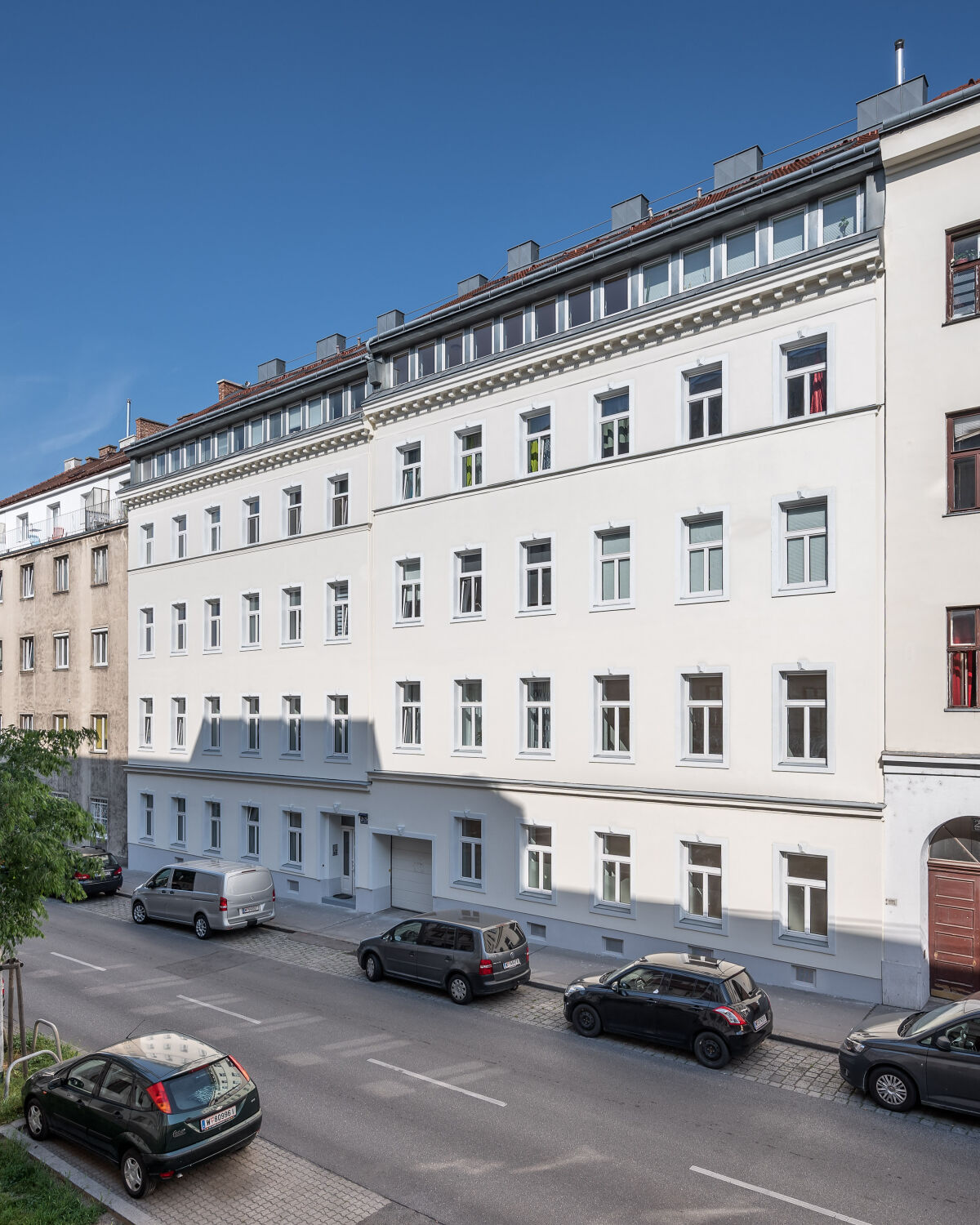 1050 ViennaThe charming old building at Fendigasse 23, 1050 Vienna, was acquired by 3SI Immogroup at the beginning of 2021. The apartment building, which currently still has four floors and dates back to 1909, was extensively revitalised in 2021/22. In addition to the loft conversion, which will create 415 m² of additional living space, there are plans to create new garden flats and add balconies. -