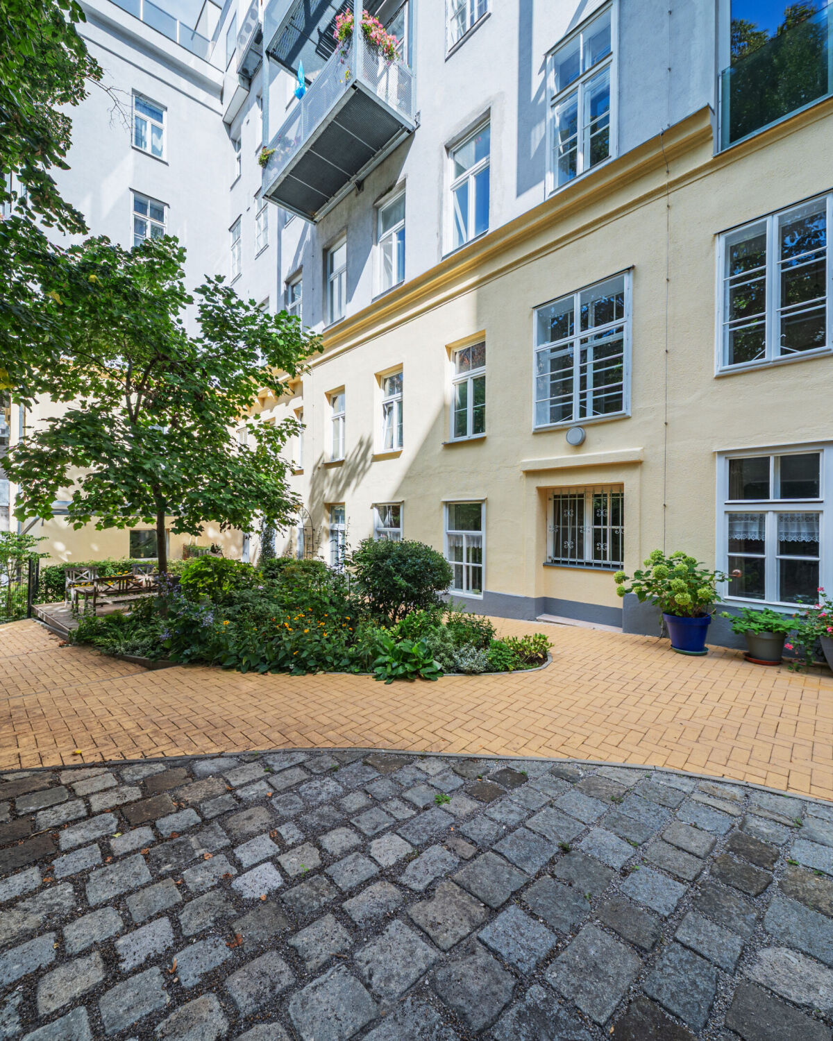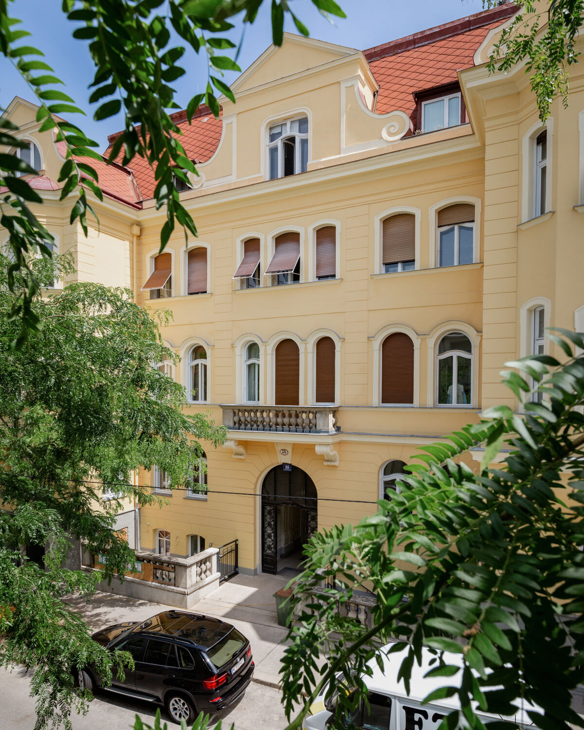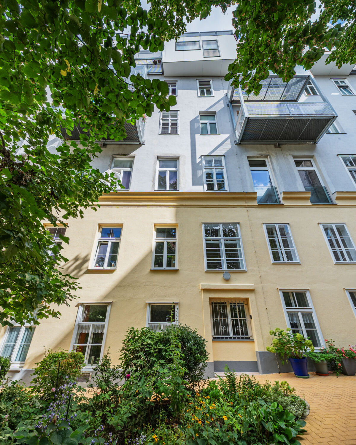 1130 ViennaNumber of apartments in total: 3Built in 1900 by architect Berehinak Ferdinand Franz, the Wilhelminian-style house impresses with its elegant, castle-like structure. The marvellous inner courtyard is reminiscent of a castle garden and perfectly rounds off the stylish building. -