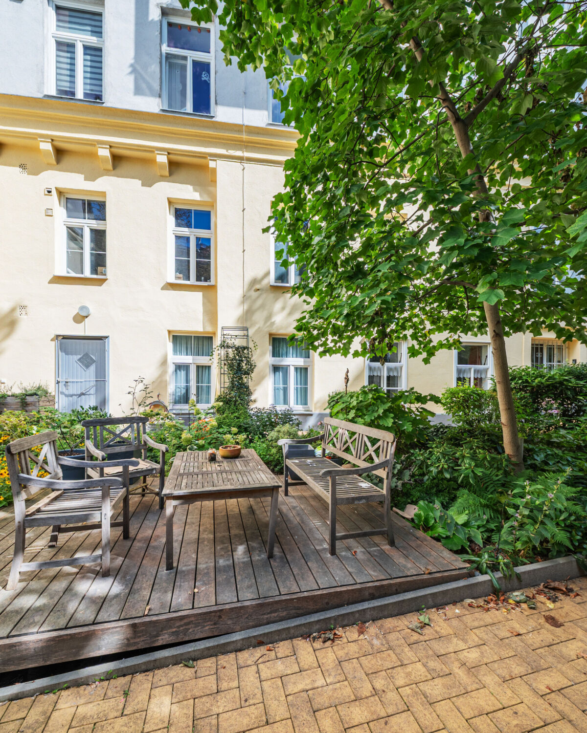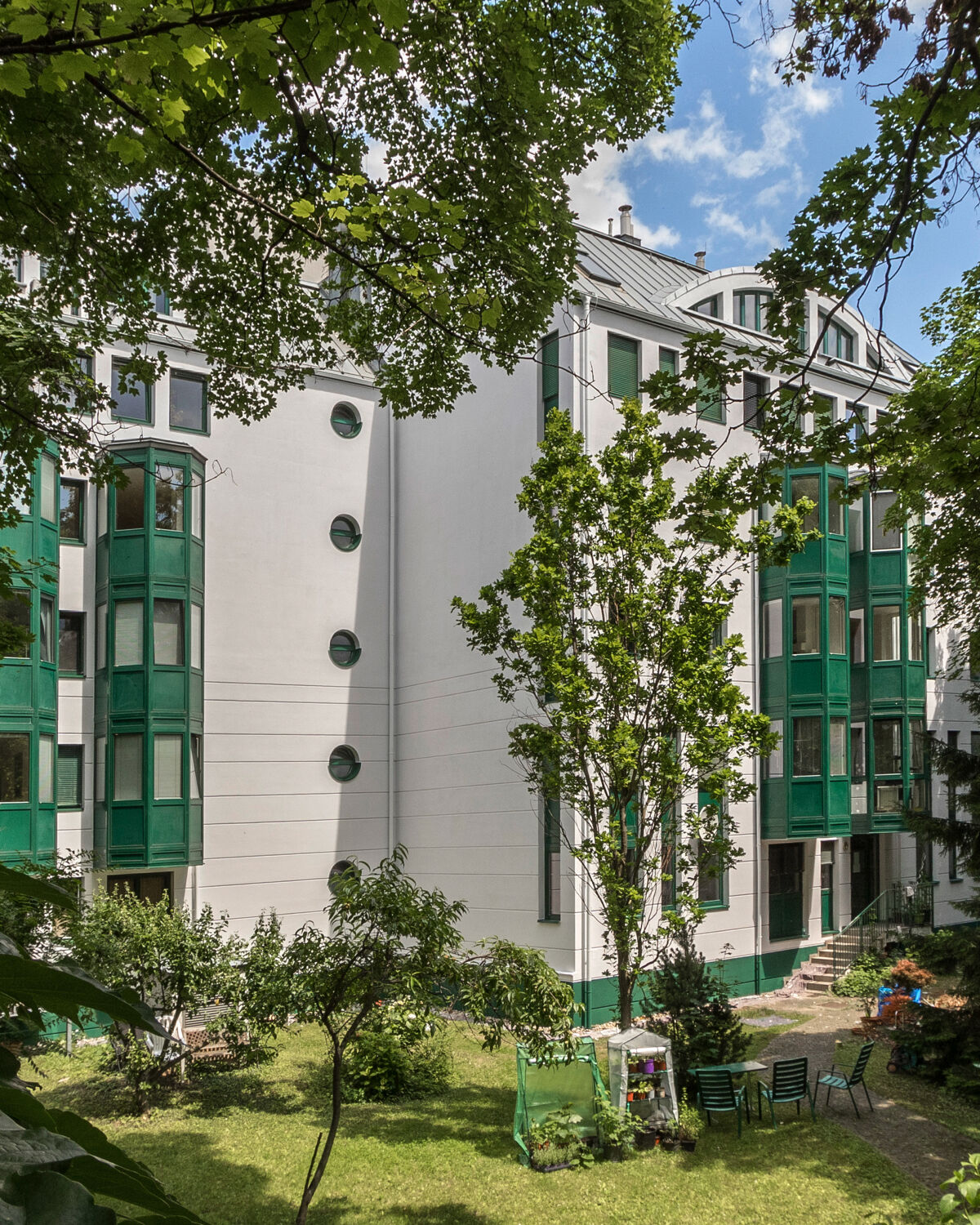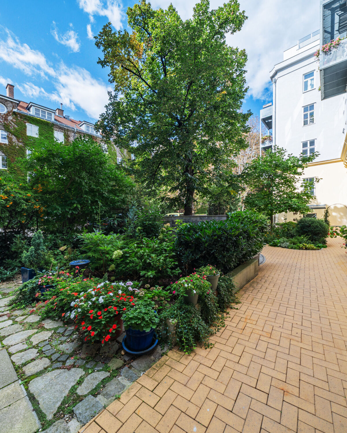 1130 ViennaNumber of apartments in total: 3Built in 1900 by architect Berehinak Ferdinand Franz, the Wilhelminian-style house impresses with its elegant, castle-like structure. The marvellous inner courtyard is reminiscent of a castle garden and perfectly rounds off the stylish building. -