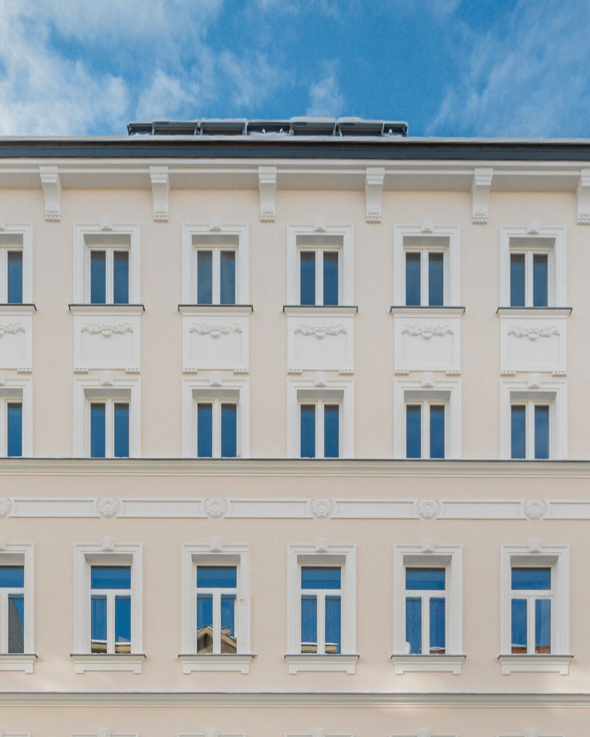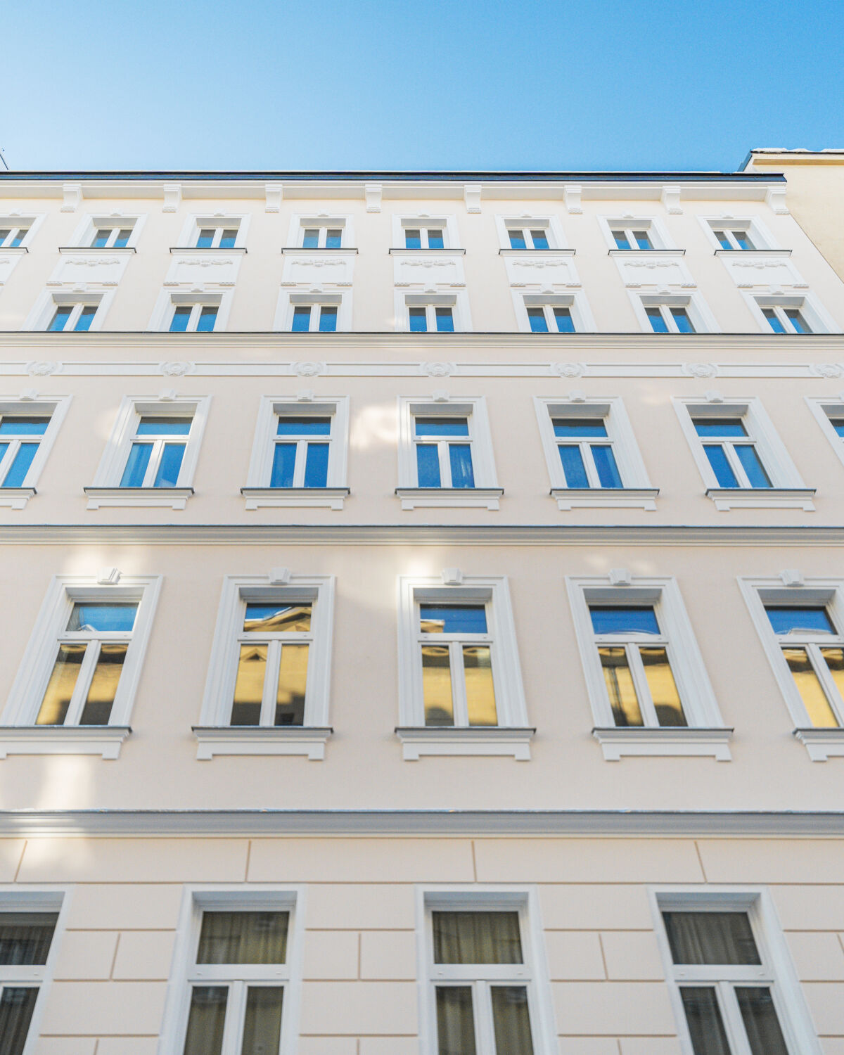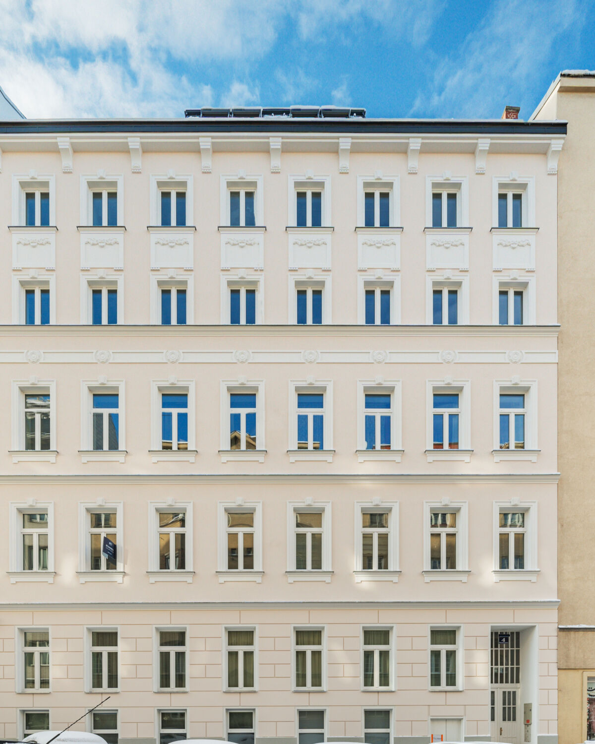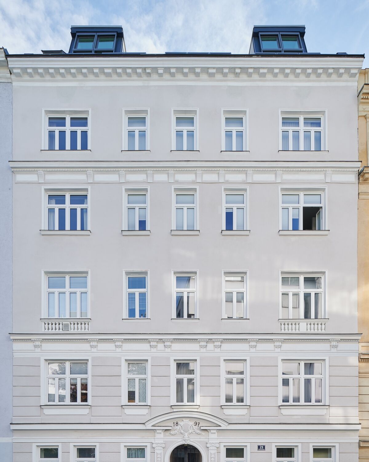 1080 ViennaThis mid-rise apartment building at Stolzenthalergasse 3, 1080 Vienna, immediately catches the eye thanks to the beautiful window roofing and the numerous divisions of the façade. The building has a usable area of around 664 m², which is divided into eight residential units and two commercial units on the ground floor.
