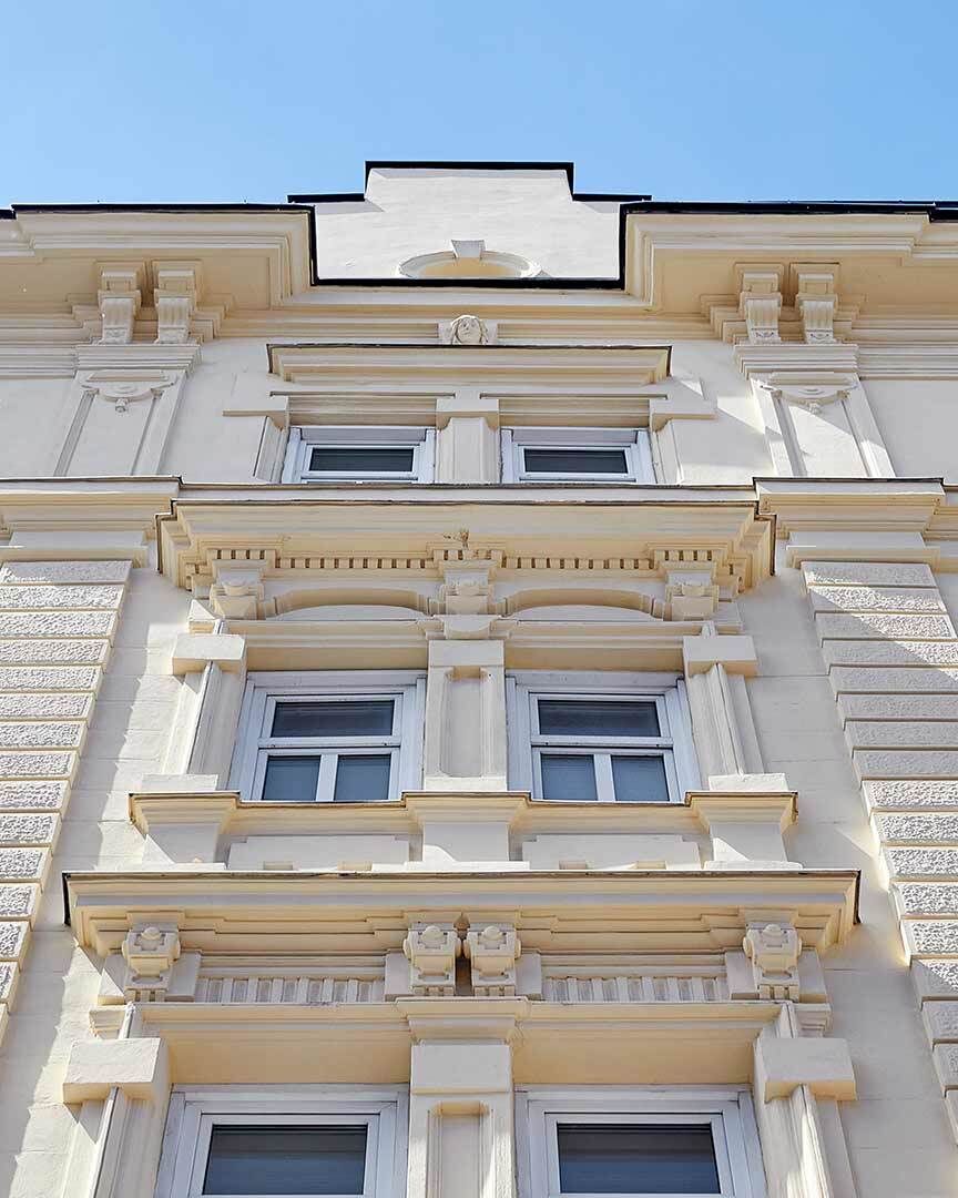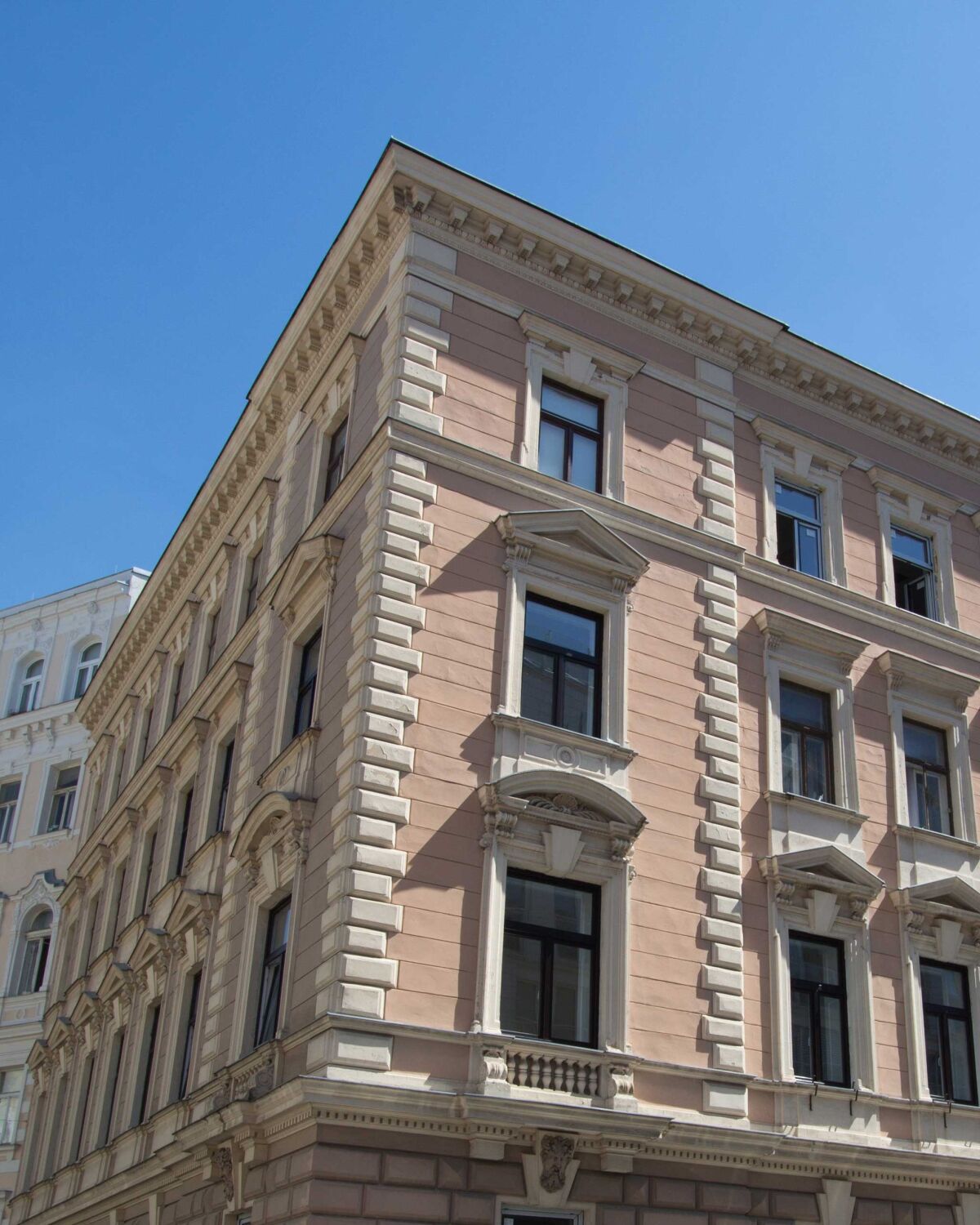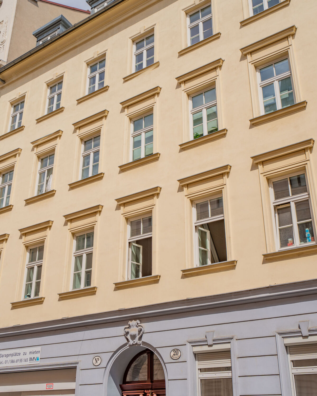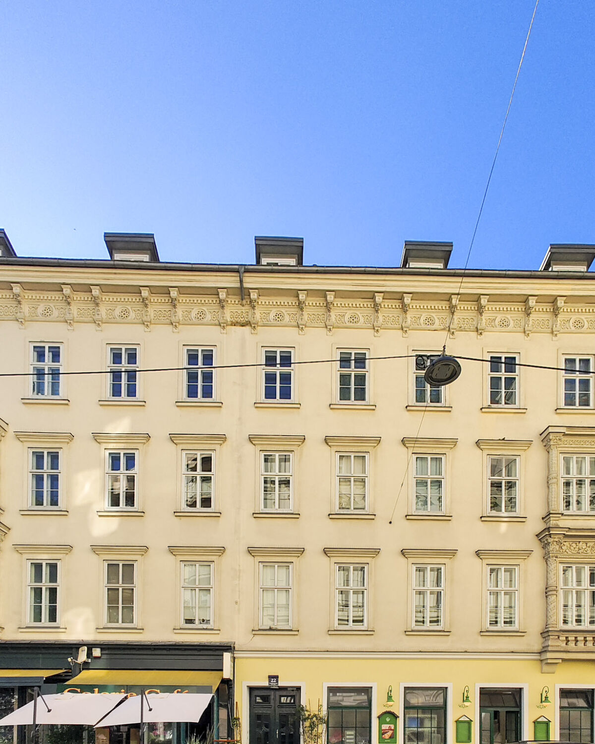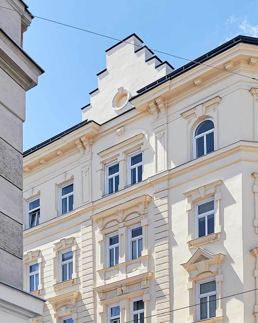 1080 ViennaThis mid-rise apartment building at Stolzenthalergasse 3, 1080 Vienna, immediately catches the eye thanks to the beautiful window roofing and the numerous divisions of the façade. The building has a usable area of around 664 m², which is divided into eight residential units and two commercial units on the ground floor.
