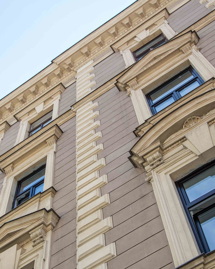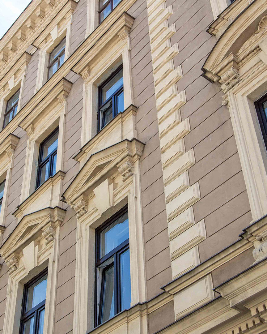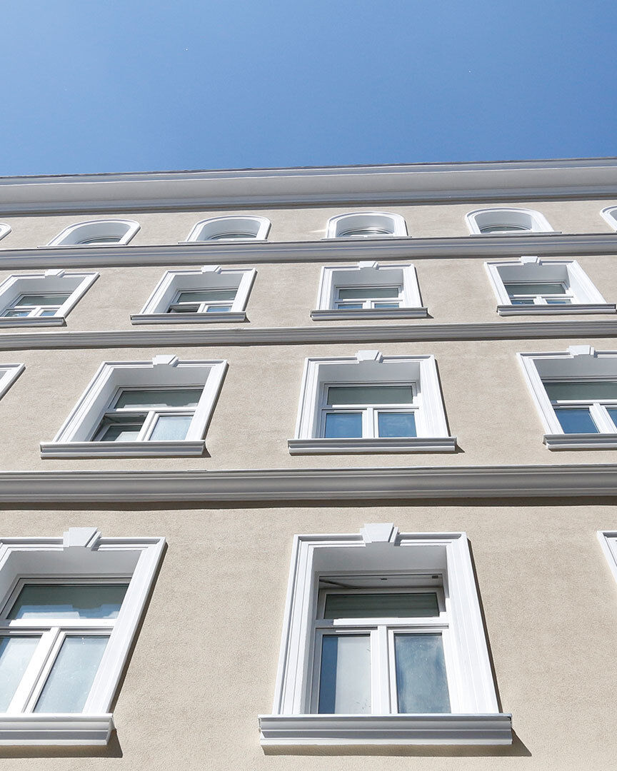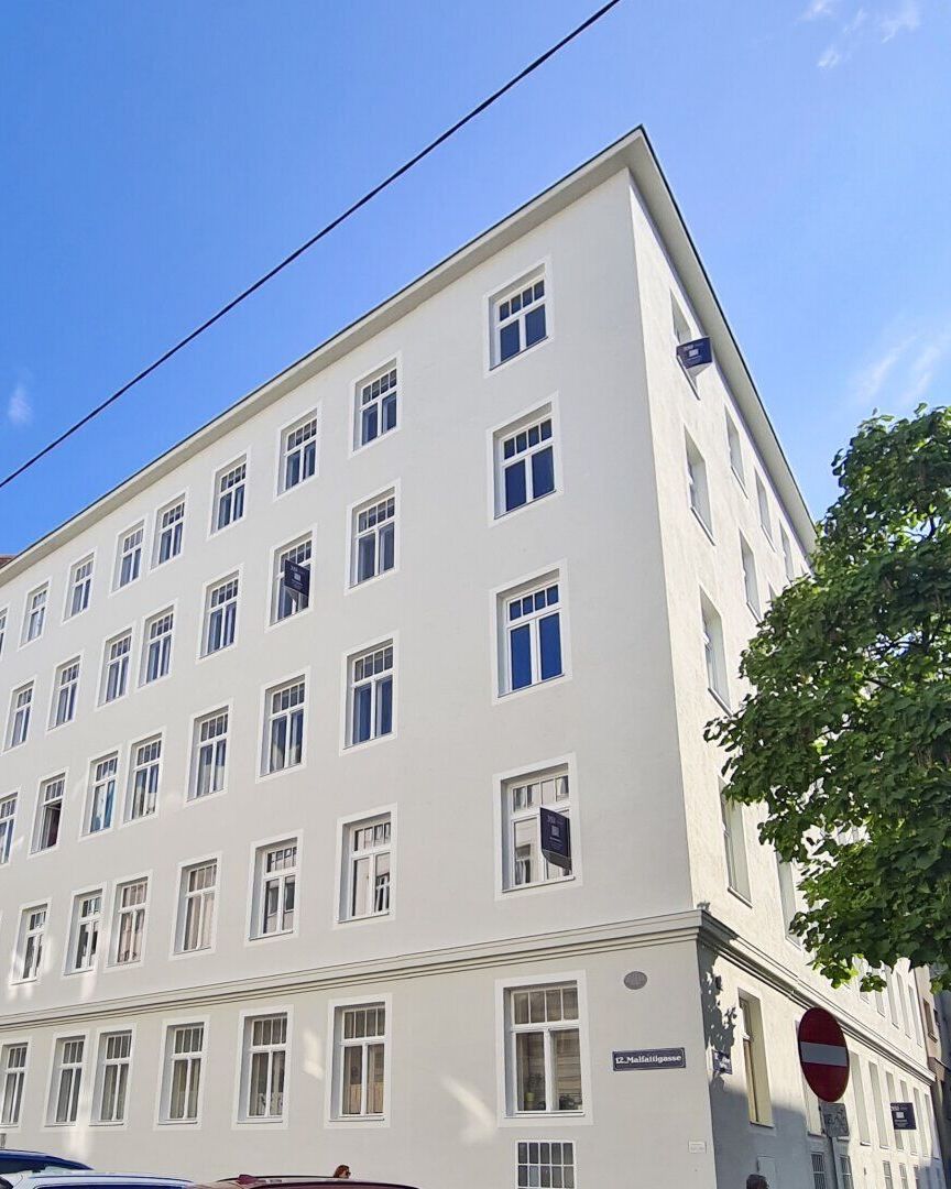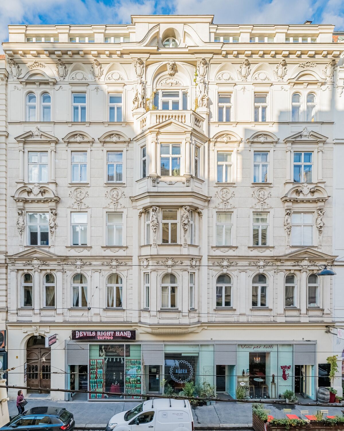 1080 ViennaThis mid-rise apartment building at Stolzenthalergasse 3, 1080 Vienna, immediately catches the eye thanks to the beautiful window roofing and the numerous divisions of the façade. The building has a usable area of around 664 m², which is divided into eight residential units and two commercial units on the ground floor.