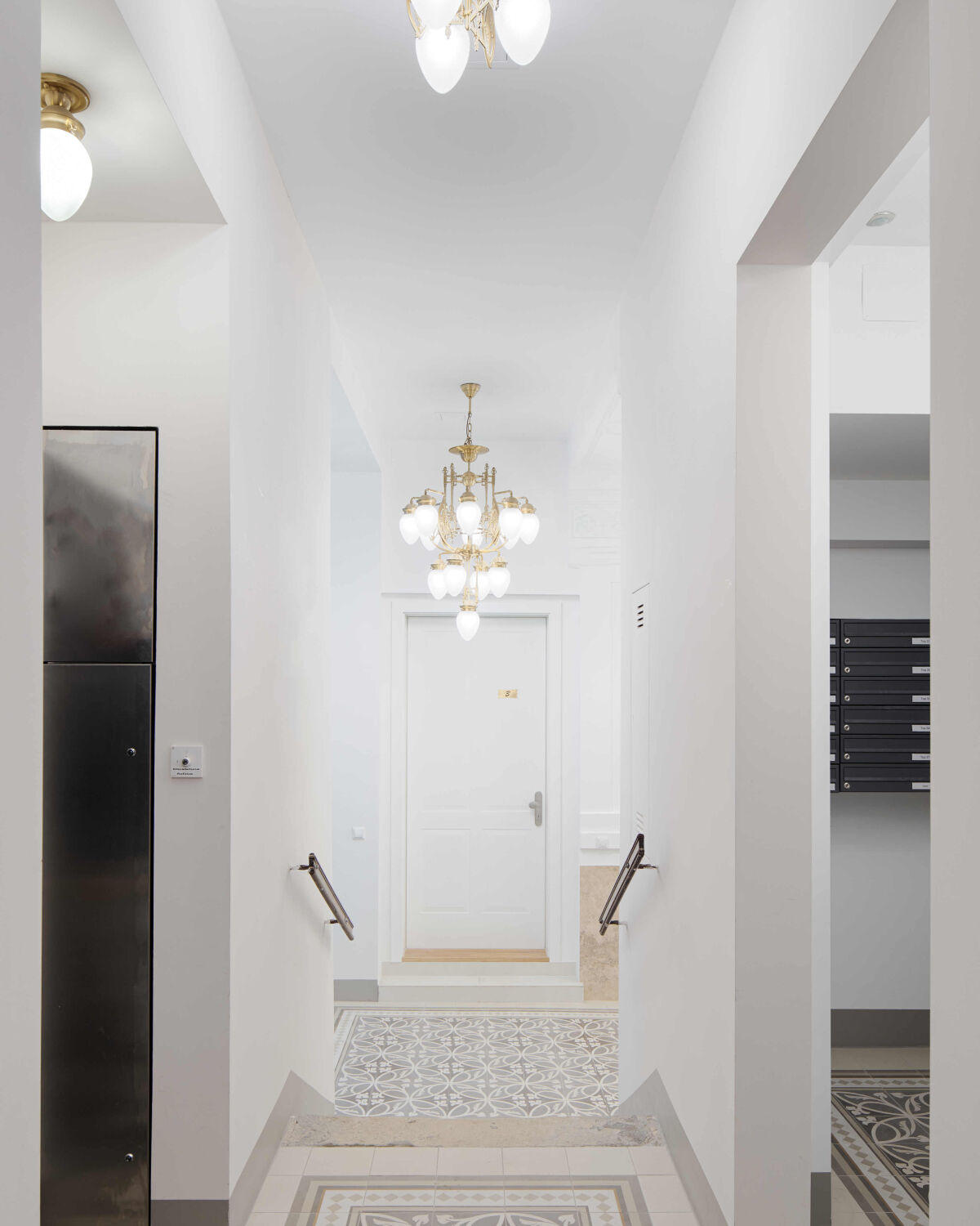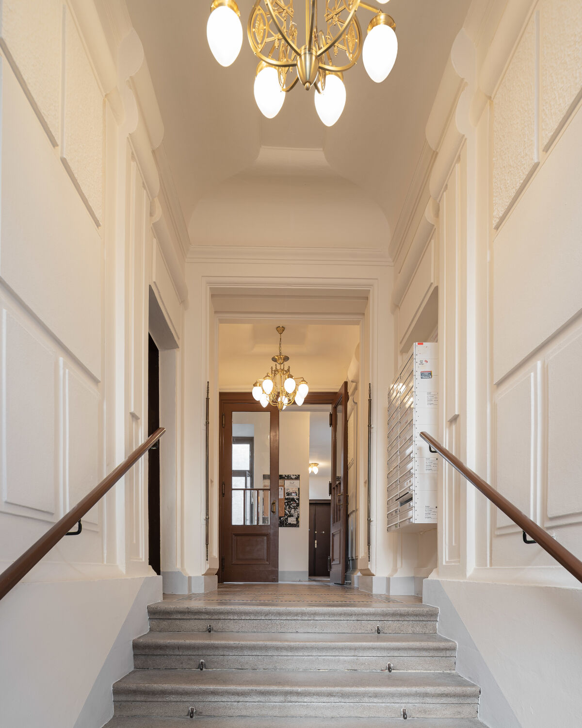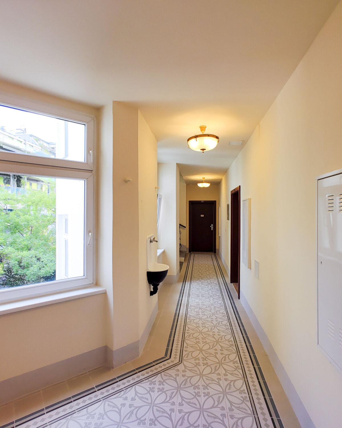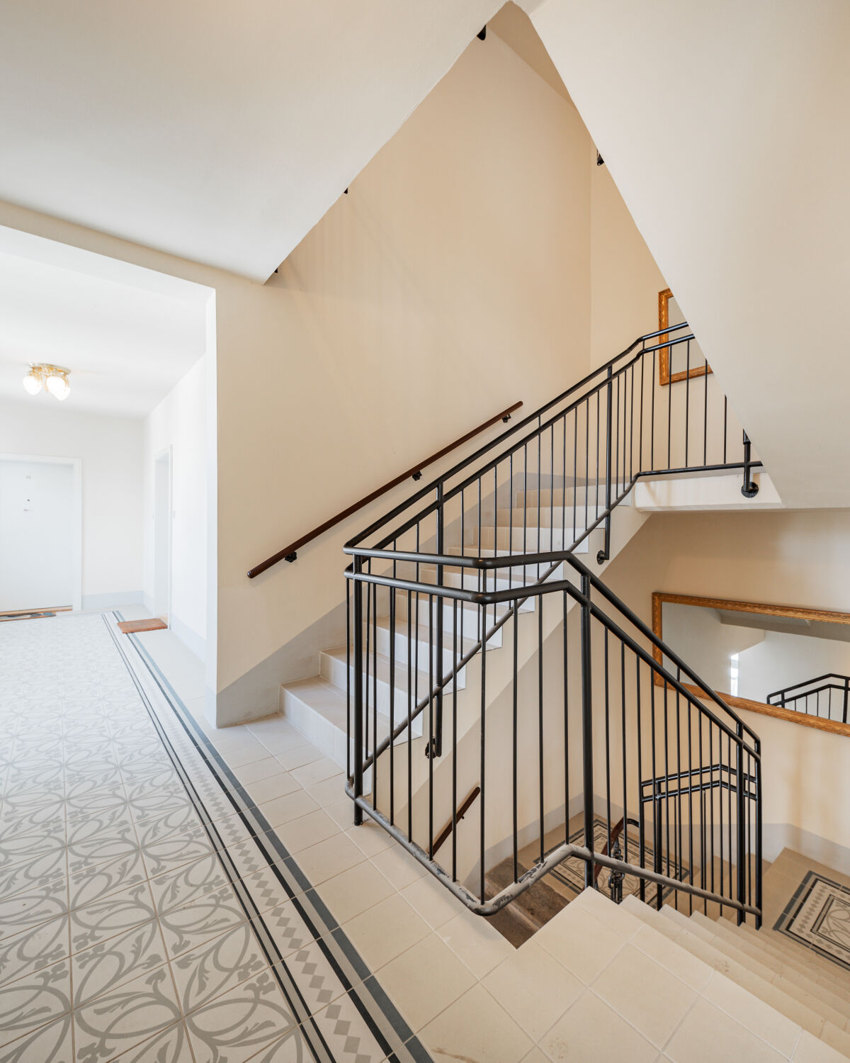 1160 ViennaThe charming corner apartment building at Herbststraße 32, 1160 Vienna, was extensively revitalised by 3SI Immogroup in 2020. In addition to the refurbishment of the exterior façade, the interior of the period building was also extensively overhauled. As part of the staircase refurbishment, the walls were replastered and painted - as were all the doors -, handrails and banisters were restored and new lights were installed. -