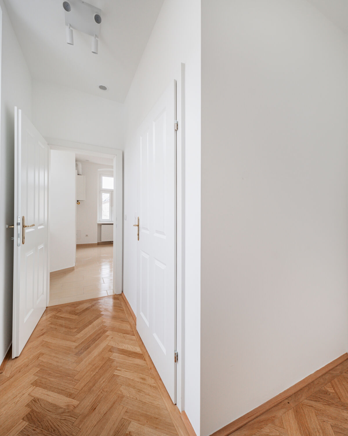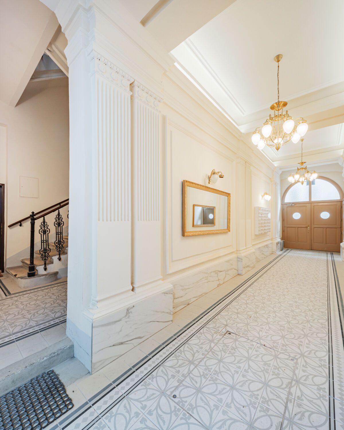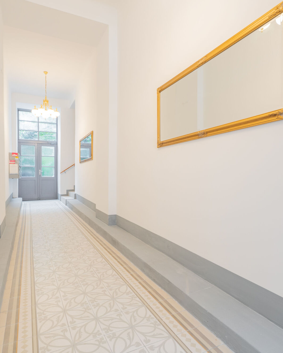 1160 ViennaThe charming corner apartment building at Herbststraße 32, 1160 Vienna, was extensively revitalised by 3SI Immogroup in 2020. In addition to the refurbishment of the exterior façade, the interior of the period building was also extensively overhauled. As part of the staircase refurbishment, the walls were replastered and painted - as were all the doors -, handrails and banisters were restored and new lights were installed. -