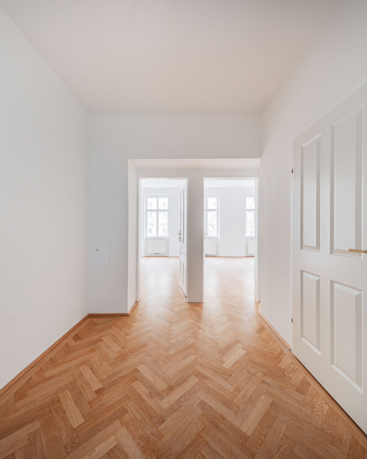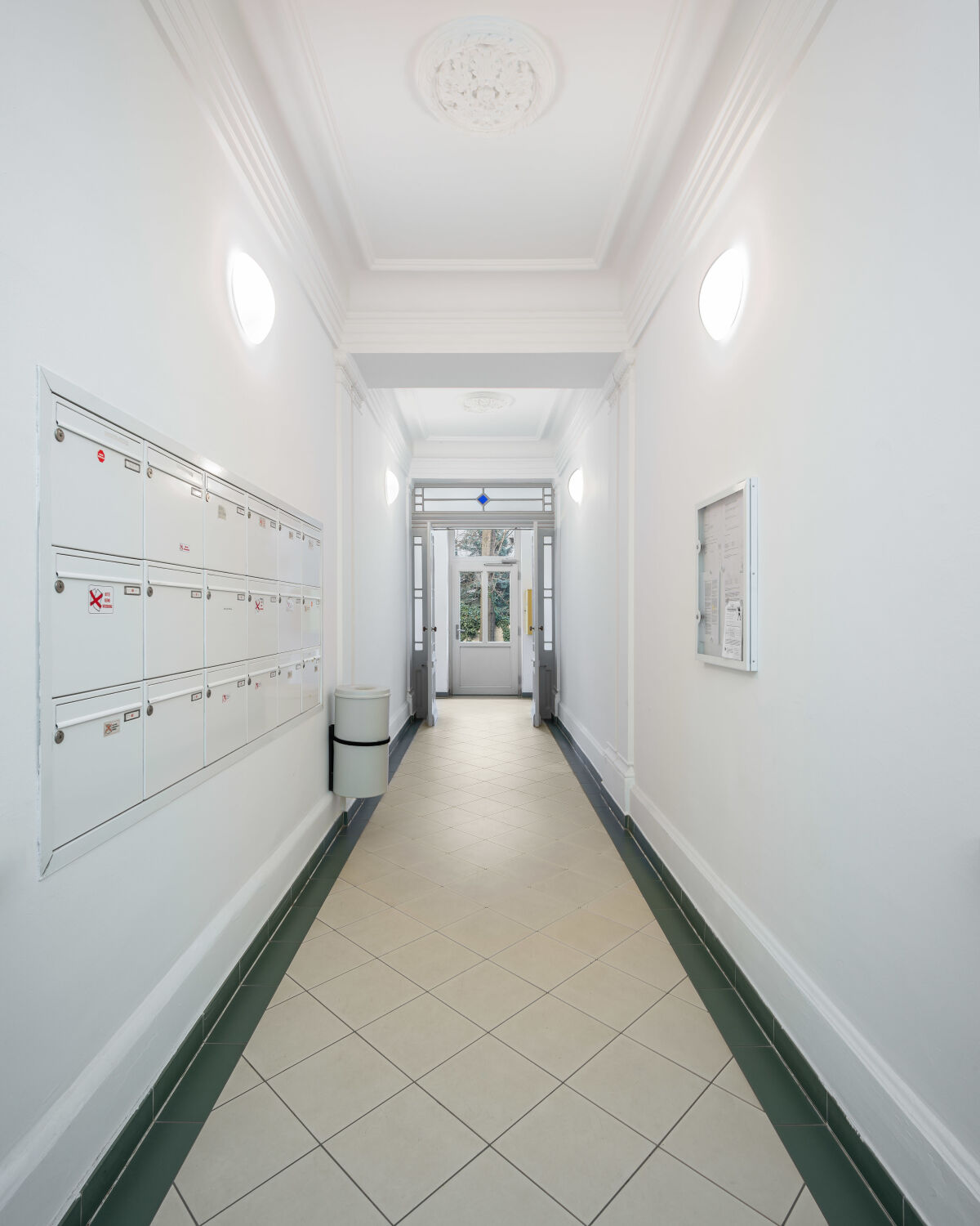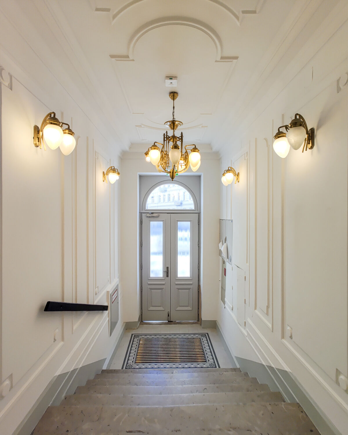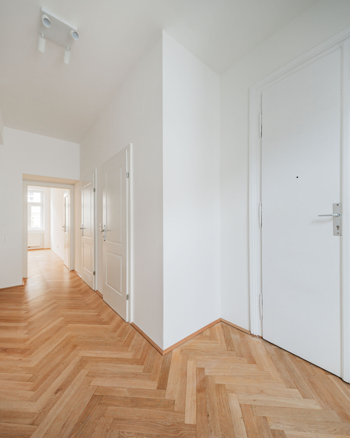 1160 ViennaThe charming corner apartment building at Herbststraße 32, 1160 Vienna, was extensively revitalised by 3SI Immogroup in 2020. In addition to the refurbishment of the exterior façade, the interior of the period building was also extensively overhauled. As part of the staircase refurbishment, the walls were replastered and painted - as were all the doors -, handrails and banisters were restored and new lights were installed. -