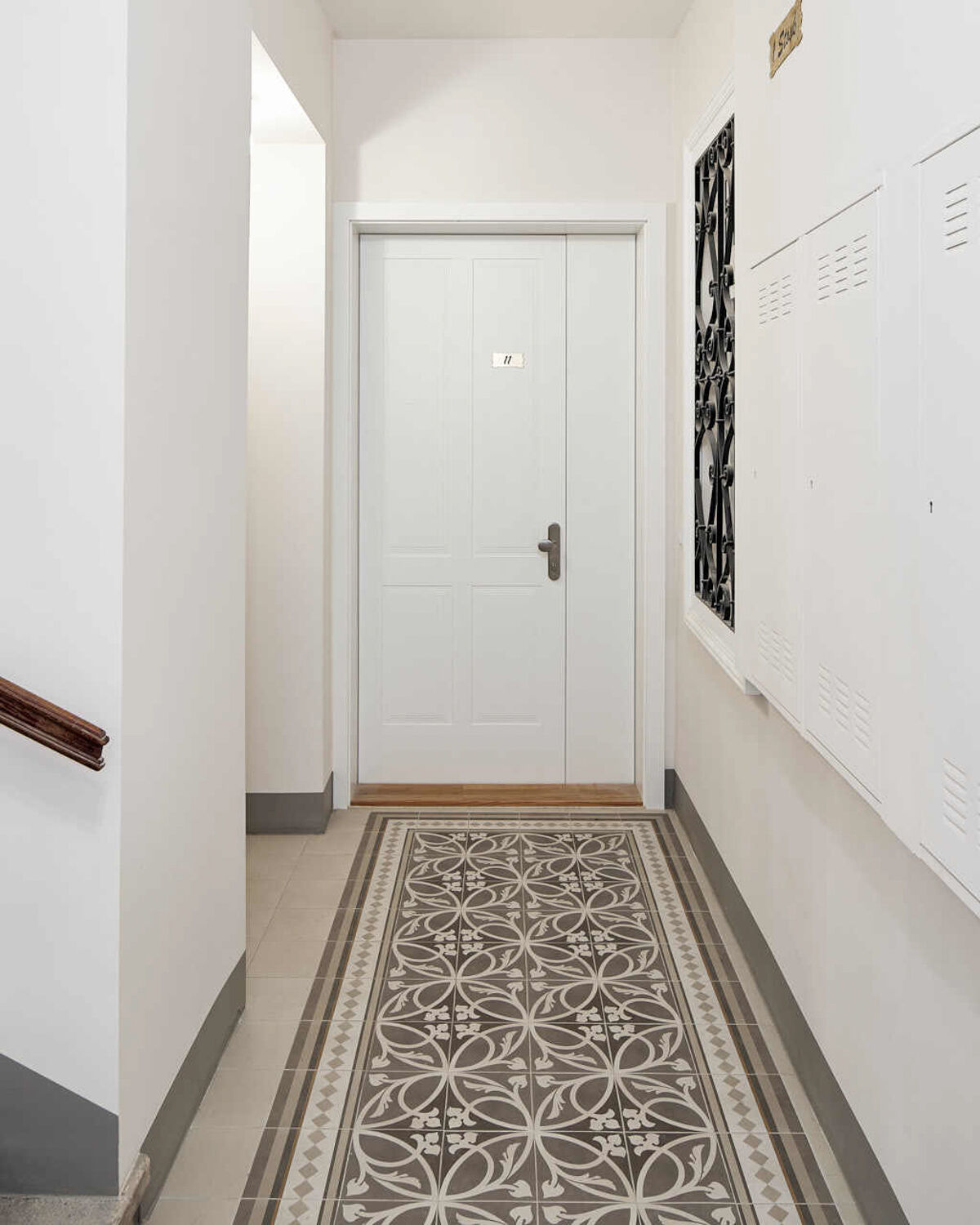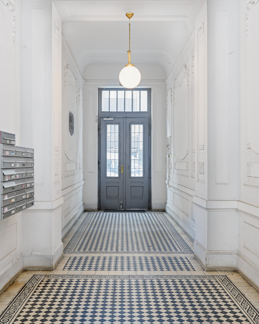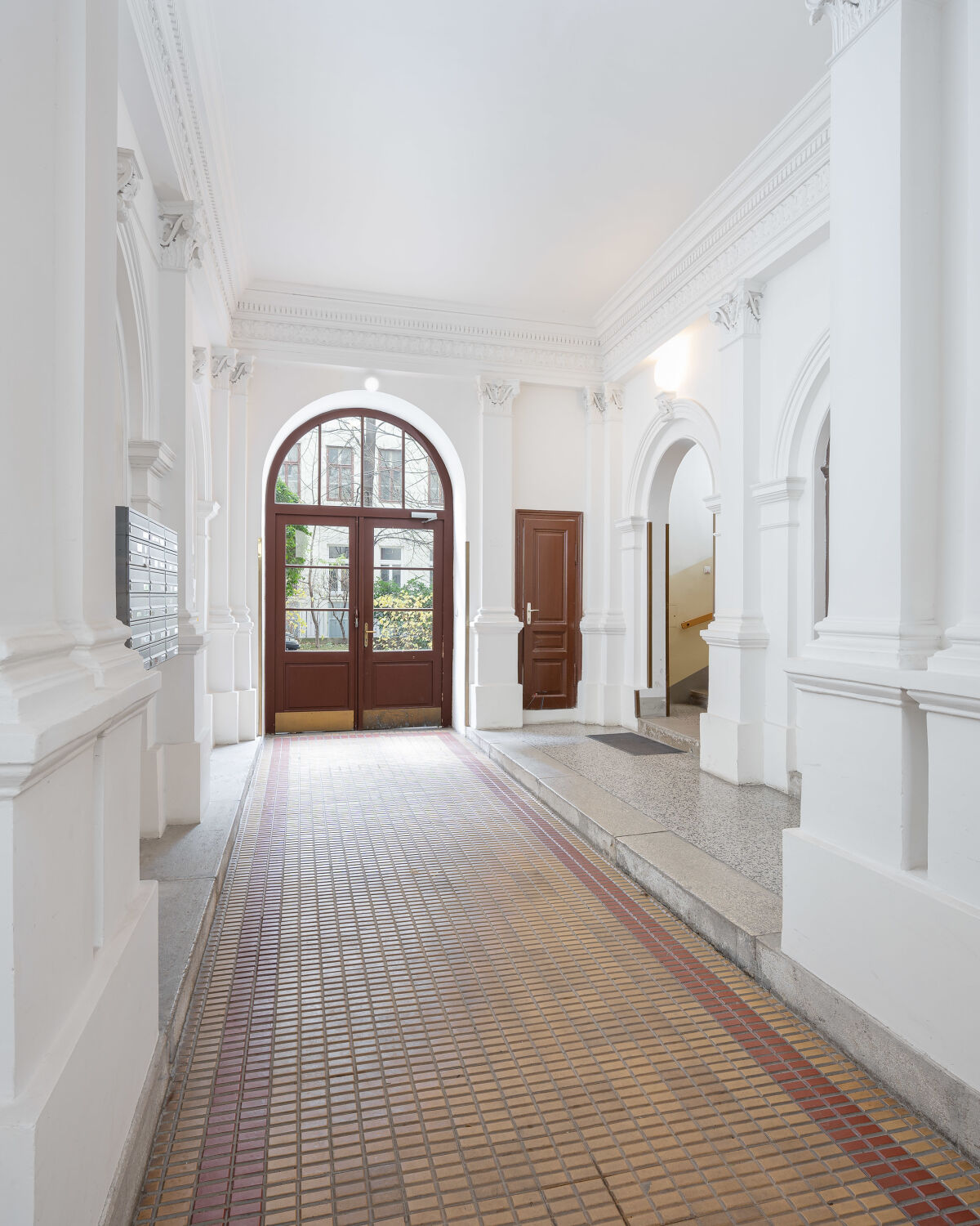 1020 ViennaThis apartment block Am Tabor 8, 1020 Vienna, impresses with its structured and detailed façade, which stands out from the other apartment blocks in the neighbourhood. The building and its individual flats have been transformed back into a gem by 3SI Immogroup through detailed work; the revitalisation of the façade is also continued in the entrance area with a bright and inviting entrance.