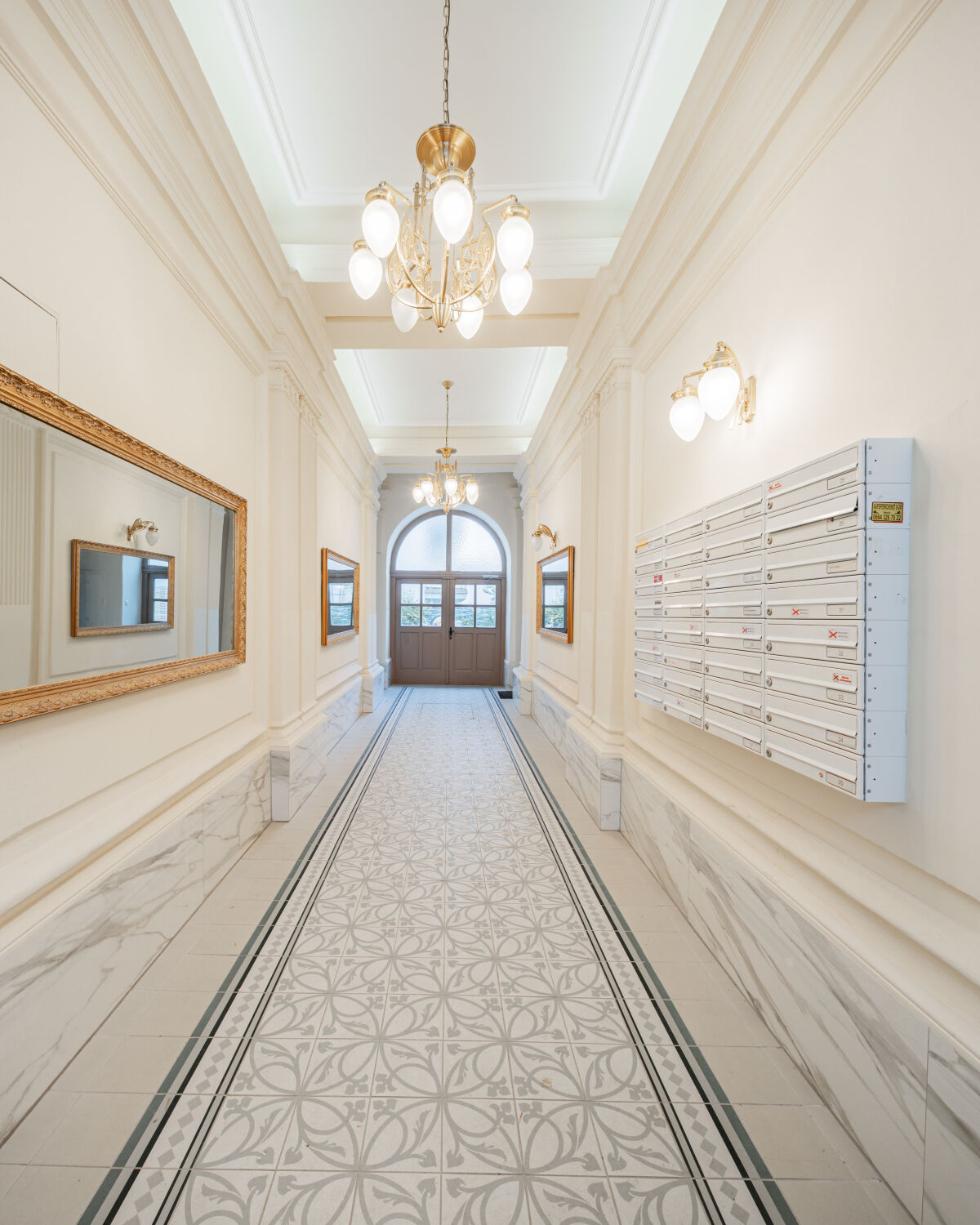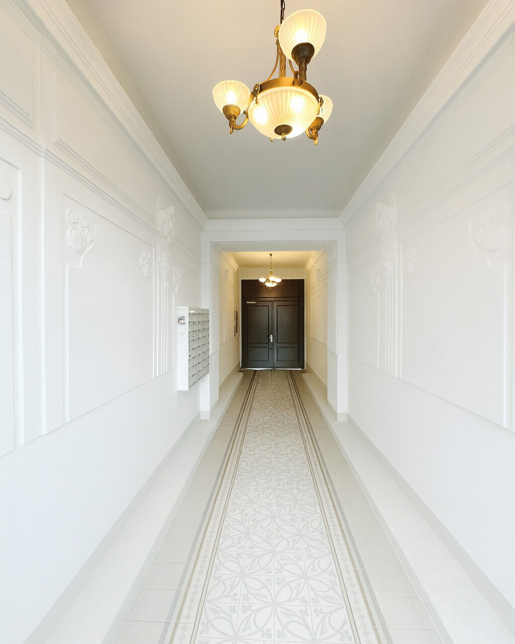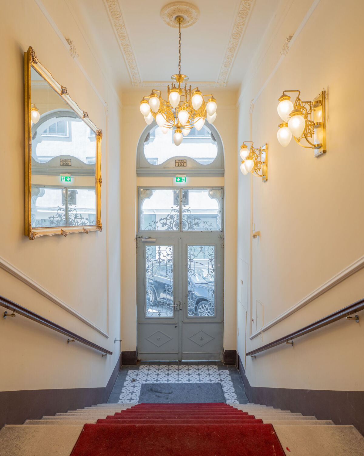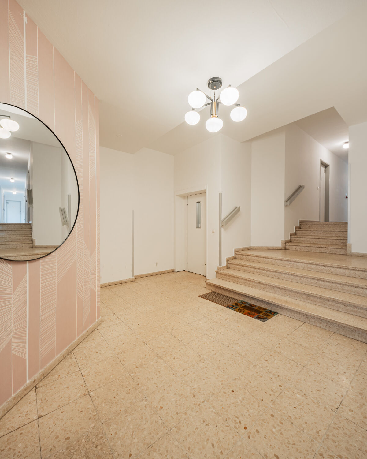 1020 ViennaThis apartment block Am Tabor 8, 1020 Vienna, impresses with its structured and detailed façade, which stands out from the other apartment blocks in the neighbourhood. The building and its individual flats have been transformed back into a gem by 3SI Immogroup through detailed work; the revitalisation of the façade is also continued in the entrance area with a bright and inviting entrance.